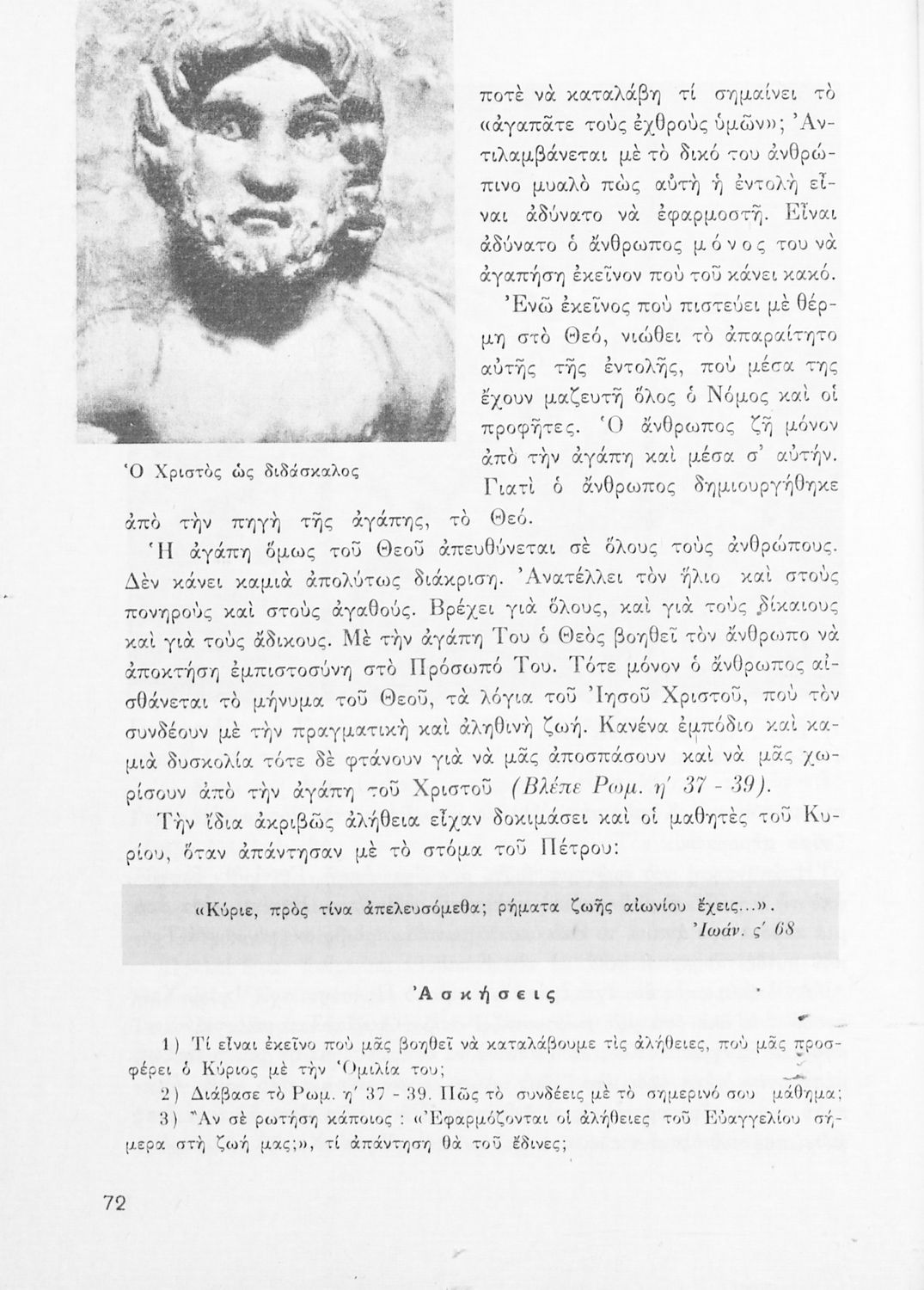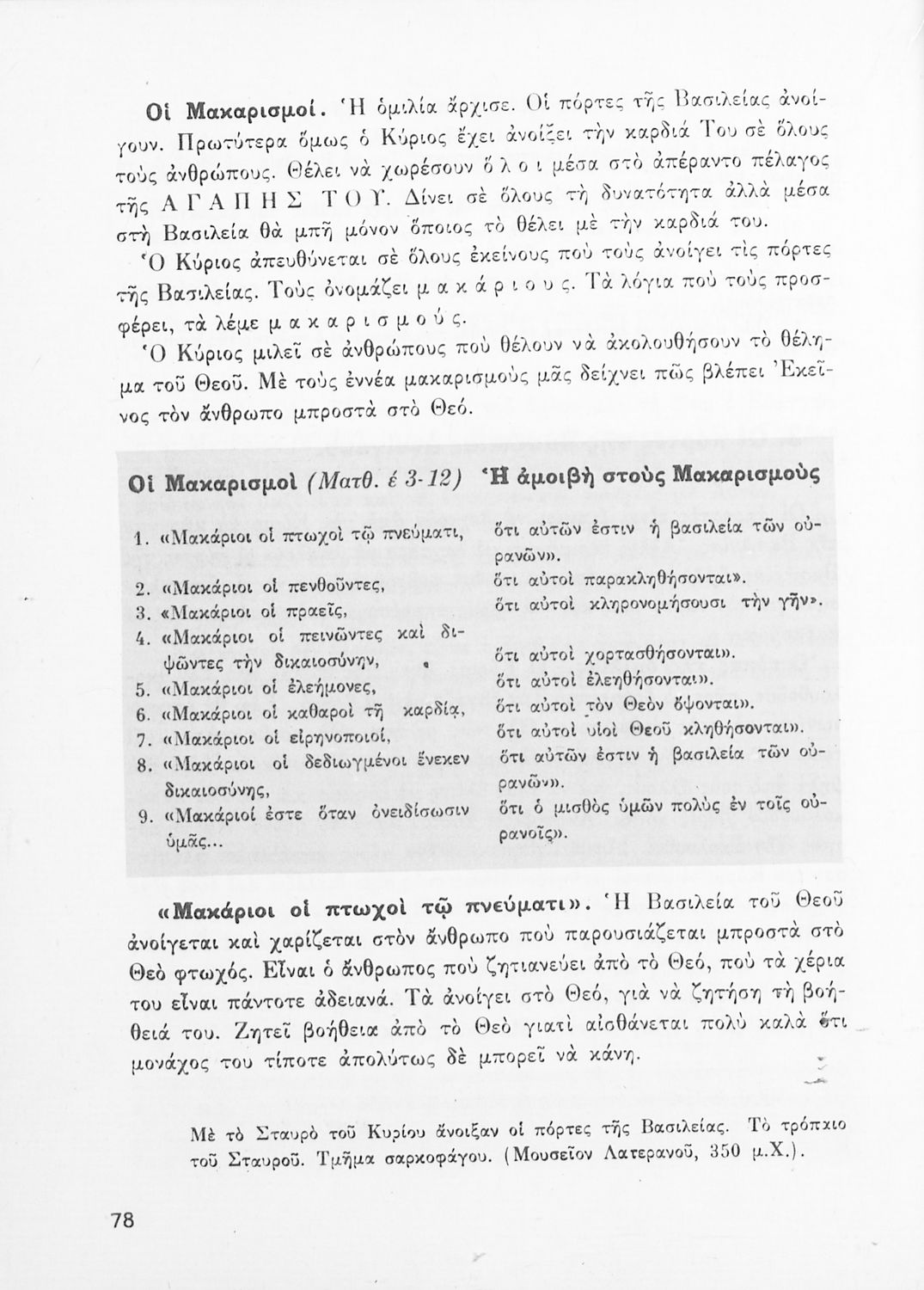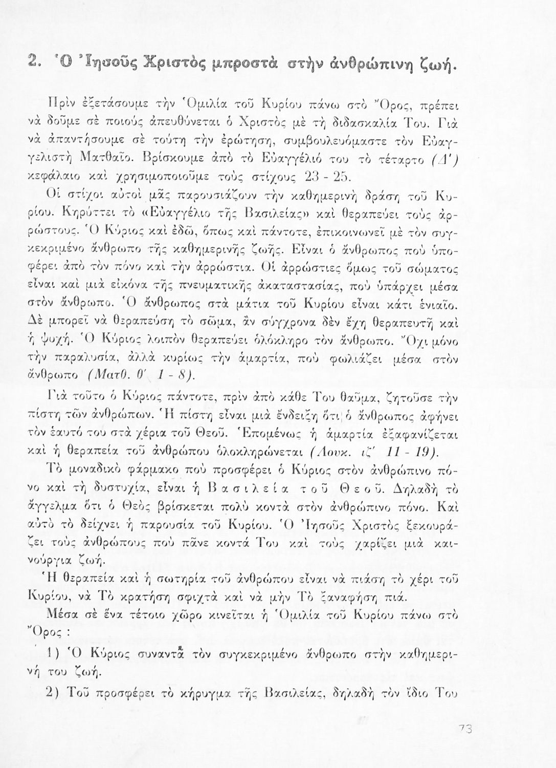 Σχολικό εγχειρίδιο Θρησκευτικών Β' Γυμνασίου που περιλαμβάνει τη διδασκαλία του Ιησού Χριστού και την ιστορία της δημιουργίας, της εδραίωσης και της εξάπλωσης της χριστιανικής εκκλησίας από την εποχή των Αποστόλων μέχρι τη συγκρότηση του Παγκόσμιου Συμβουλίου Εκκλησιών.