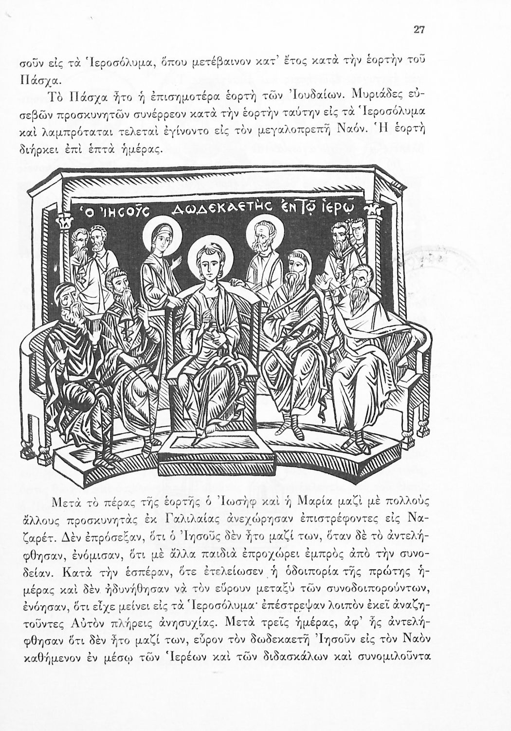Σχολικό εγχειρίδιο Θρησκευτικών Β΄ Γυμνασίου που συνιστά μία εξιστόρηση της Καινής Διαθήκης από τη γέννηση της Θεοτόκου ως την ανάληψη του Χριστού. Περιέχει και απολυτίκια.