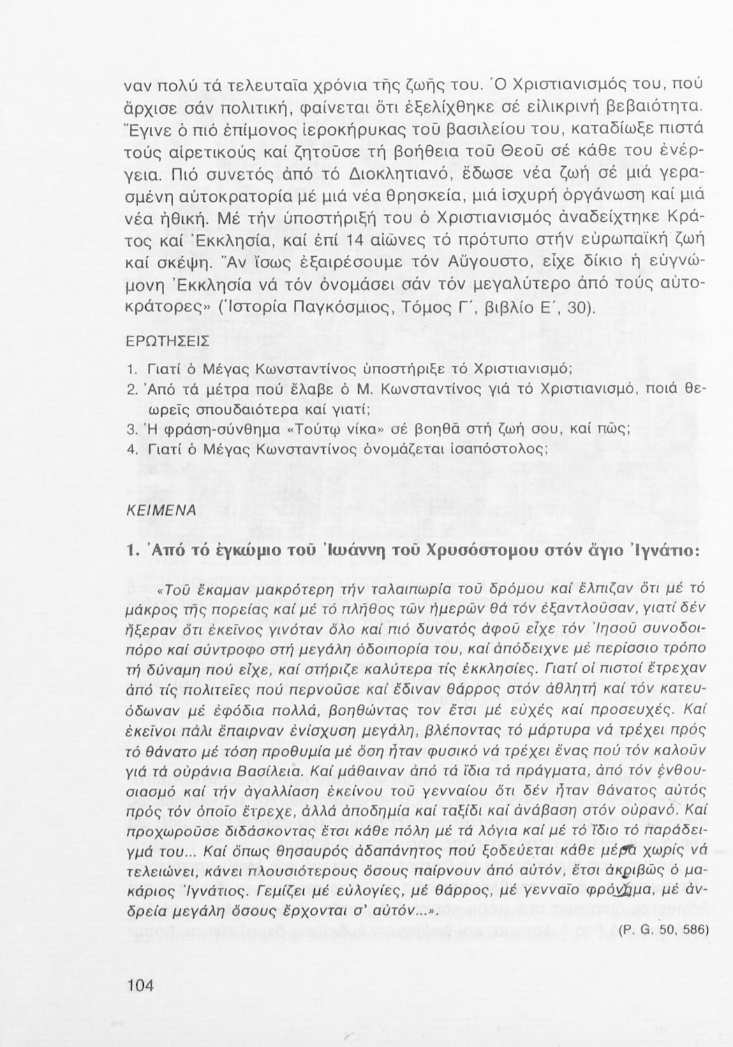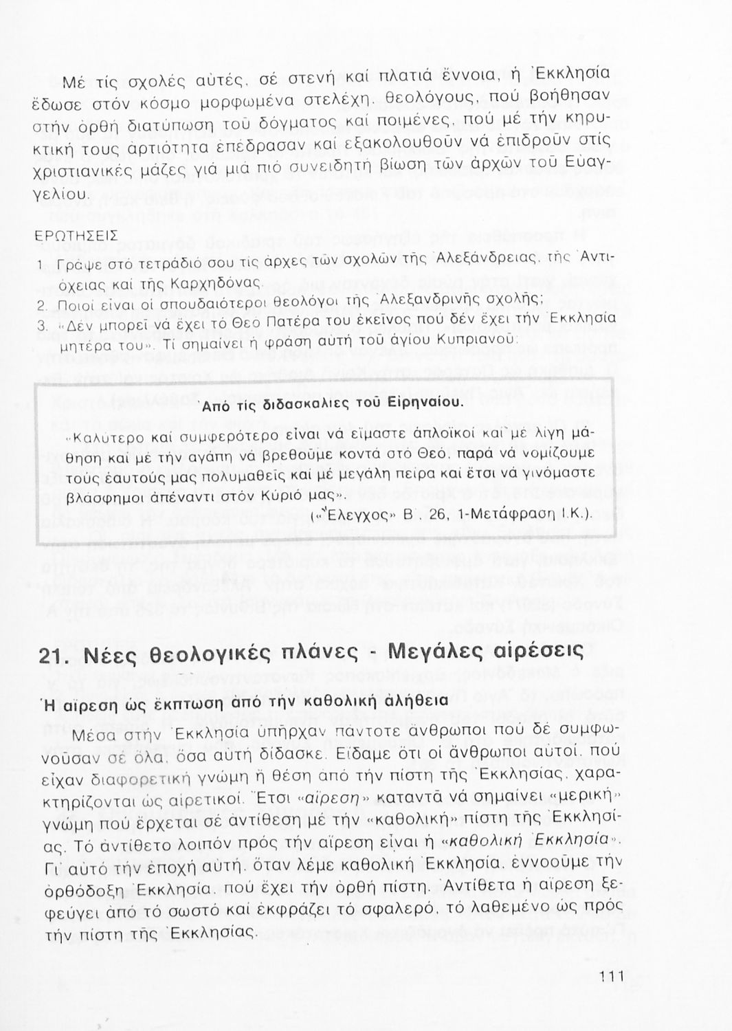 Σχολικό εγχειρίδιο Θρησκευτικών για την Β΄ Γυμνασίου. Περιέχει την ιστορία της Εκκλησίας από την ίδρυσή της μέχρι την δημιουργία της Εκκλησίας της Ελλάδας.