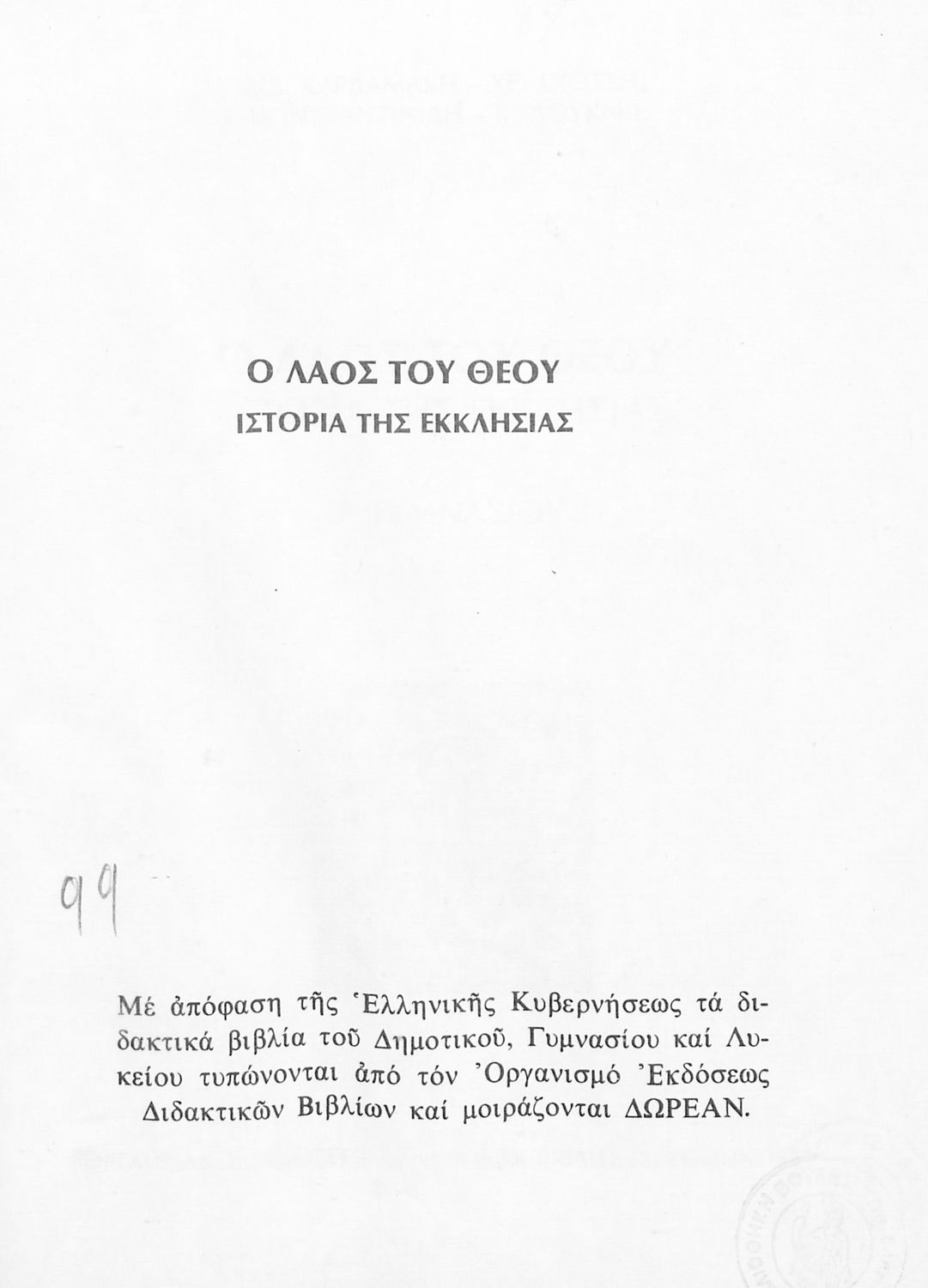Τίτλος: Ο Λαός του Θεού – Ιστορία της Εκκλησίας Β' Γυμνασίου