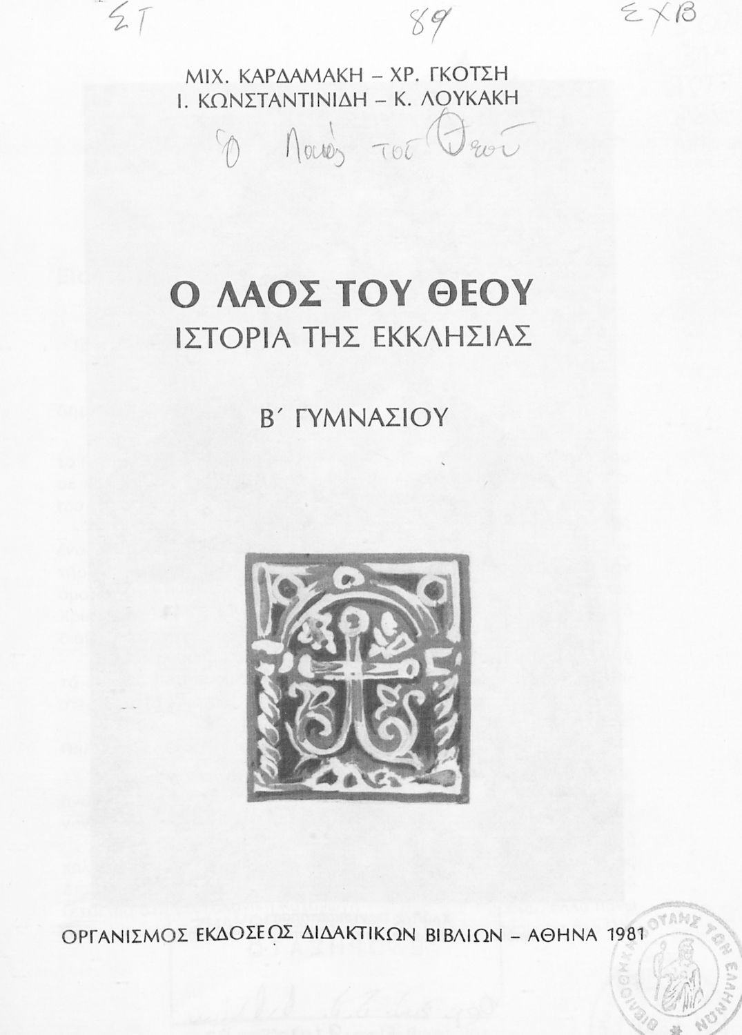 Εκδότης: Οργανισμός Εκδόσεως Διδακτικών Βιβλίων