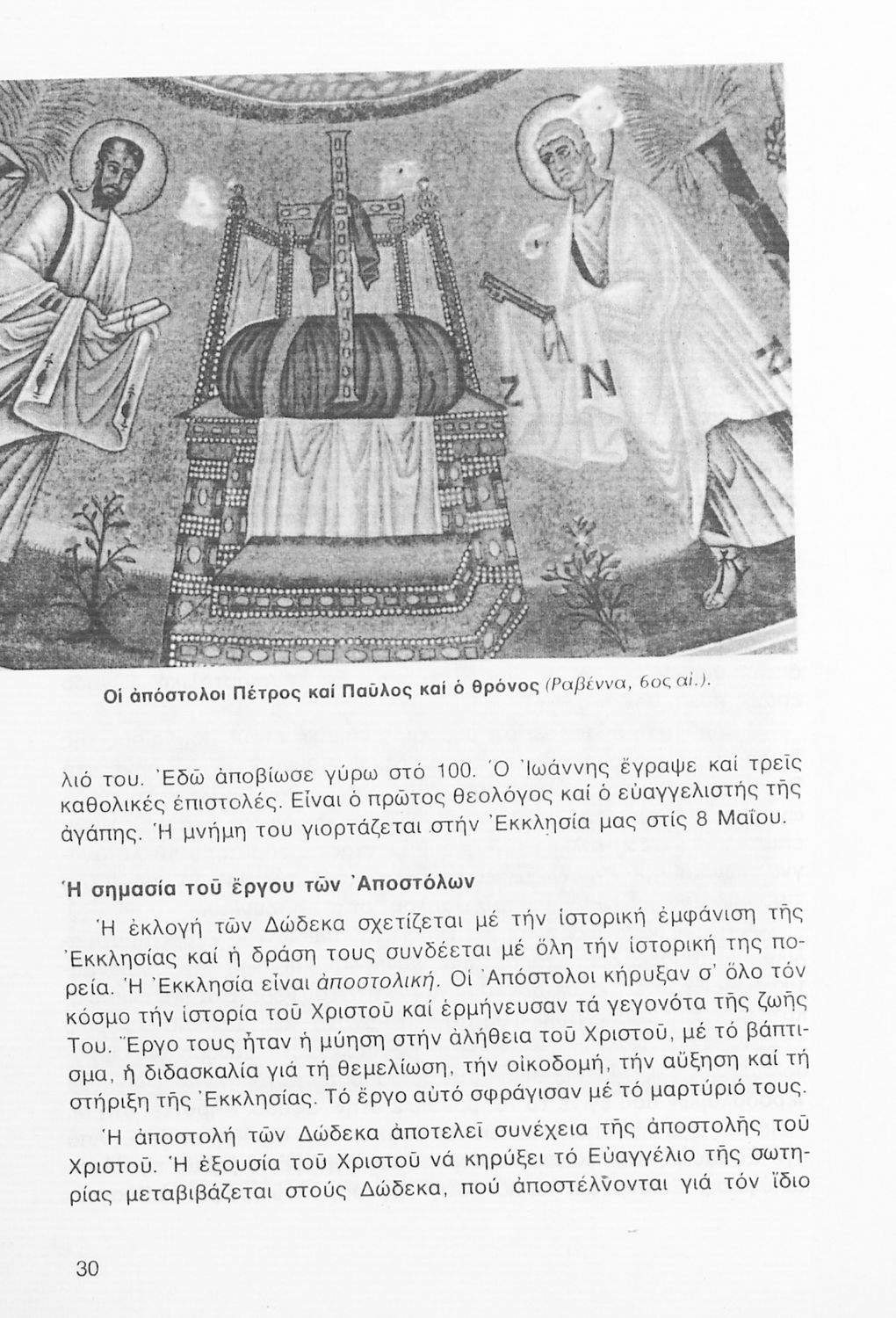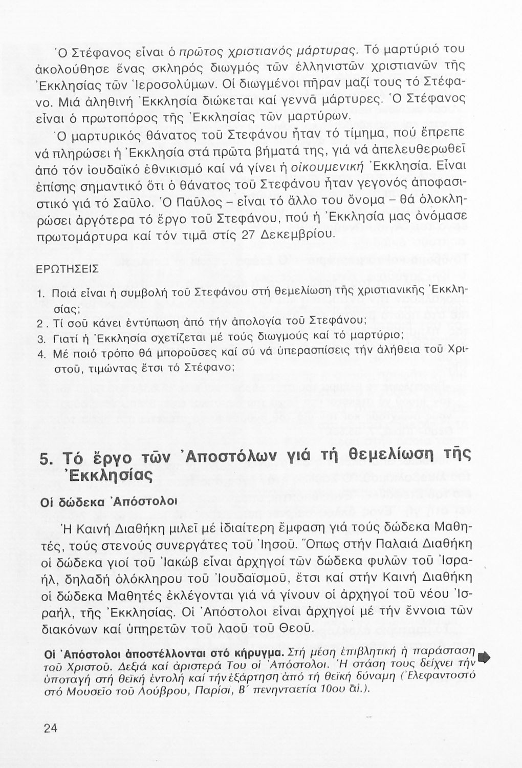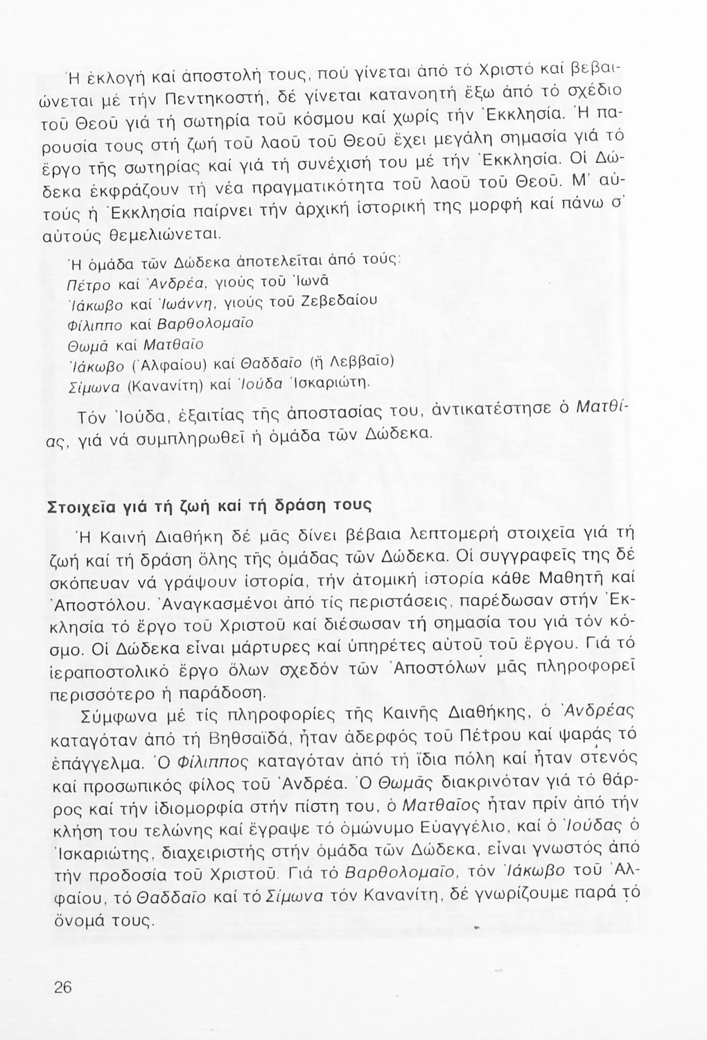 Σχολικό εγχειρίδιο Θρησκευτικών της Β' Γυμνασίου. Το βιβλίο περιγράφει την σύσταση και την εξάπλωση της χριστιανικής εκκλησίας από την πρώτη εκκλησιαστική κοινότητα των Ιεροσολύμων και το έργο των αποστόλων για την εδραίωσή της. Στη συνέχεια περιγράφει τη μορφή της κατά τα ρωμαϊκά χρόνια και το Βυζάντιο και αναλύει το σχίσμα και τη μεταρρύθμιση. Τέλος εστιάζει στη εκκλησία της Ελλάδος και το ρόλο της στους αγώνες του ελληνικού έθνους για απελευθέρωση.