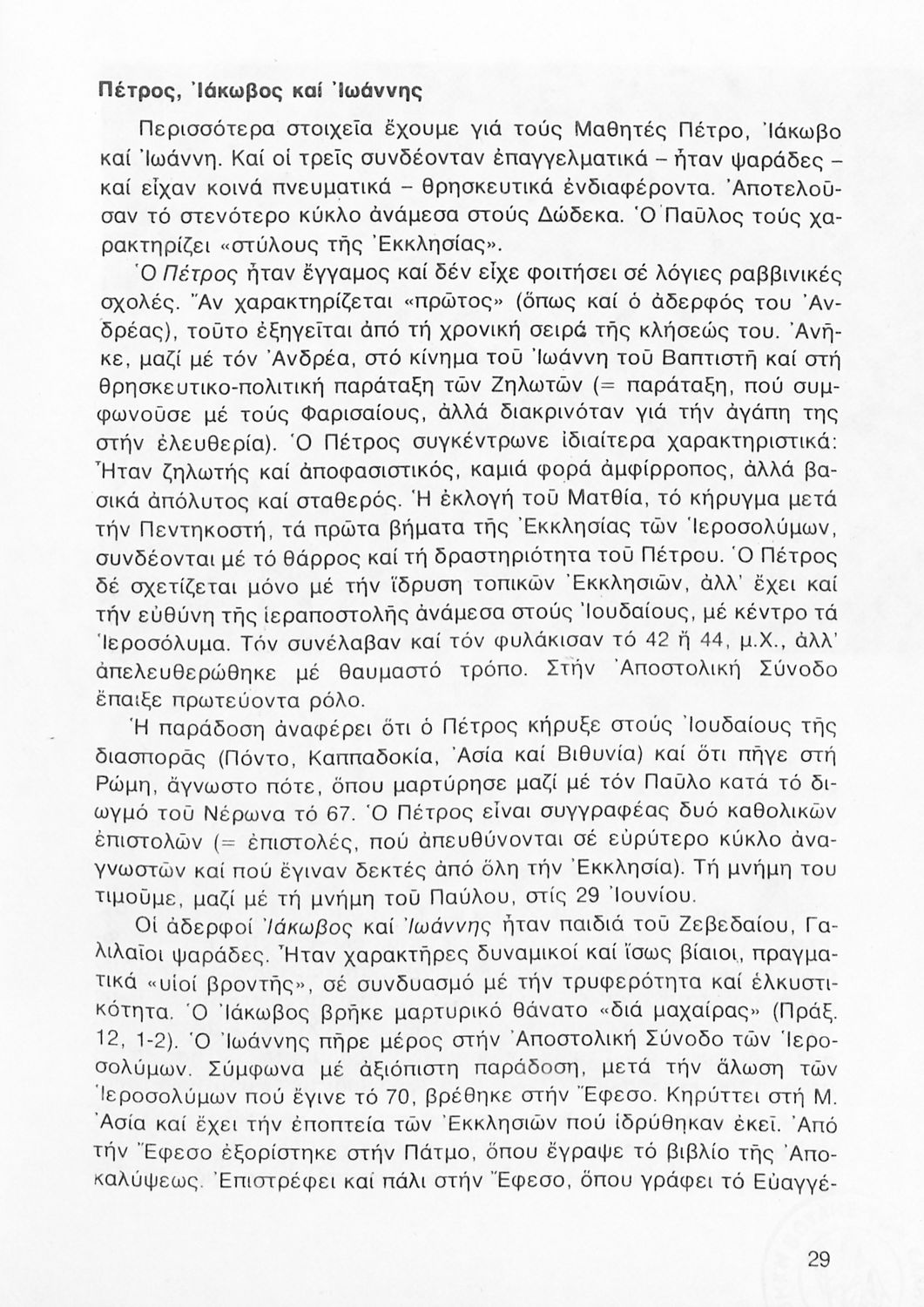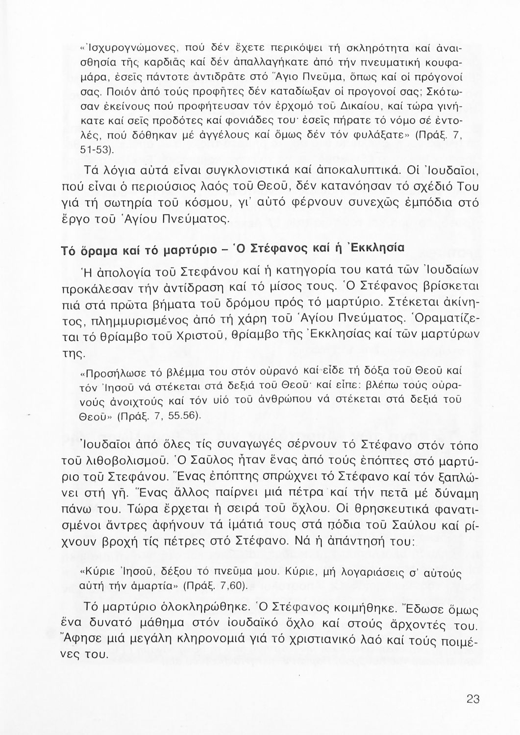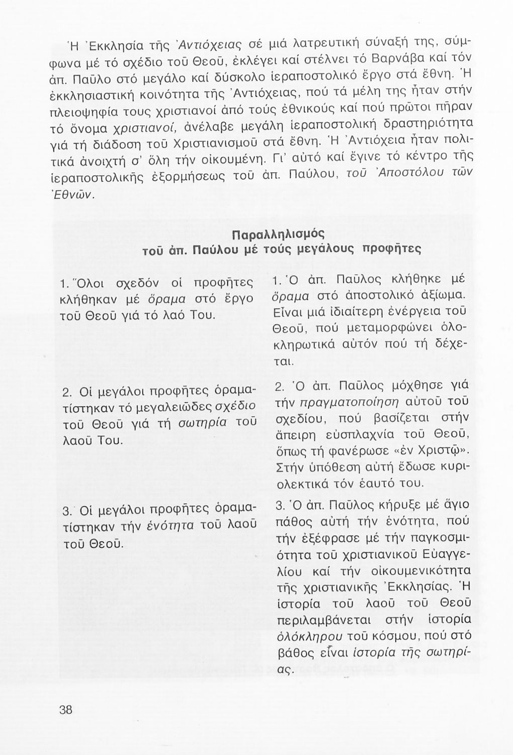 Σχολικό εγχειρίδιο Θρησκευτικών της Β' Γυμνασίου. Το βιβλίο περιγράφει την σύσταση και την εξάπλωση της χριστιανικής εκκλησίας από την πρώτη εκκλησιαστική κοινότητα των Ιεροσολύμων και το έργο των αποστόλων για την εδραίωσή της. Στη συνέχεια περιγράφει τη μορφή της κατά τα ρωμαϊκά χρόνια και το Βυζάντιο και αναλύει το σχίσμα και τη μεταρρύθμιση. Τέλος εστιάζει στη εκκλησία της Ελλάδος και το ρόλο της στους αγώνες του ελληνικού έθνους για απελευθέρωση.