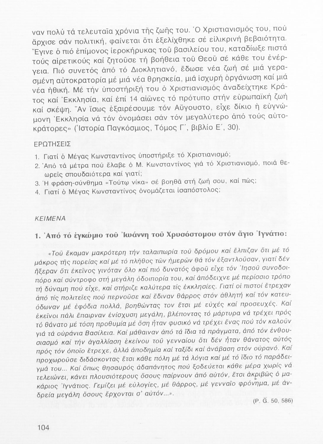 Σχολικό εγχειρίδιο Θρησκευτικών για την Β΄ Γυμνασίου. Περιέχει την ιστορία της Εκκλησίας από την ίδρυσή της μέχρι την δημιουργία της Εκκλησίας της Ελλάδας.