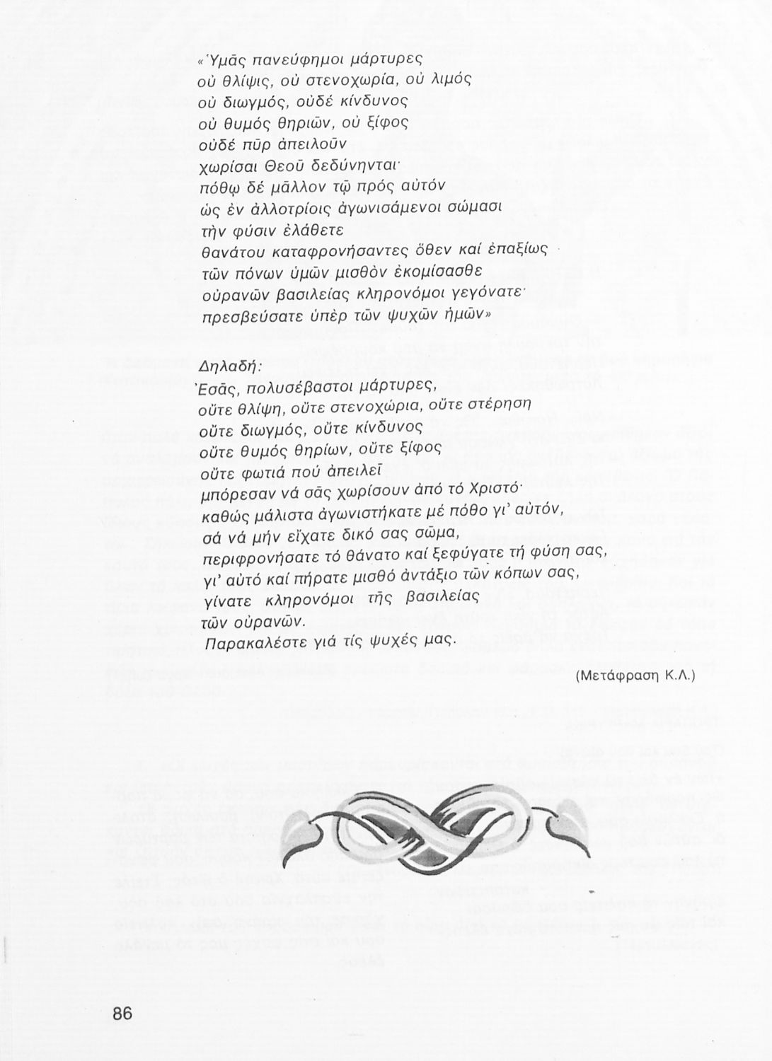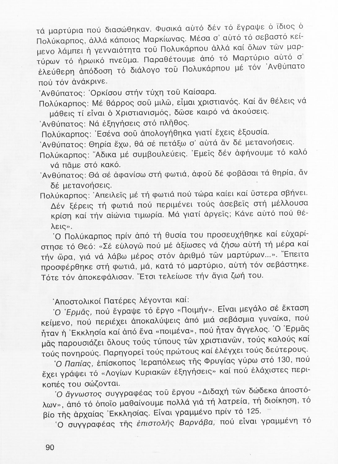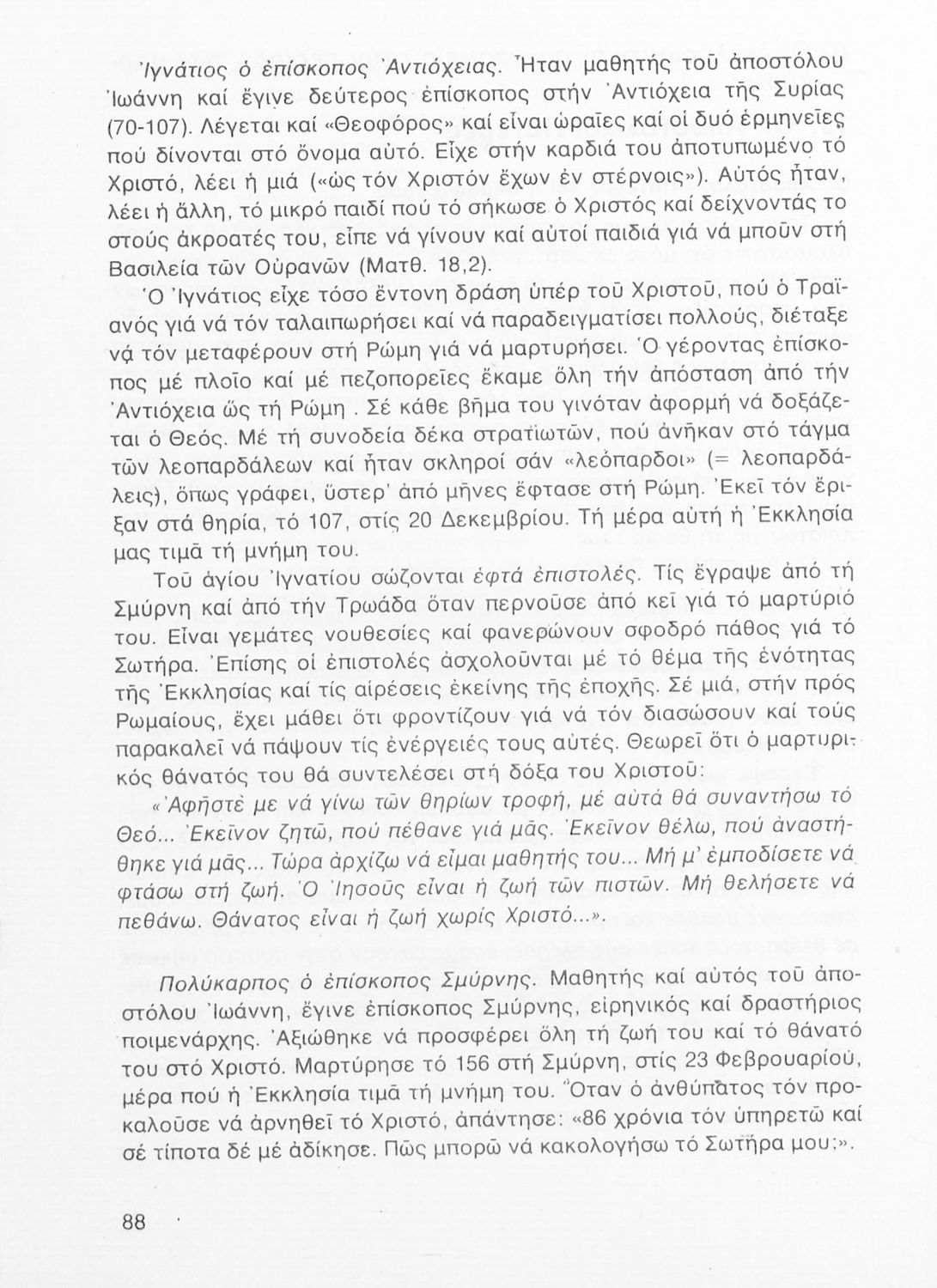 Σχολικό εγχειρίδιο Θρησκευτικών της Β' Γυμνασίου. Το βιβλίο περιγράφει την σύσταση και την εξάπλωση της χριστιανικής εκκλησίας από την πρώτη εκκλησιαστική κοινότητα των Ιεροσολύμων και το έργο των αποστόλων για την εδραίωσή της. Στη συνέχεια περιγράφει τη μορφή της κατά τα ρωμαϊκά χρόνια και το Βυζάντιο και αναλύει το σχίσμα και τη μεταρρύθμιση. Τέλος εστιάζει στη εκκλησία της Ελλάδος και το ρόλο της στους αγώνες του ελληνικού έθνους για απελευθέρωση.