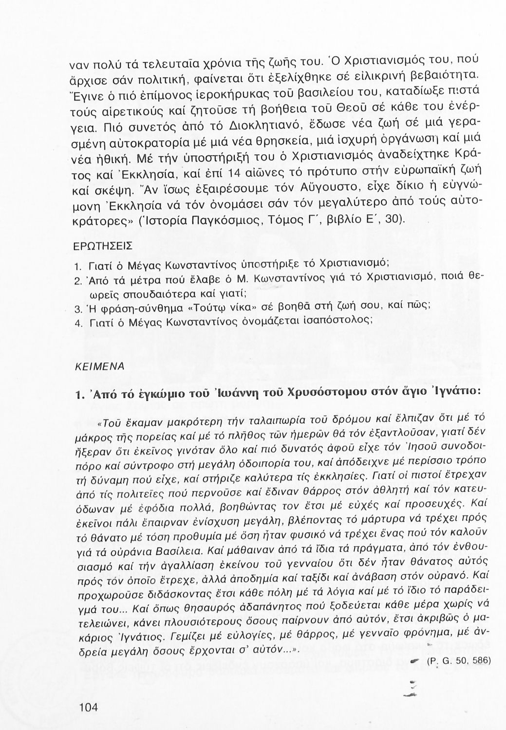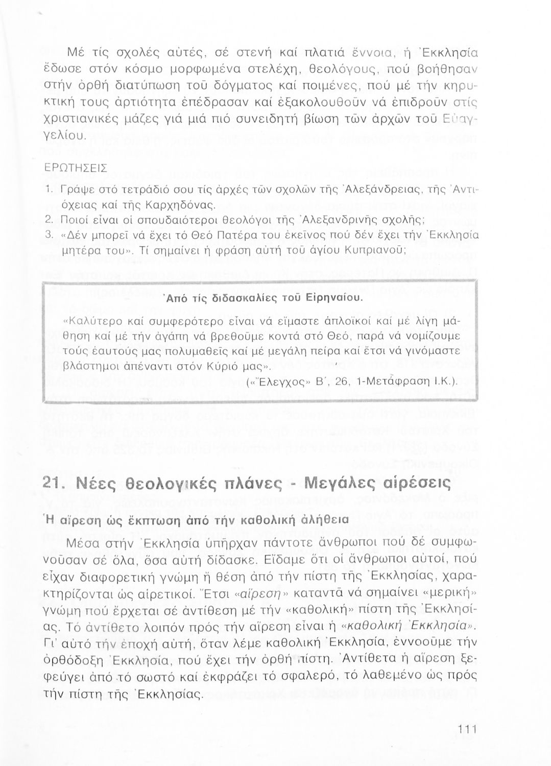 Σχολικό εγχειρίδιο Θρησκευτικών για την Β΄ Γυμνασίου. Περιέχει την ιστορία της Εκκλησίας από την ίδρυσή της μέχρι την δημιουργία της Εκκλησίας της Ελλάδας.