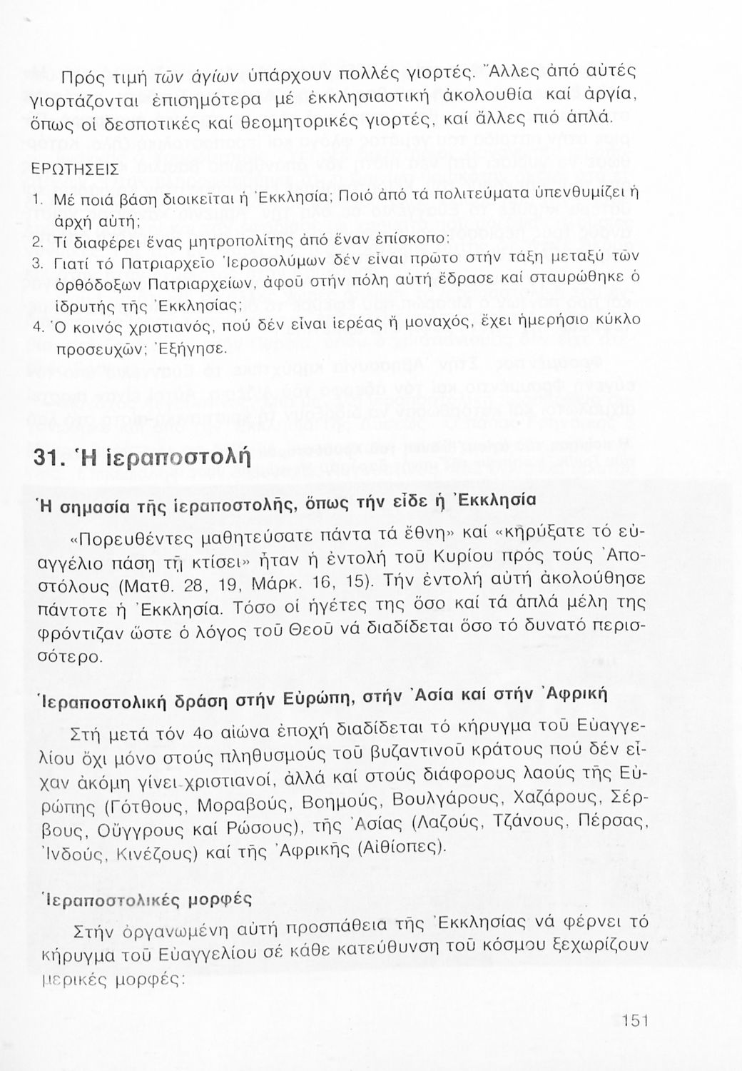 Σχολικό εγχειρίδιο για την Β΄ Γυμνασίου για το μάθημα των Θρησκευτικών. Το εγχειρίδιο περιλαμβάνει γενικές πληροφορίες για την εκκλησιαστική ιστορία, την εκκλησία των Αποστόλων, των μαρτύρων, των Συνόδων, την ενότητα της εκκλησίας, την ιστορία της ορθόδοξης ανατολικής εκκλησίας από το Σχίσμα και μετά την απελευθέρωση.