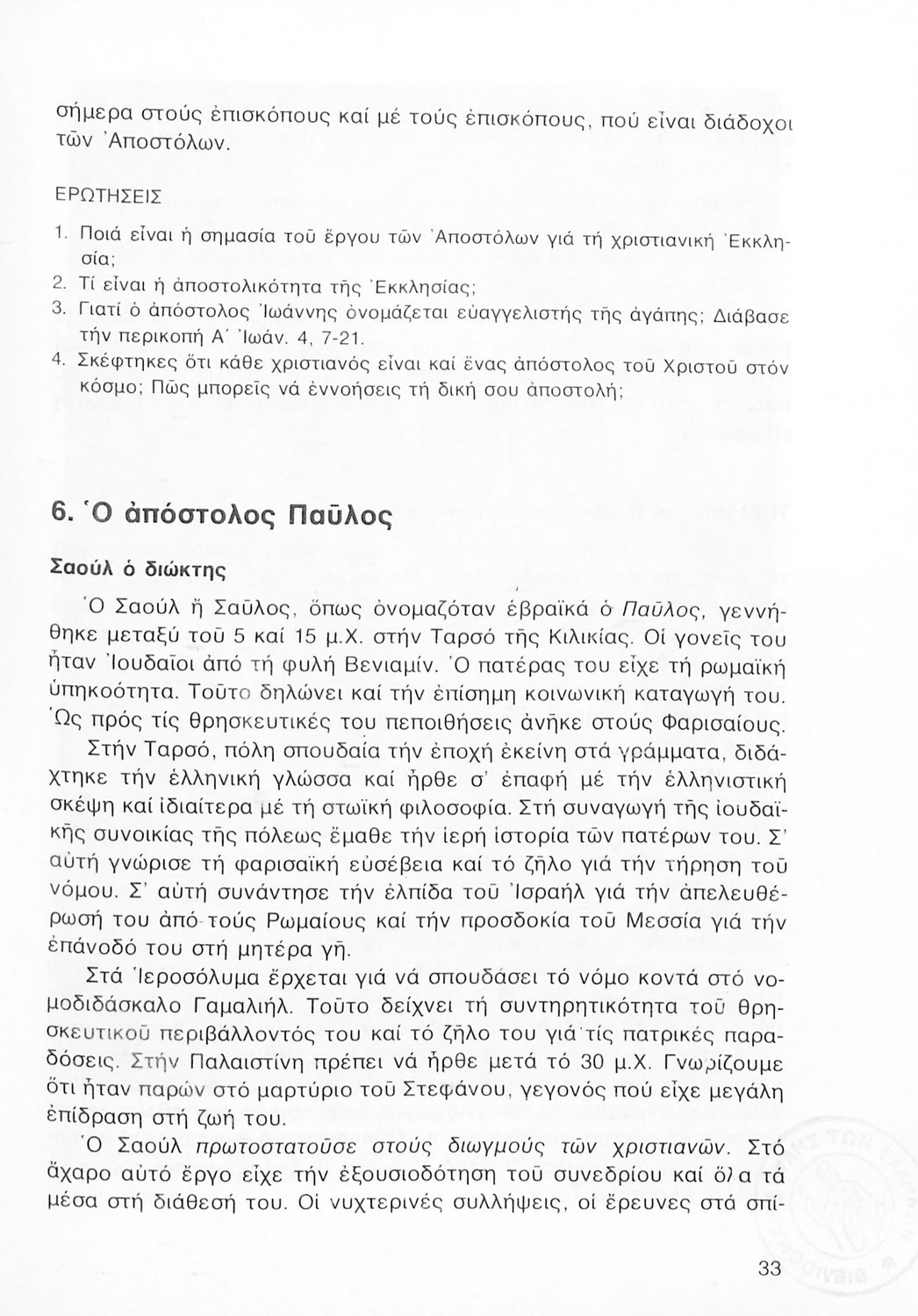 Σχολικό εγχειρίδιο Θρησκευτικών για την Β΄ Γυμνασίου. Περιέχει την ιστορία της Εκκλησίας από την ίδρυσή της μέχρι την δημιουργία της Εκκλησίας της Ελλάδας.