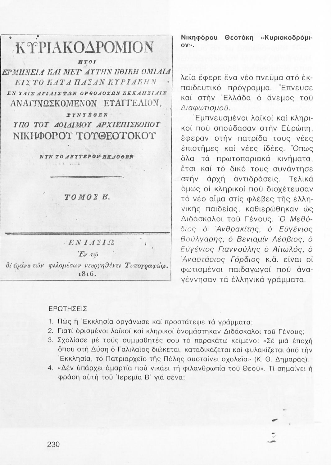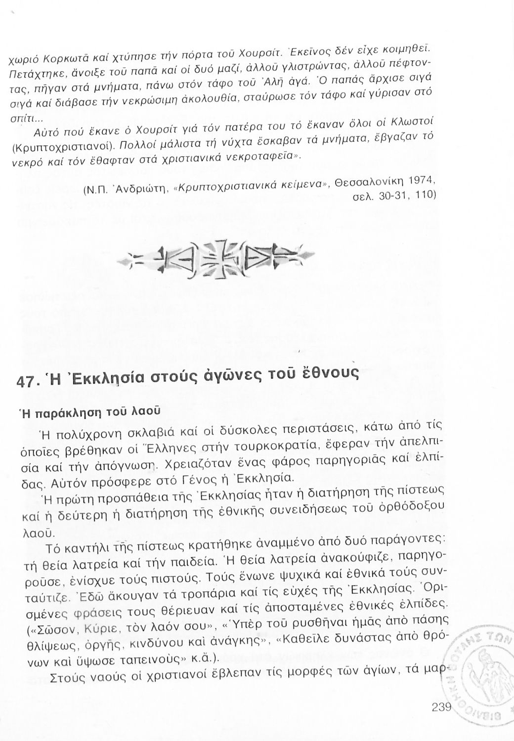 Σχολικό εγχειρίδιο Θρησκευτικών για την Β΄ Γυμνασίου. Περιέχει την ιστορία της Εκκλησίας από την ίδρυσή της μέχρι την δημιουργία της Εκκλησίας της Ελλάδας.