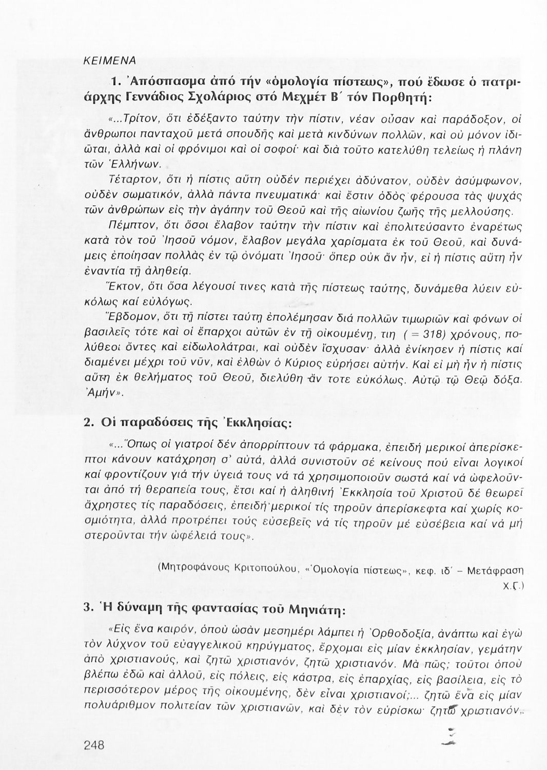 Σχολικό εγχειρίδιο για την Β΄ Γυμνασίου για το μάθημα των Θρησκευτικών. Το εγχειρίδιο περιλαμβάνει γενικές πληροφορίες για την εκκλησιαστική ιστορία, την εκκλησία των Αποστόλων, των μαρτύρων, των Συνόδων, την ενότητα της εκκλησίας, την ιστορία της ορθόδοξης ανατολικής εκκλησίας από το Σχίσμα και μετά την απελευθέρωση.