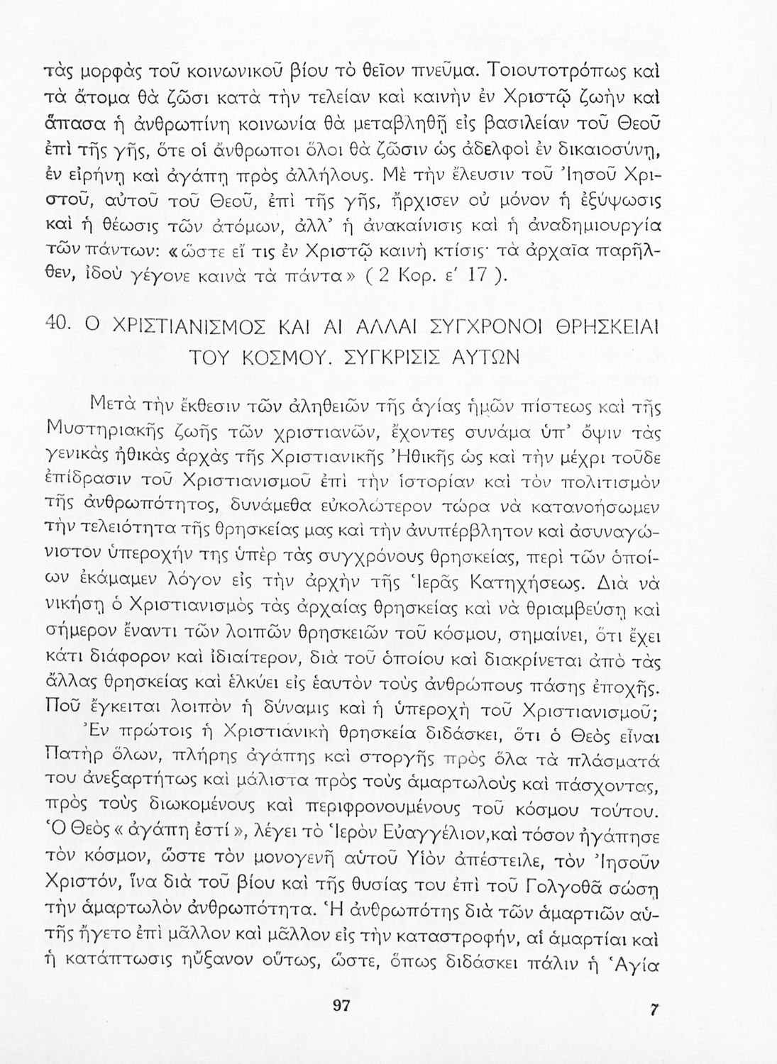 Παρουσίαση περιεχομένου: Σχολικό εγχειρίδιο Θρησκευτικών Ε' Γυμνασίου που αναλύει την έννοια της κατήχησης στις διάφορες θρησκείες με έμφαση στο ορθόδοξο χριστιανικό δόγμα, το οποίο εξετάζει από δογματική και ηθική σκοπιά. Περιλαμβάνει και στοιχεία λειτουργικής της Ορθόδοξης Εκκλησίας. Περιέχονται εκκλησιαστικοί ύμνοι και προσευχές. Φέρει το σύμβολο της δικτατορίας.