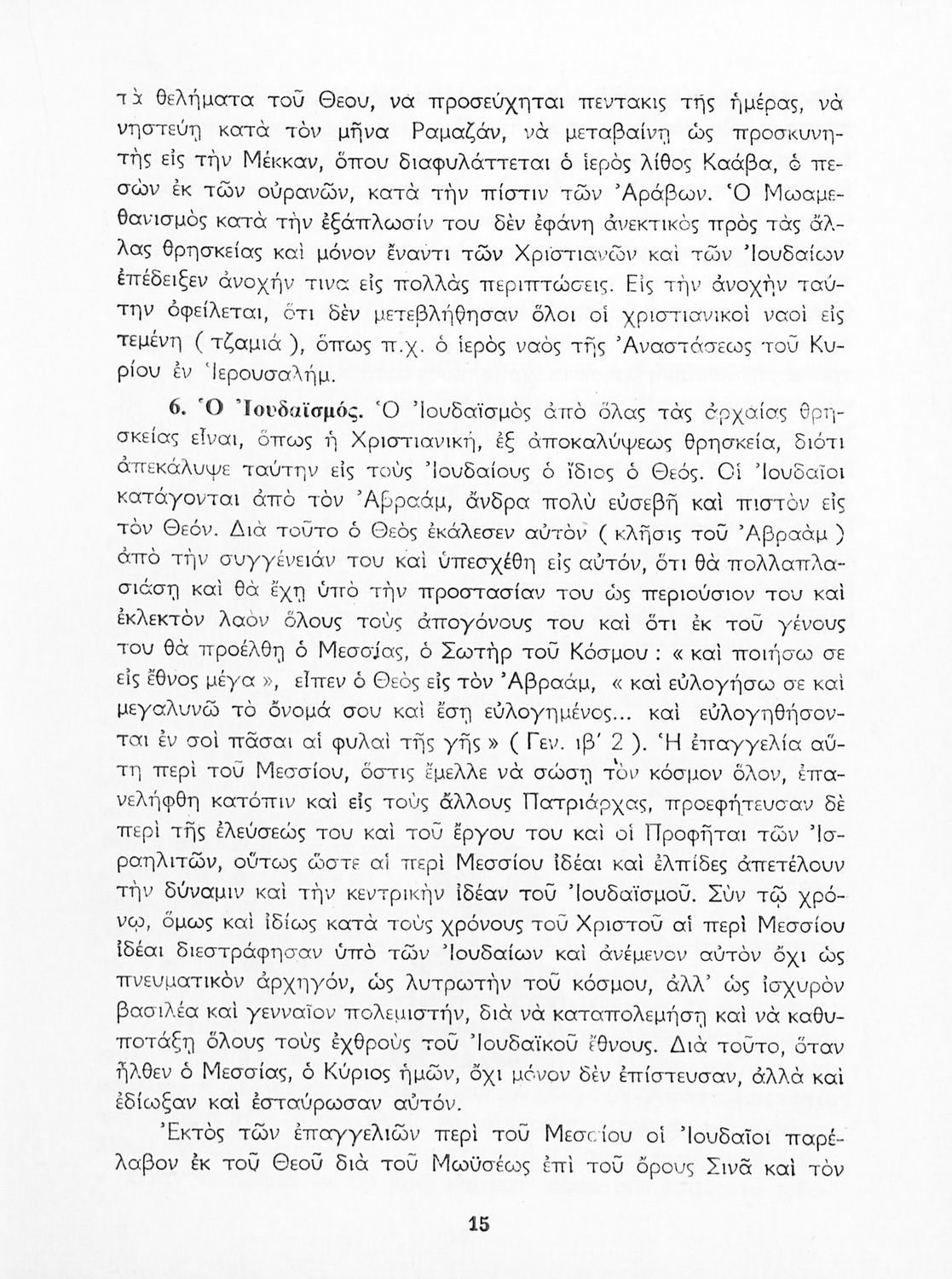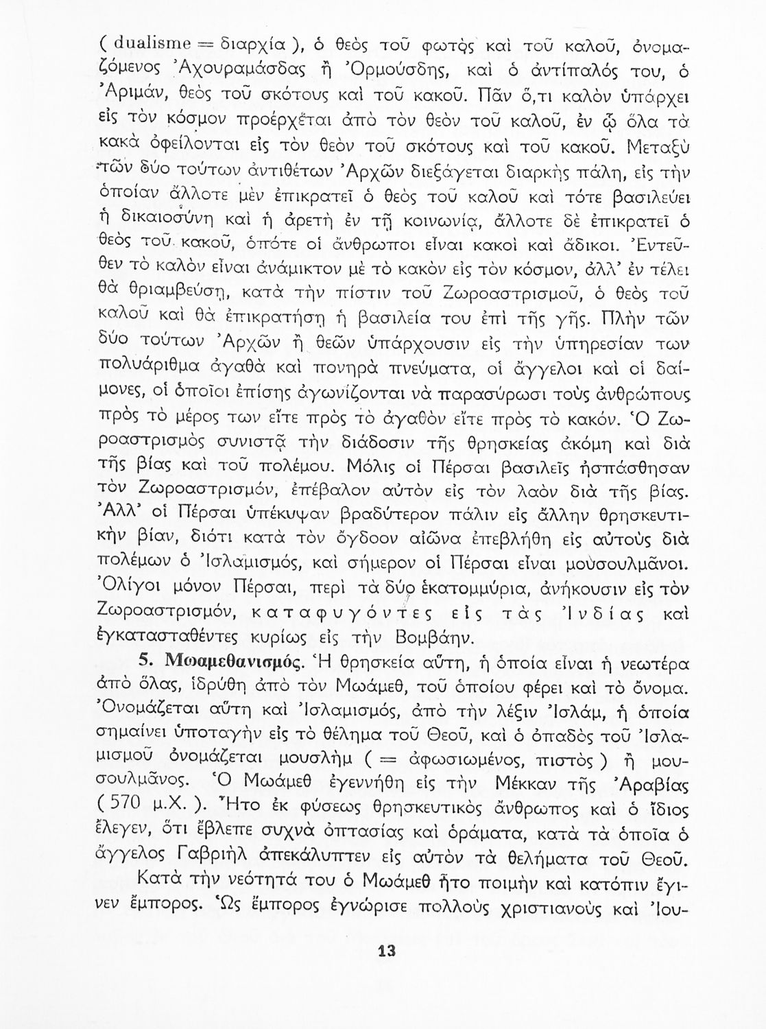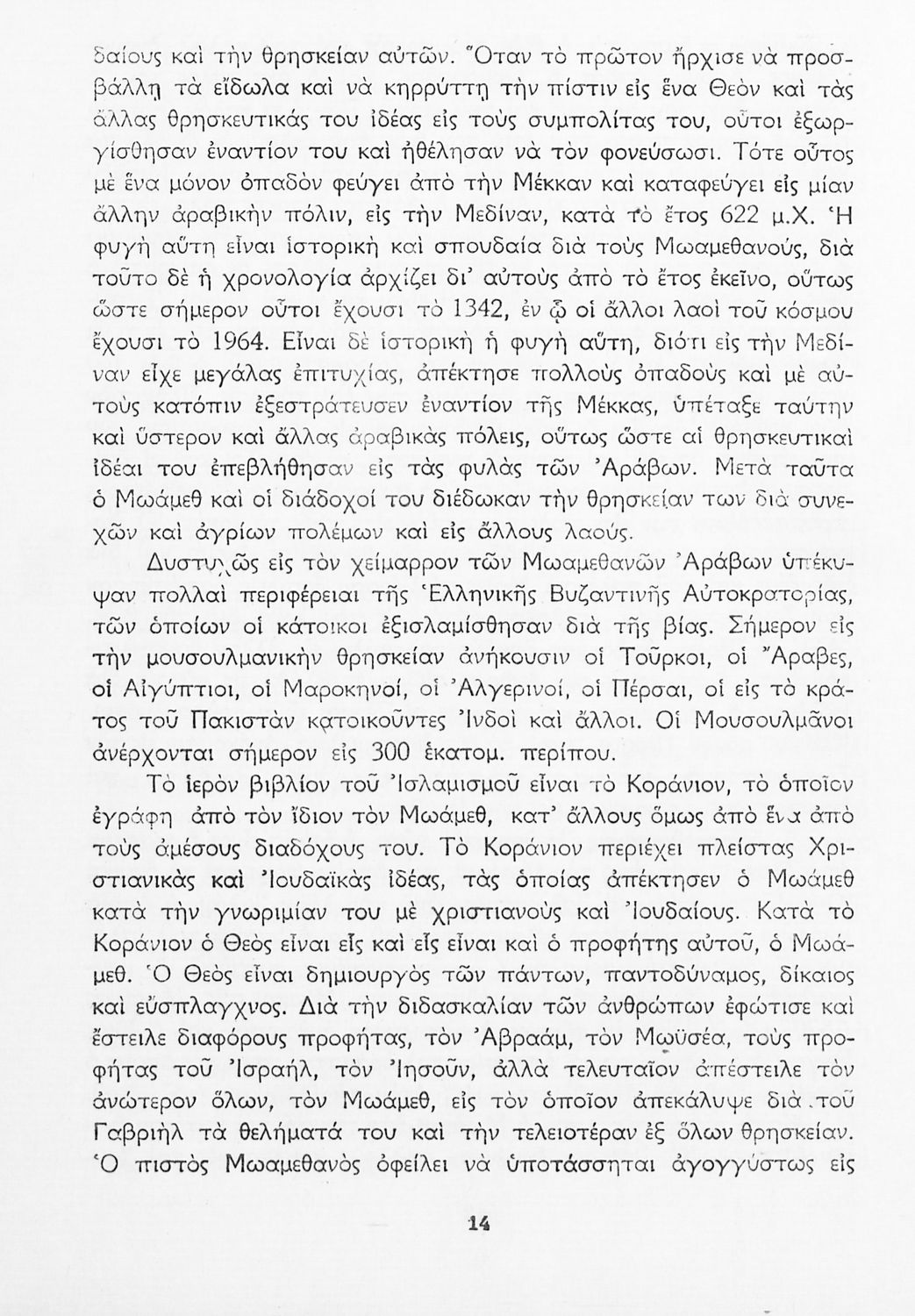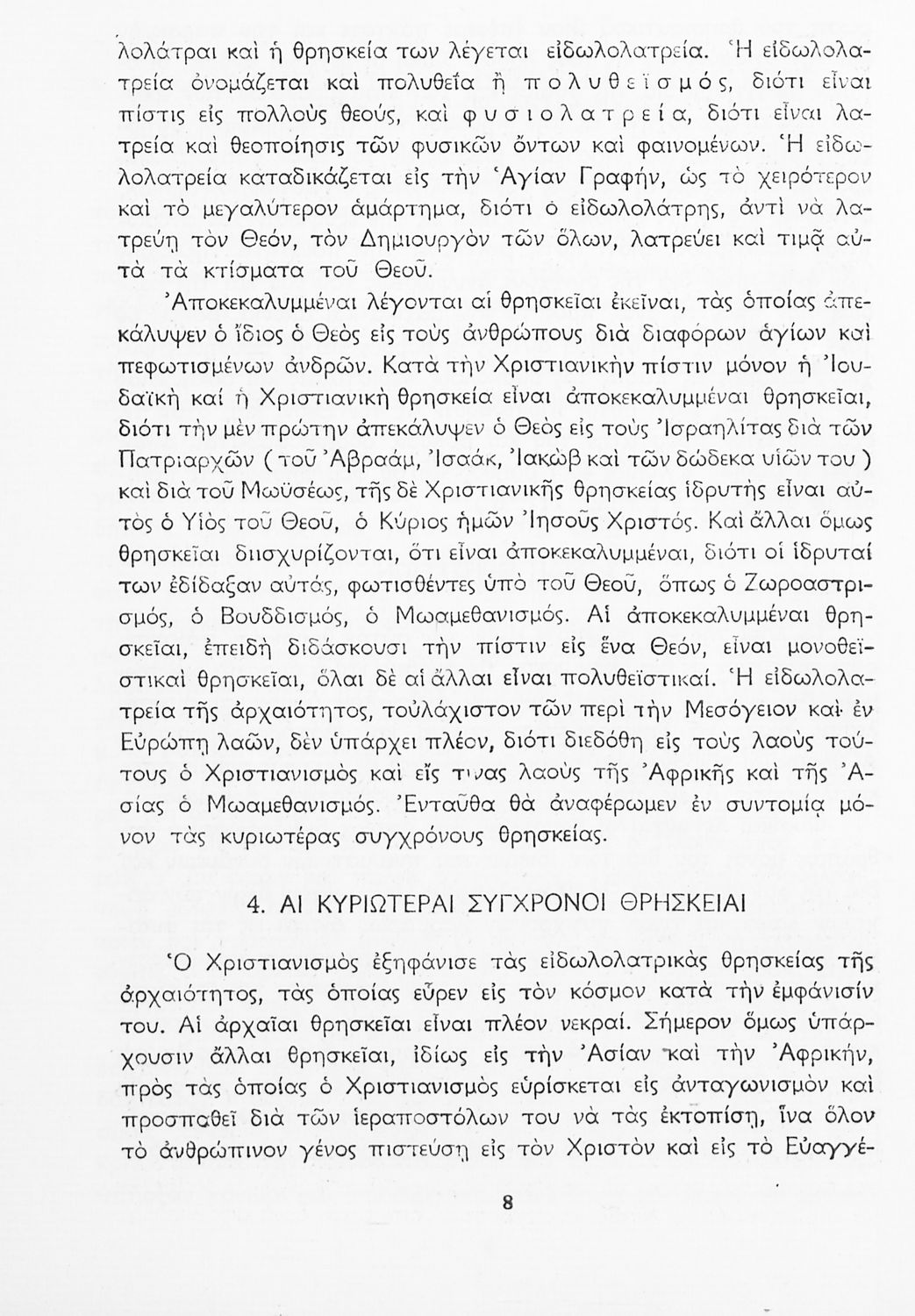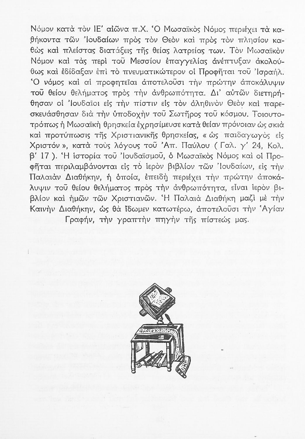 Σχολικό εγχειρίδιο Θρησκευτικών Ε' Γυμνασίου που αναλύει την έννοια της κατήχησης στις διάφορες θρησκείες με έμφαση στο ορθόδοξο χριστιανικό δόγμα, το οποίο εξετάζει από δογματική και ηθική σκοπιά. Περιλαμβάνει και στοιχεία λειτουργικής της Ορθόδοξης Εκκλησίας. Περιέχονται εκκλησιαστικοί ύμνοι και προσευχές. Φέρει το σύμβολο της δικτατορίας.