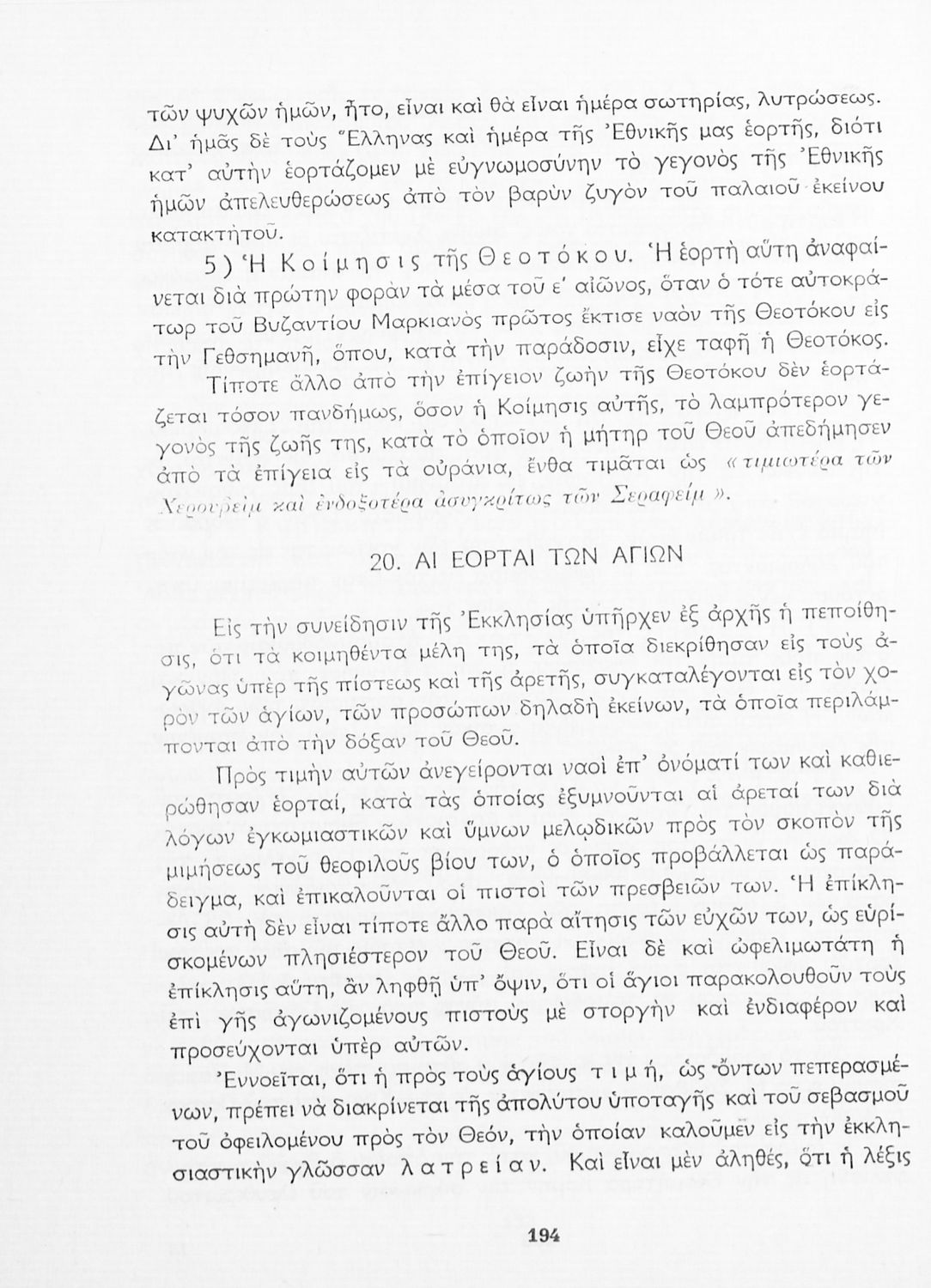 Σχολικό εγχειρίδιο Θρησκευτικών που αναλύει την έννοια της κατήχησης στις διάφορες θρησκείες με έμφαση στο ορθόδοξο χριστιανικό δόγμα, το οποίο εξετάσει από δογματική και ηθική σκοπιά. Περιλαμβάνει και στοιχεία λειτουργικής της Ορθόδοξης Εκκλησίας. Περιέχονται εκκλησιαστικοί ύμνοι και προσευχές. Φέρει το σύμβολο της δικτατορίας.