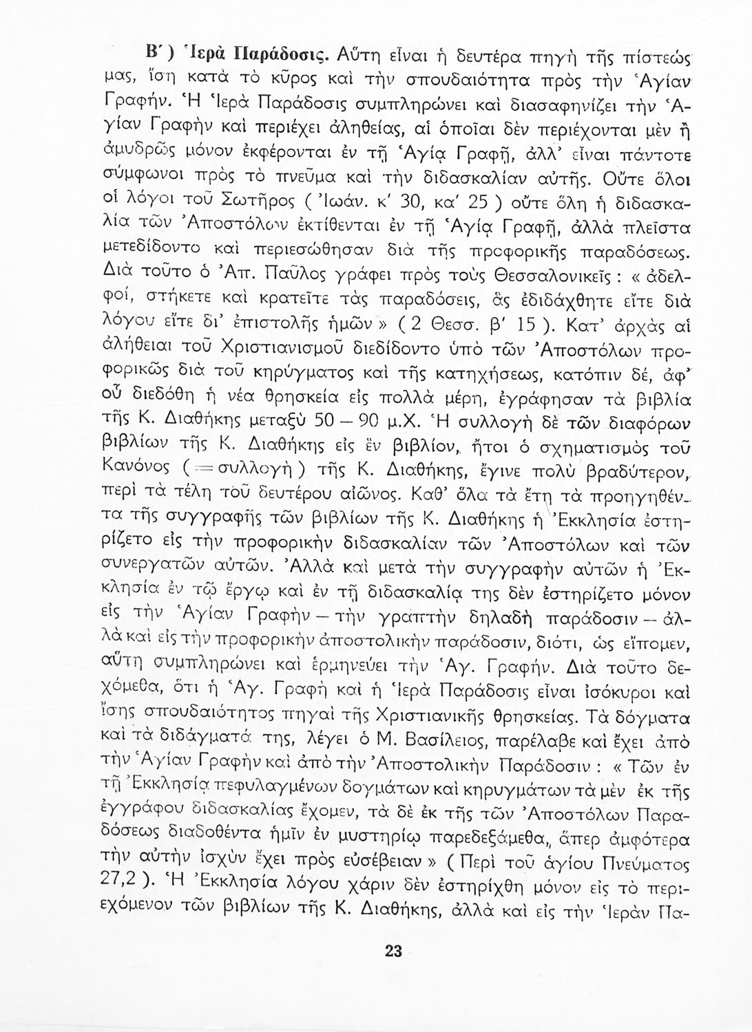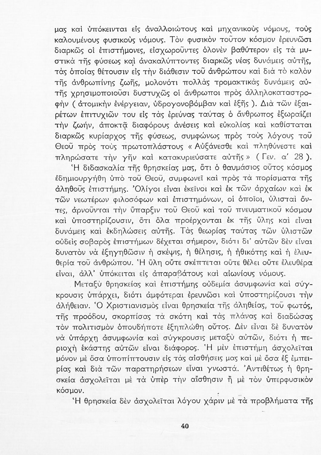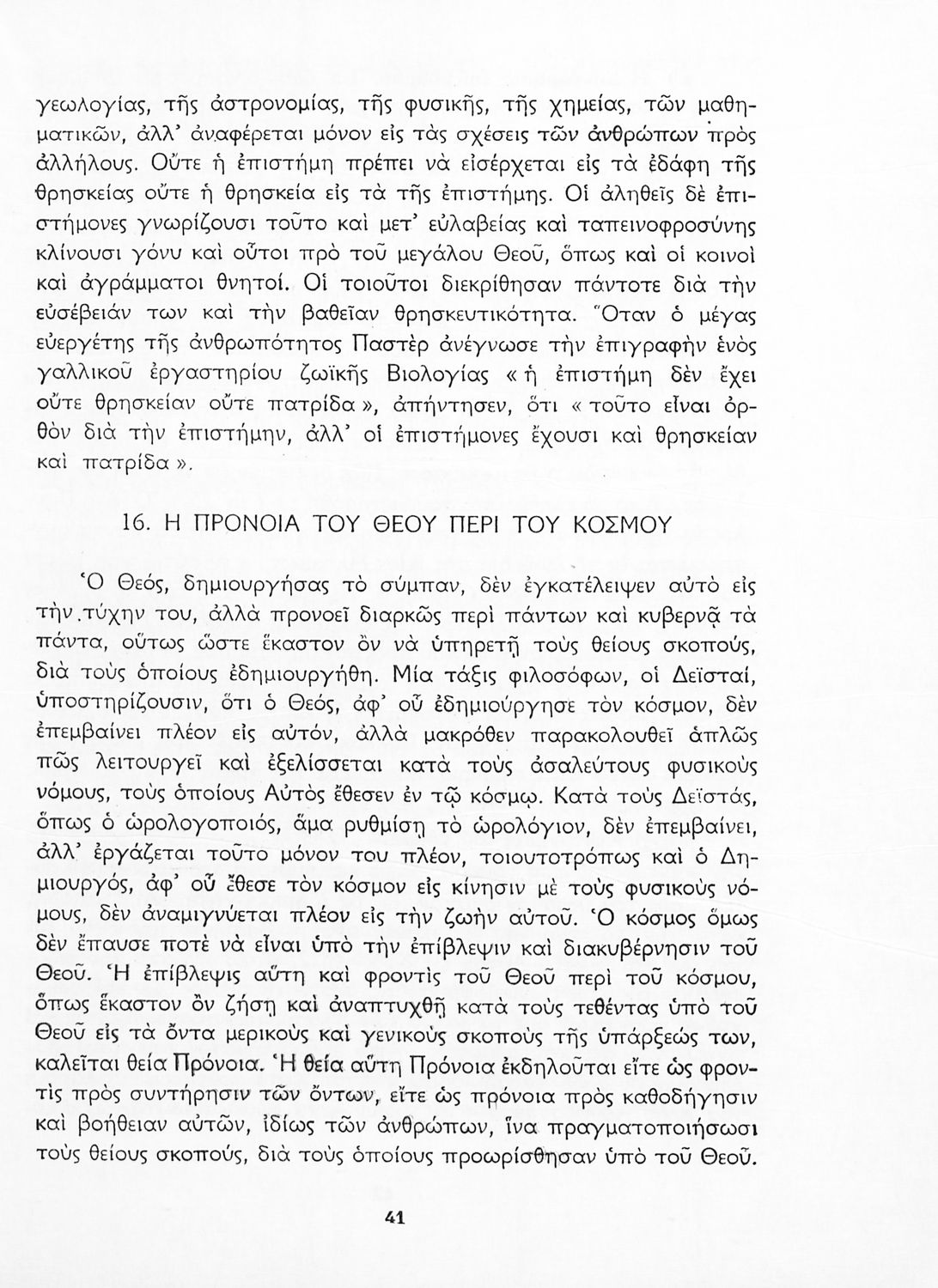 Σχολικό εγχειρίδιο Θρησκευτικών που αναλύει την έννοια της κατήχησης στις διάφορες θρησκείες με έμφαση στο ορθόδοξο χριστιανικό δόγμα, το οποίο εξετάσει από δογματική και ηθική σκοπιά. Περιλαμβάνει και στοιχεία λειτουργικής της Ορθόδοξης Εκκλησίας. Περιέχονται εκκλησιαστικοί ύμνοι και προσευχές. Φέρει το σύμβολο της δικτατορίας.