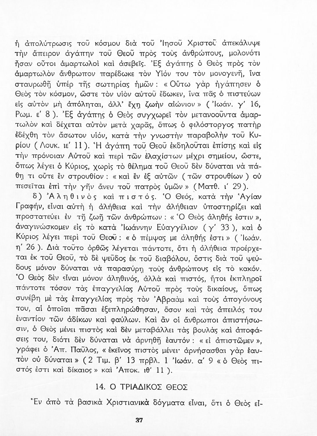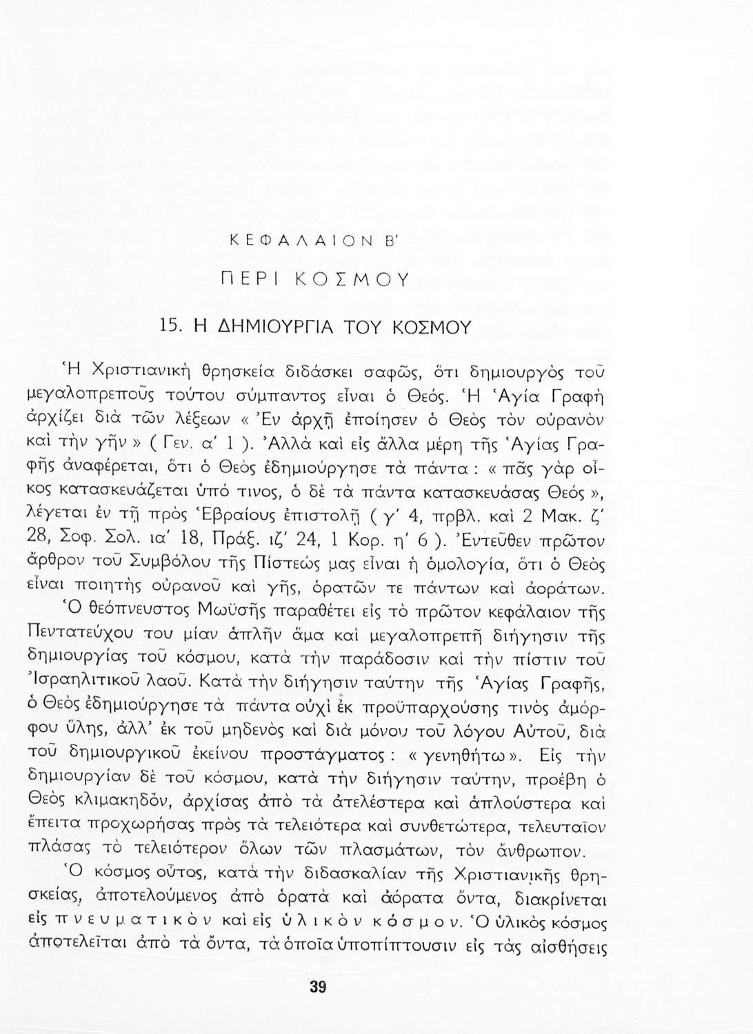 Παρουσίαση περιεχομένου: Σχολικό εγχειρίδιο Θρησκευτικών που αναλύει την έννοια της κατήχησης στις διάφορες θρησκείες με έμφαση στο ορθόδοξο χριστιανικό δόγμα, το οποίο εξετάσει από δογματική και ηθική σκοπιά. Περιλαμβάνει και στοιχεία λειτουργικής της Ορθόδοξης Εκκλησίας. Περιέχονται εκκλησιαστικοί ύμνοι και προσευχές. Φέρει το σύμβολο της δικτατορίας.