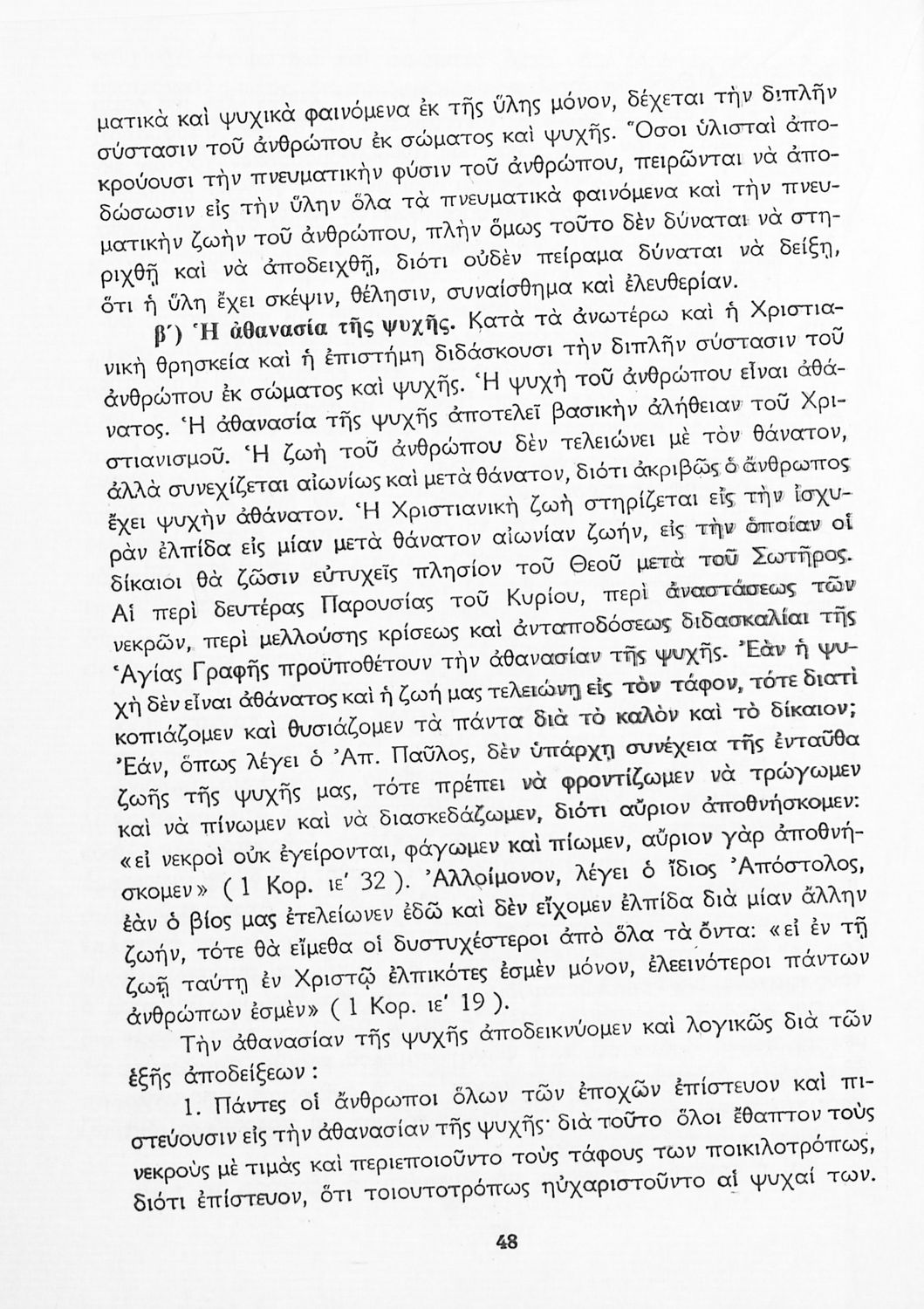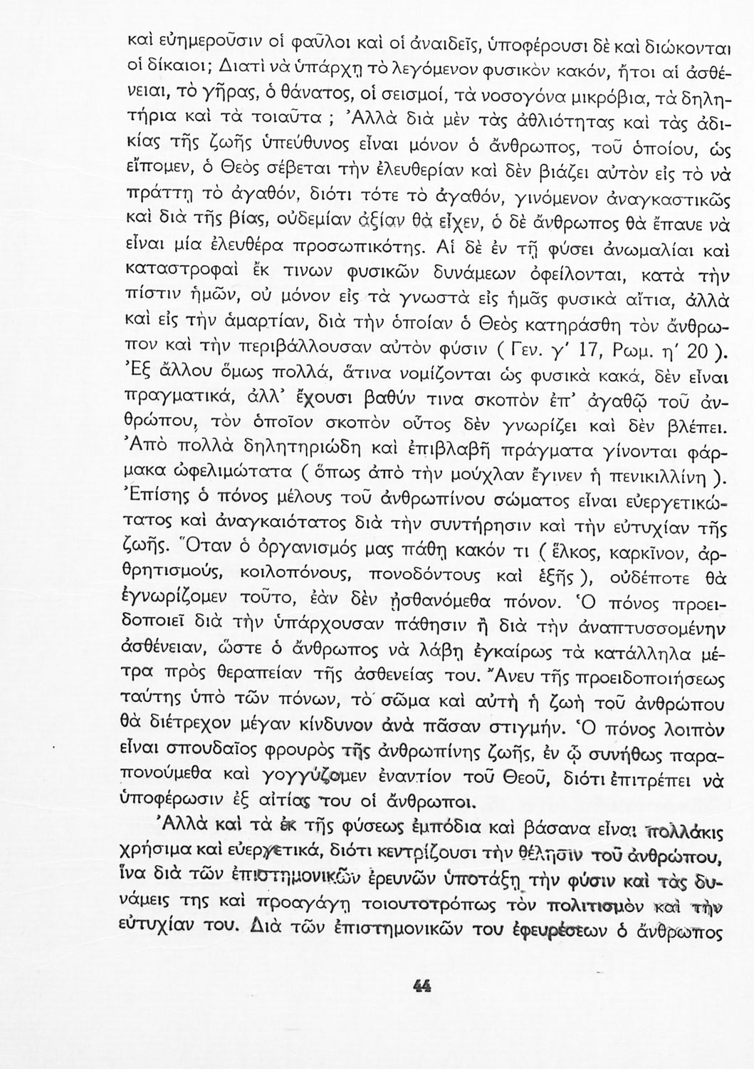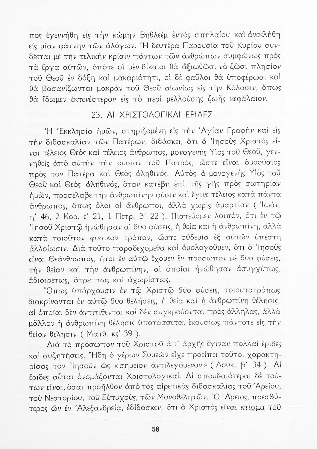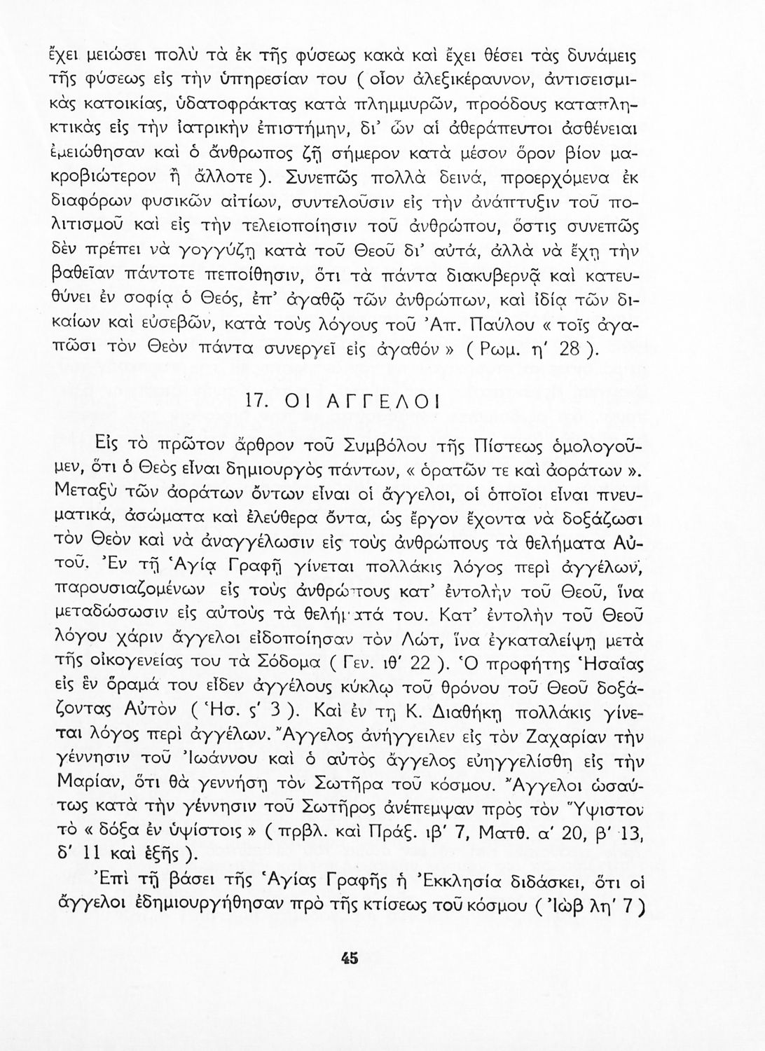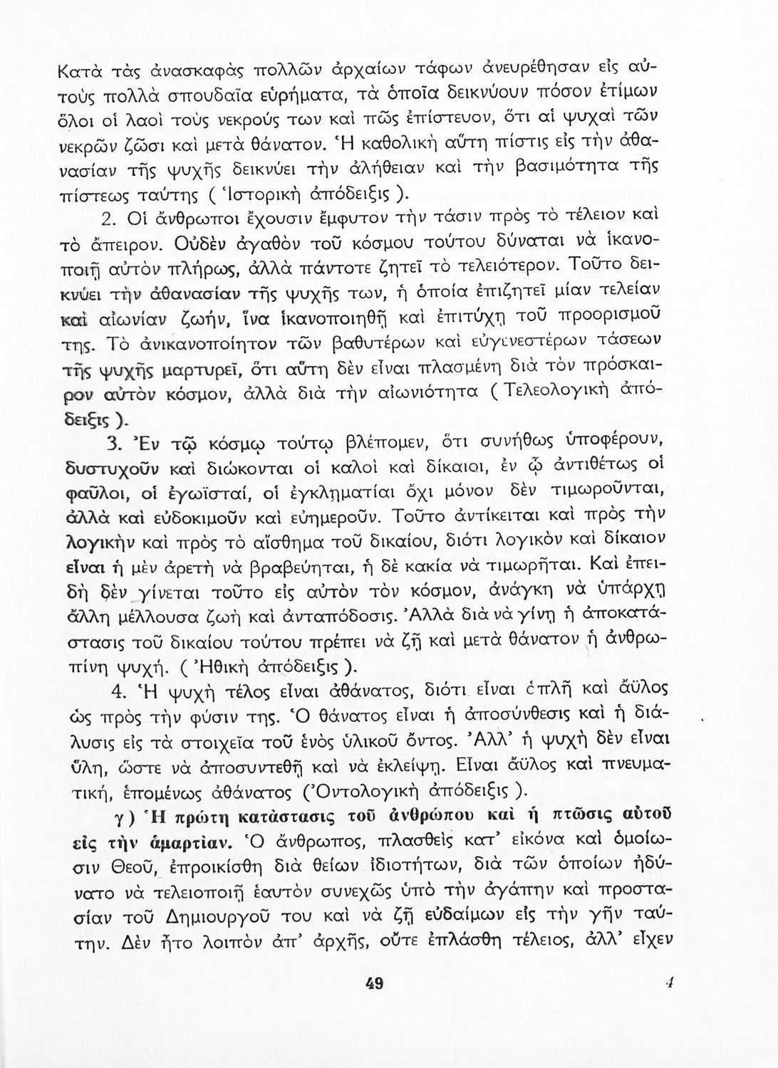 Βαθμίδα εκπαίδευσης: Δευτεροβάθμια Μάθημα: Θρησκευτικά Γλώσσα: Καθαρεύουσα Παρουσίαση περιεχομένου: Σχολικό εγχειρίδιο Θρησκευτικών που αναλύει την έννοια της κατήχησης στις διάφορες θρησκείες με έμφαση στο ορθόδοξο χριστιανικό δόγμα, το οποίο εξετάσει από δογματική και ηθική σκοπιά. Περιλαμβάνει και στοιχεία λειτουργικής της Ορθόδοξης Εκκλησίας. Περιέχονται εκκλησιαστικοί ύμνοι και προσευχές. Φέρει το σύμβολο της δικτατορίας. |