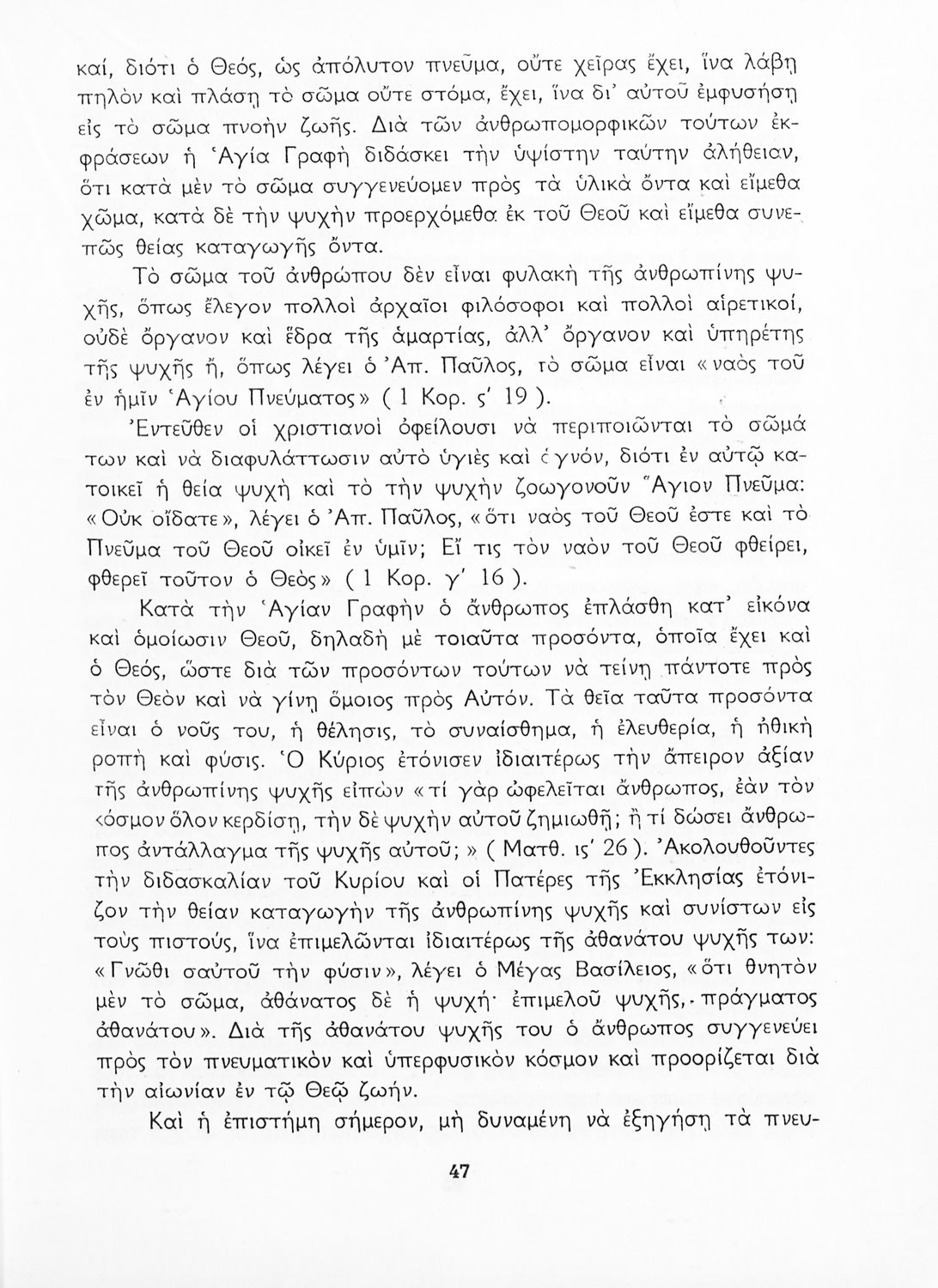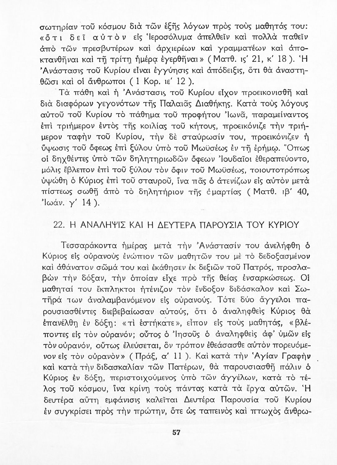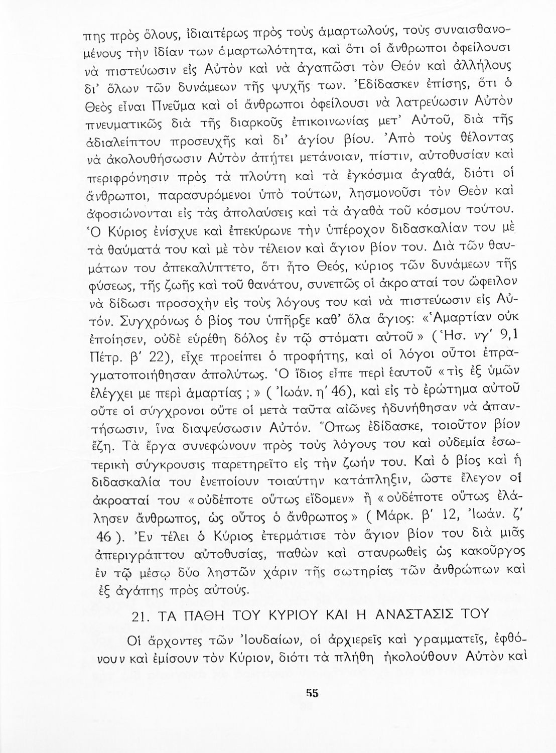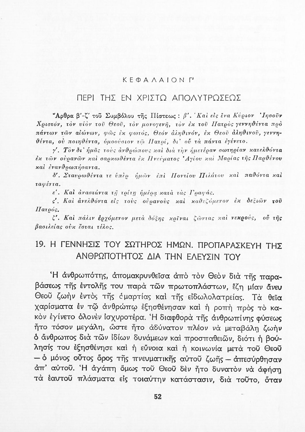 Σχολικό εγχειρίδιο Θρησκευτικών που αναλύει την έννοια της κατήχησης στις διάφορες θρησκείες με έμφαση στο ορθόδοξο χριστιανικό δόγμα, το οποίο εξετάσει από δογματική και ηθική σκοπιά. Περιλαμβάνει και στοιχεία λειτουργικής της Ορθόδοξης Εκκλησίας. Περιέχονται εκκλησιαστικοί ύμνοι και προσευχές. Φέρει το σύμβολο της δικτατορίας.