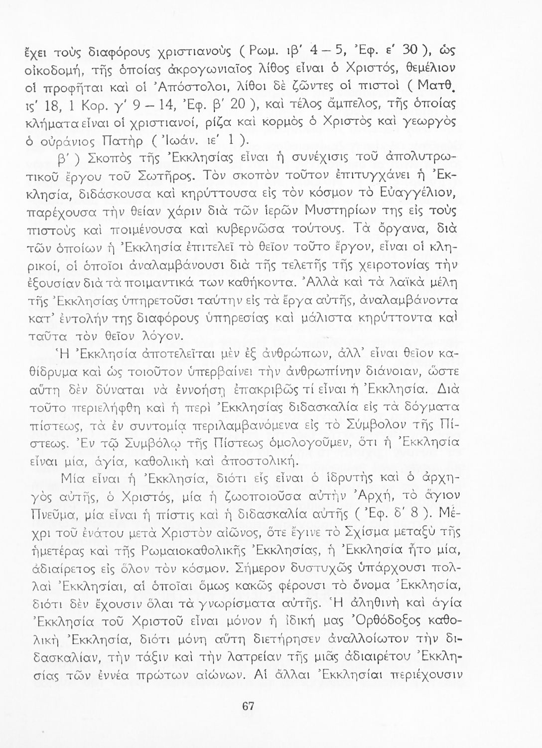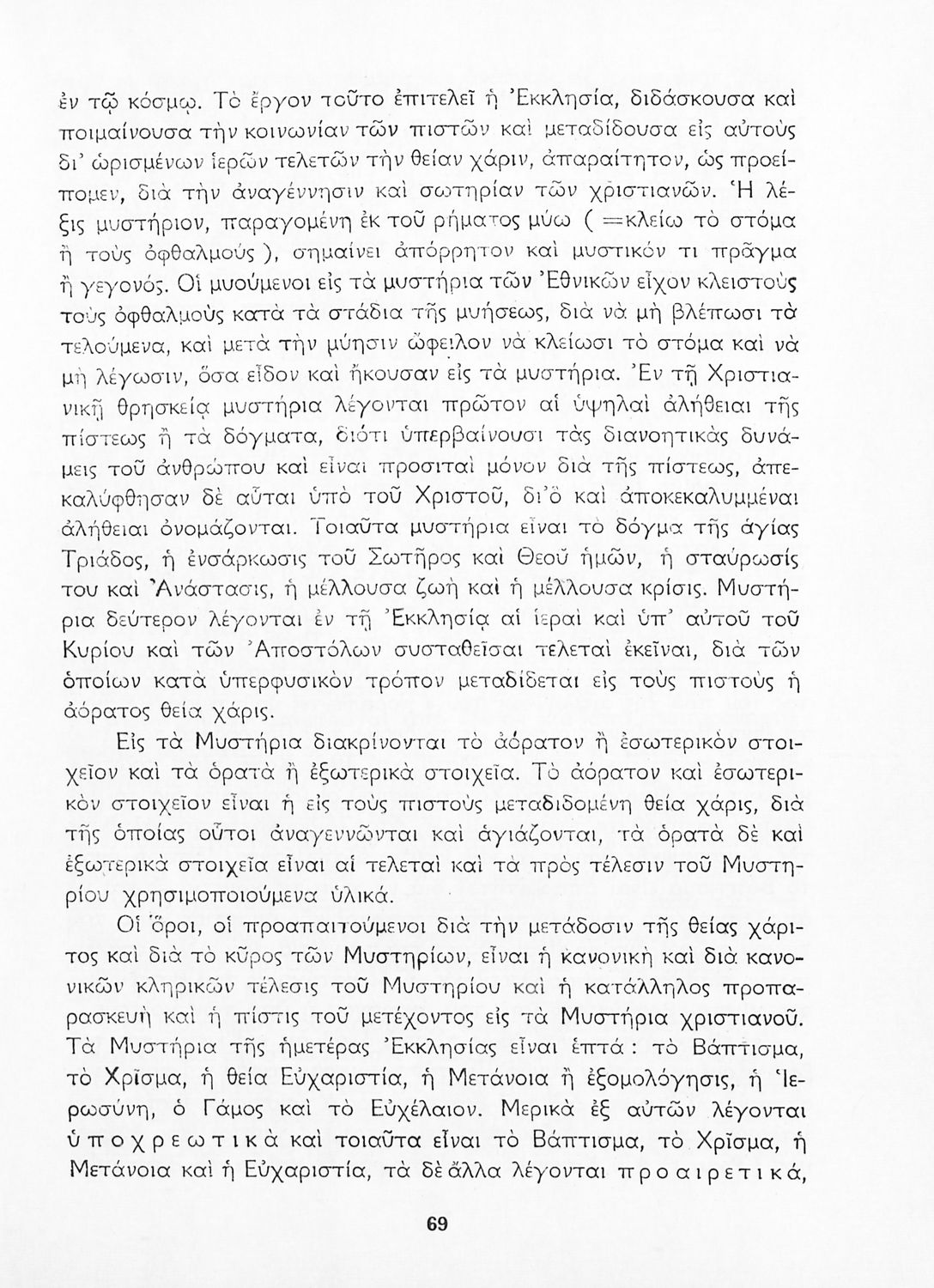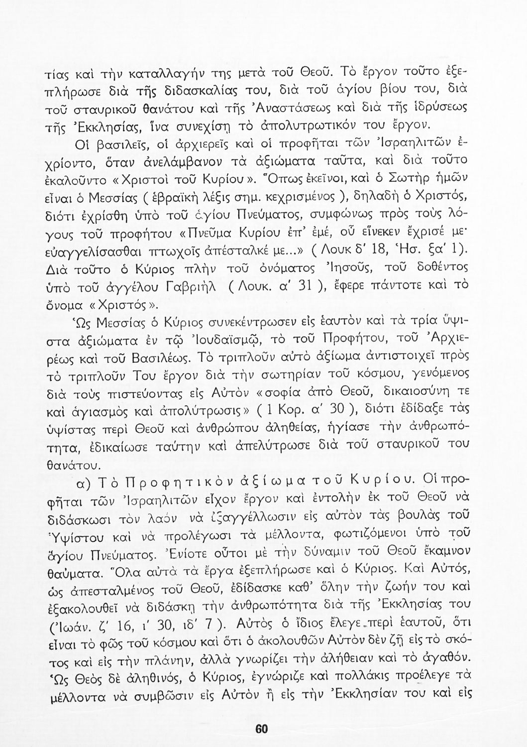Σχολικό εγχειρίδιο Θρησκευτικών που αναλύει την έννοια της κατήχησης στις διάφορες θρησκείες με έμφαση στο ορθόδοξο χριστιανικό δόγμα, το οποίο εξετάσει από δογματική και ηθική σκοπιά. Περιλαμβάνει και στοιχεία λειτουργικής της Ορθόδοξης Εκκλησίας. Περιέχονται εκκλησιαστικοί ύμνοι και προσευχές. Φέρει το σύμβολο της δικτατορίας.