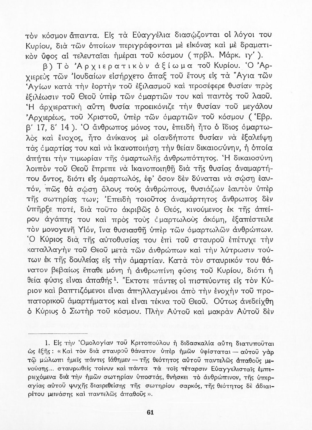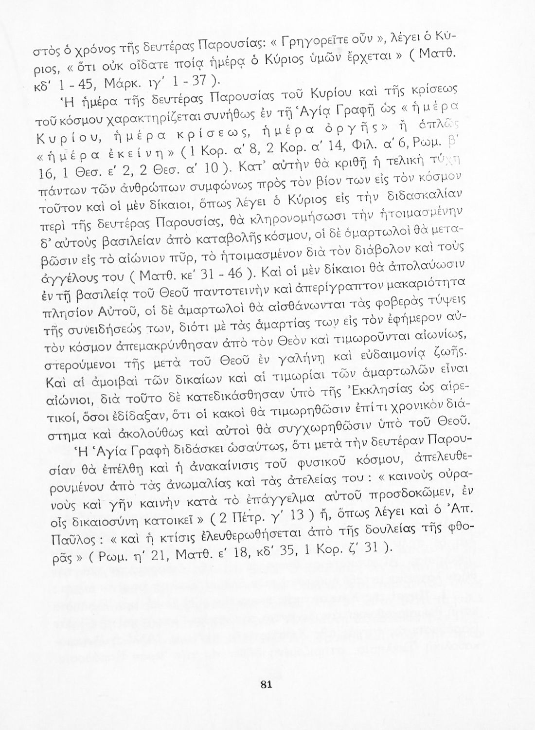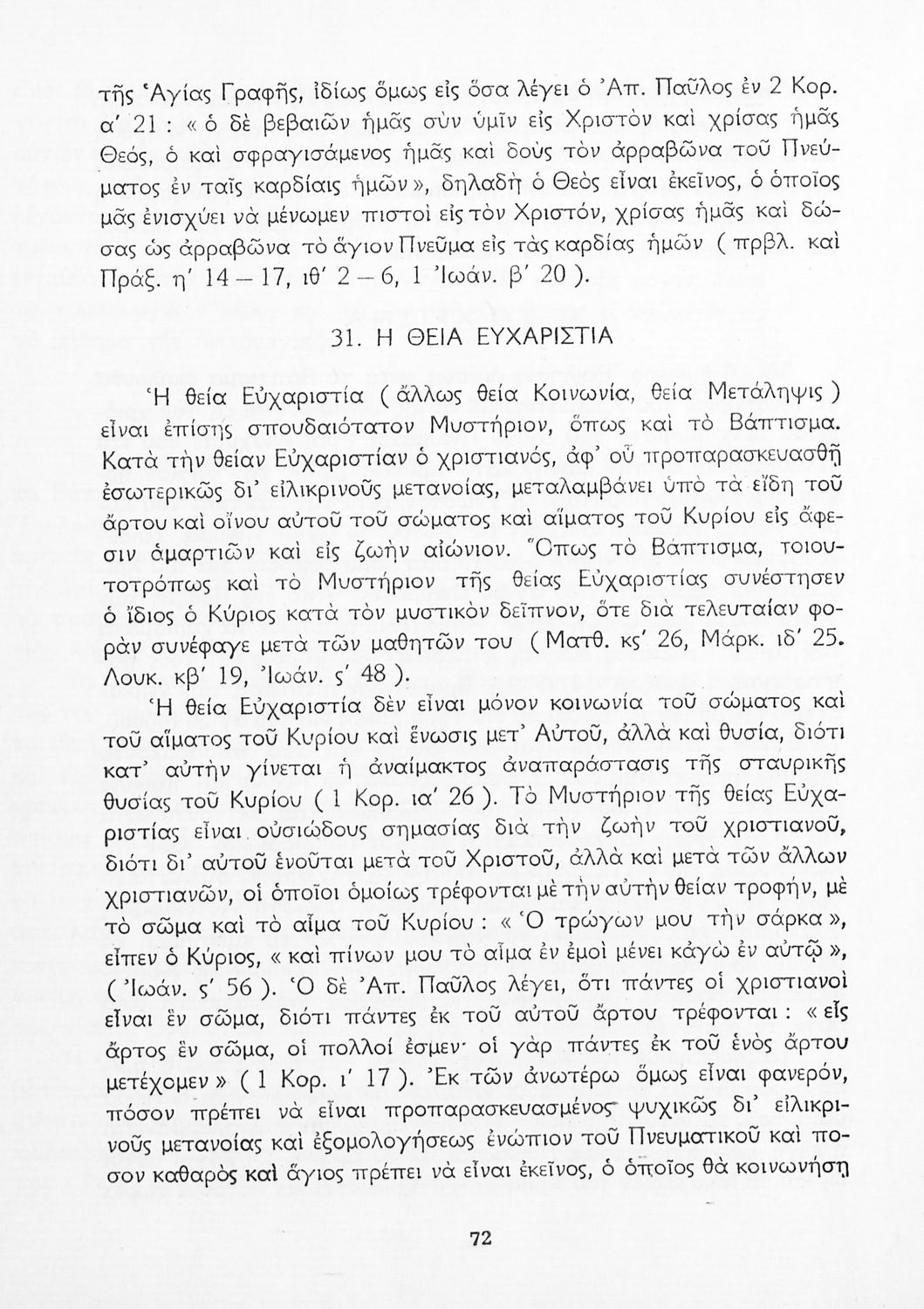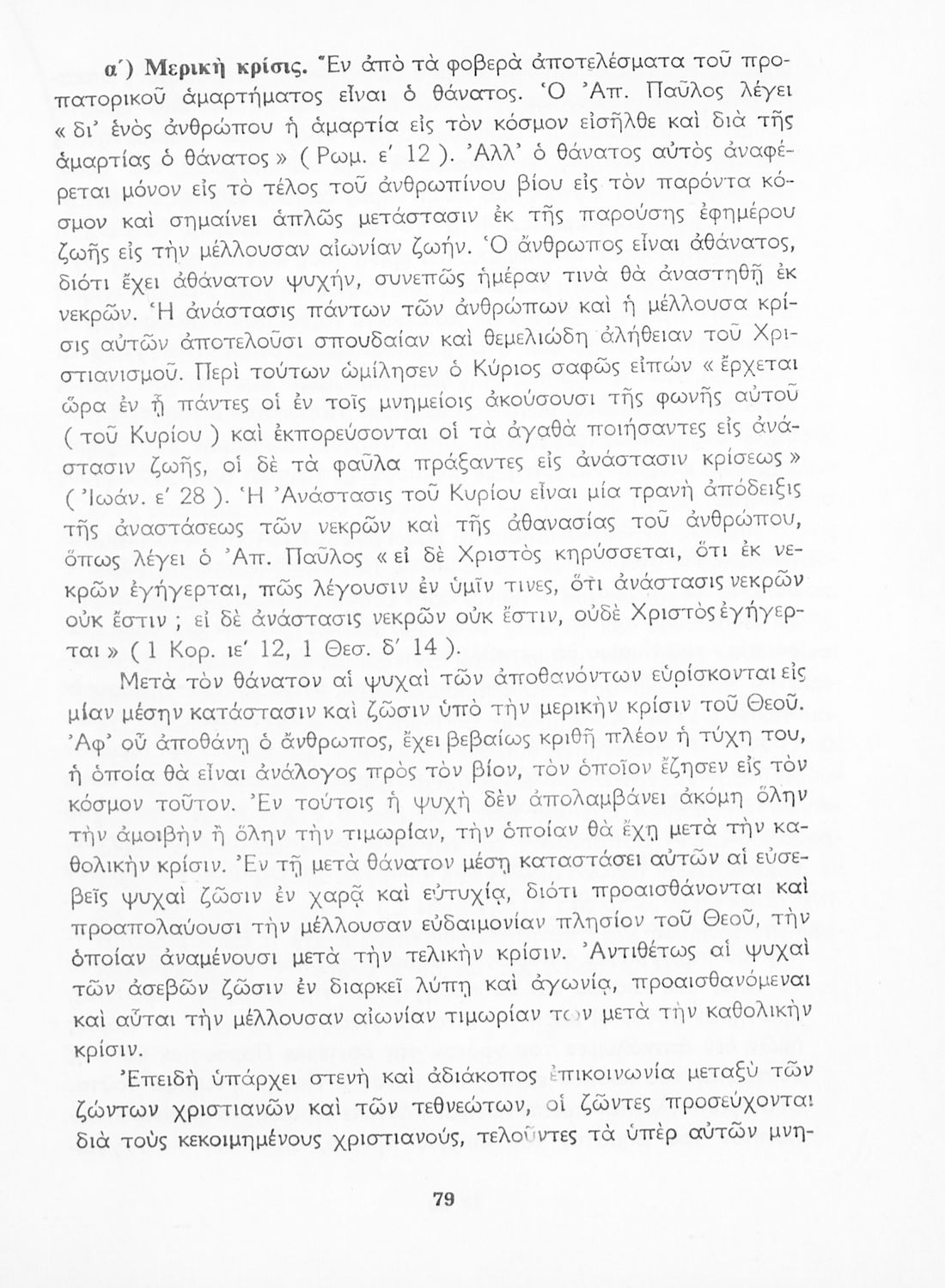 Σχολικό εγχειρίδιο Θρησκευτικών που αναλύει την έννοια της κατήχησης στις διάφορες θρησκείες με έμφαση στο ορθόδοξο χριστιανικό δόγμα, το οποίο εξετάσει από δογματική και ηθική σκοπιά. Περιλαμβάνει και στοιχεία λειτουργικής της Ορθόδοξης Εκκλησίας. Περιέχονται εκκλησιαστικοί ύμνοι και προσευχές. Φέρει το σύμβολο της δικτατορίας.