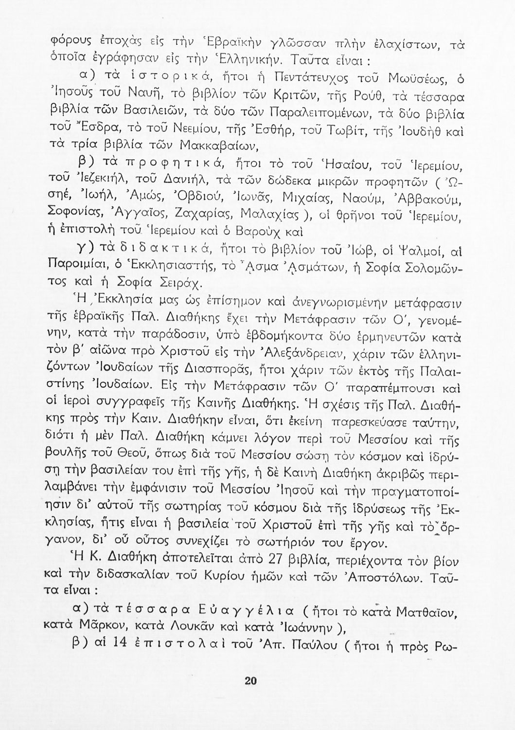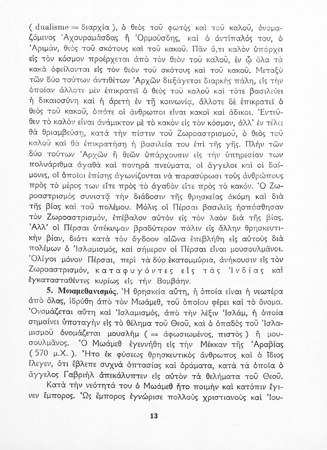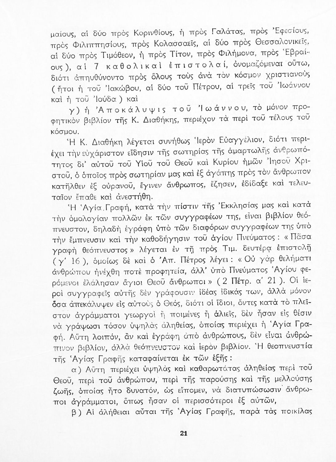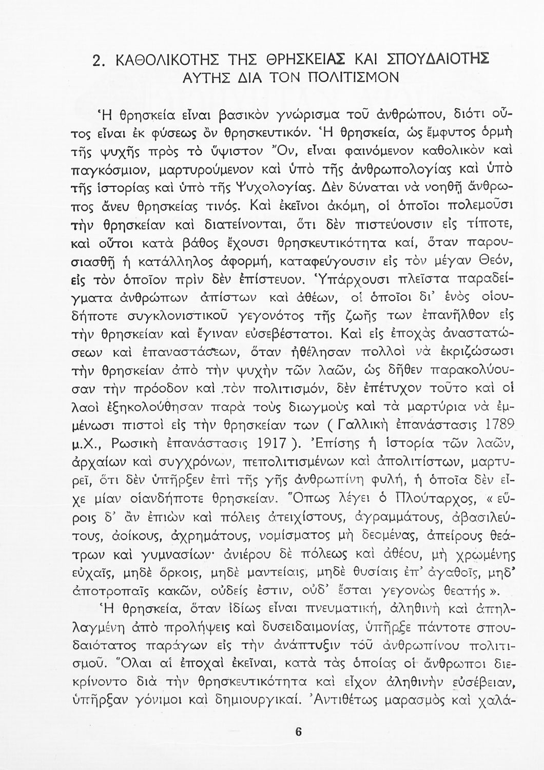 Βαθμίδα εκπαίδευσης: Δευτεροβάθμια Μάθημα: Θρησκευτικά Γλώσσα: Καθαρεύουσα Παρουσίαση περιεχομένου: Σχολικό εγχειρίδιο Θρησκευτικών που αναλύει την έννοια της κατήχησης στις διάφορες θρησκείες με έμφαση στο ορθόδοξο χριστιανικό δόγμα, το οποίο εξετάσει από δογματική και ηθική σκοπιά. Περιλαμβάνει και στοιχεία λειτουργικής της Ορθόδοξης Εκκλησίας. Περιέχονται εκκλησιαστικοί ύμνοι και προσευχές. Φέρει το σύμβολο της δικτατορίας. |