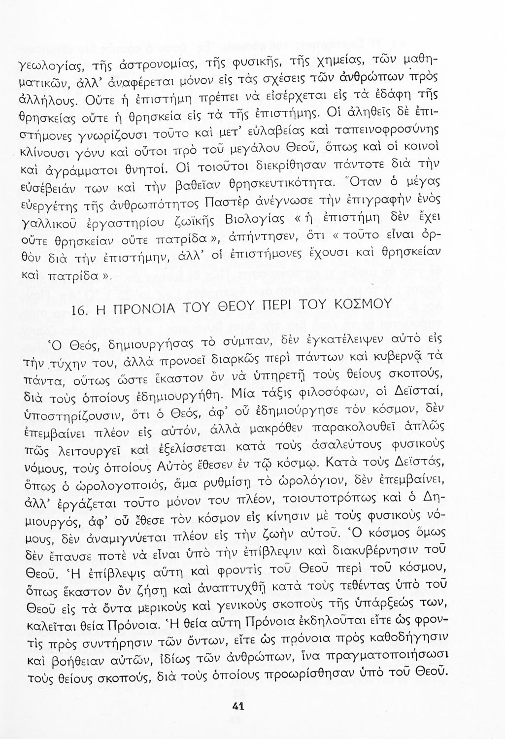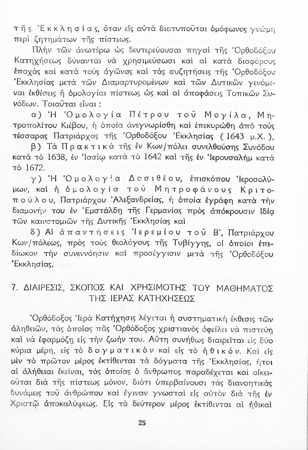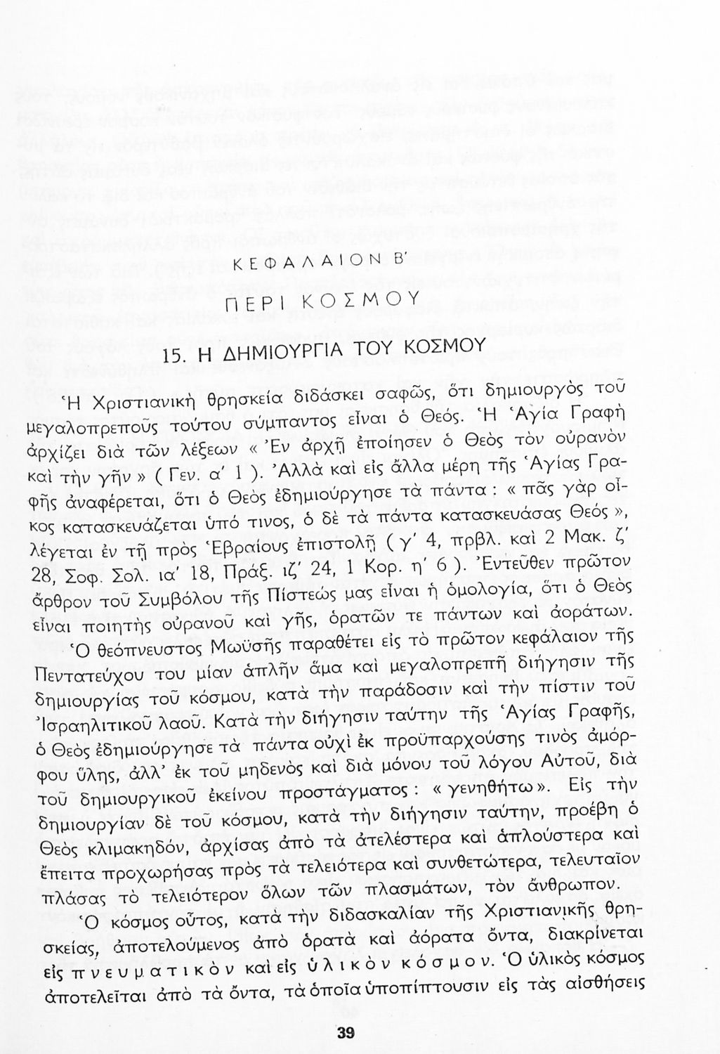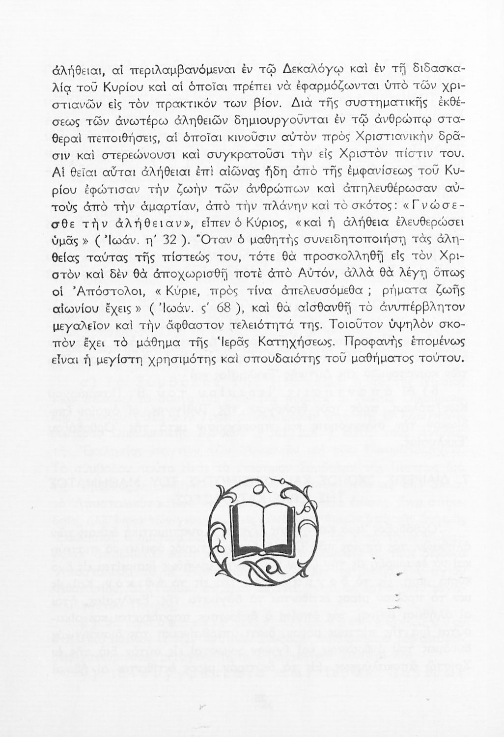 Σχολικό εγχειρίδιο Θρησκευτικών Ε' Γυμνασίου που αναλύει την έννοια της κατήχησης στις διάφορες θρησκείες με έμφαση στο ορθόδοξο χριστιανικό δόγμα, το οποίο εξετάσει από δογματική και ηθική σκοπιά. Περιλαμβάνει και στοιχεία λειτουργικής της Ορθόδοξης Εκκλησίας. Περιέχονται εκκλησιαστικοί ύμνοι και προσευχές. Φέρει το σύμβολο της δικτατορίας.