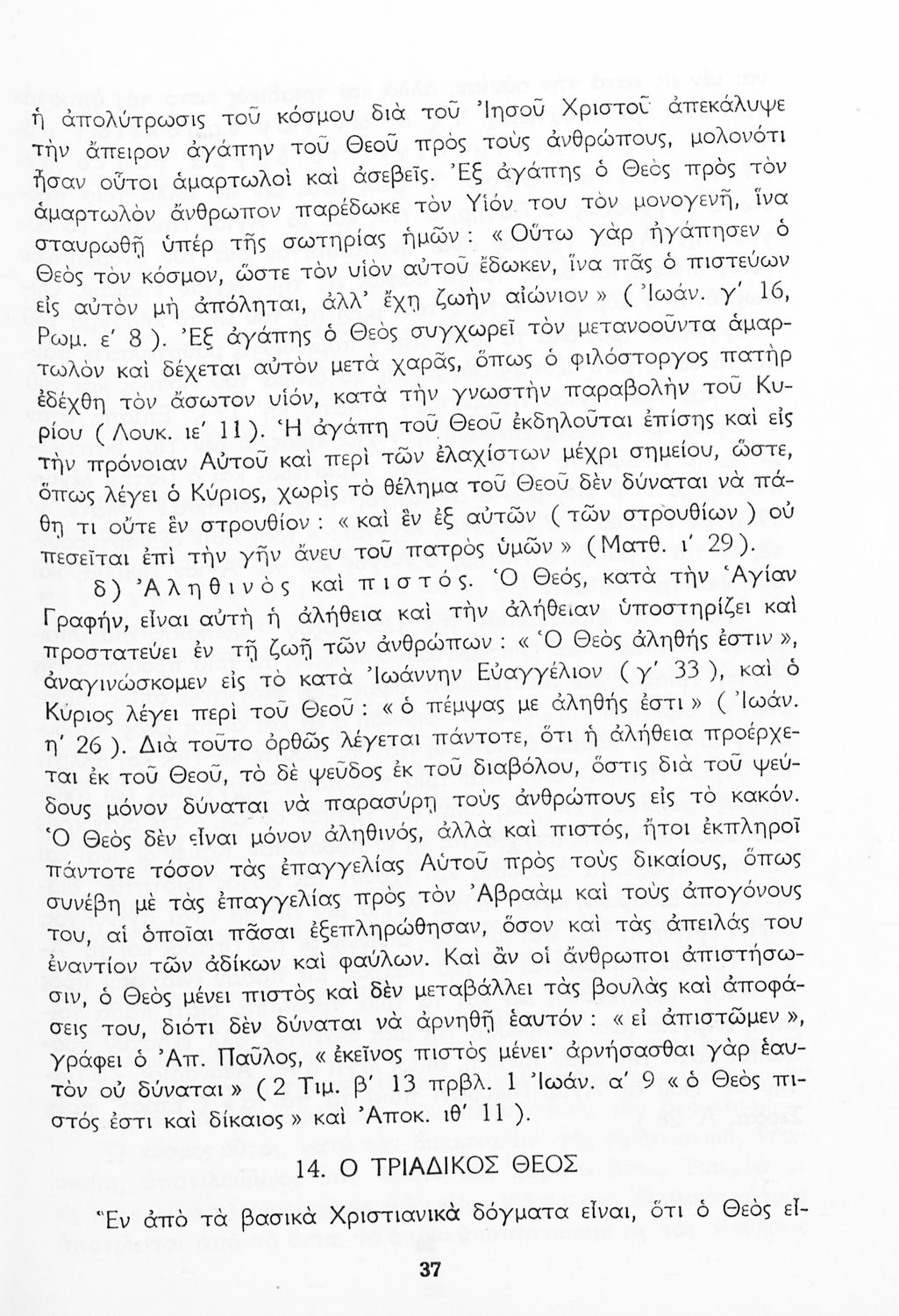Βαθμίδα εκπαίδευσης: Δευτεροβάθμια Τάξη: Ε' Γυμνασίου Μάθημα: Θρησκευτικά Γλώσσα: Καθαρεύουσα Παρουσίαση περιεχομένου: Σχολικό εγχειρίδιο Θρησκευτικών Ε' Γυμνασίου που αναλύει την έννοια της κατήχησης στις διάφορες θρησκείες με έμφαση στο ορθόδοξο χριστιανικό δόγμα, το οποίο εξετάσει από δογματική και ηθική σκοπιά. Περιλαμβάνει και στοιχεία λειτουργικής της Ορθόδοξης Εκκλησίας. Περιέχονται εκκλησιαστικοί ύμνοι και προσευχές. Φέρει το σύμβολο της δικτατορίας. |