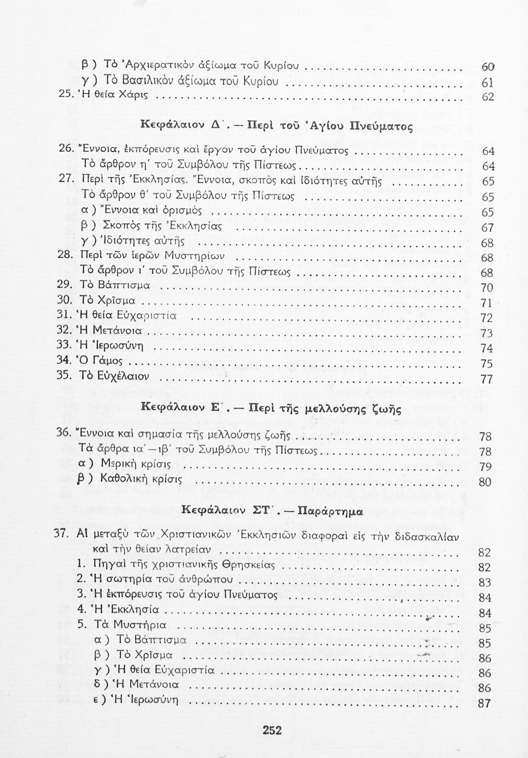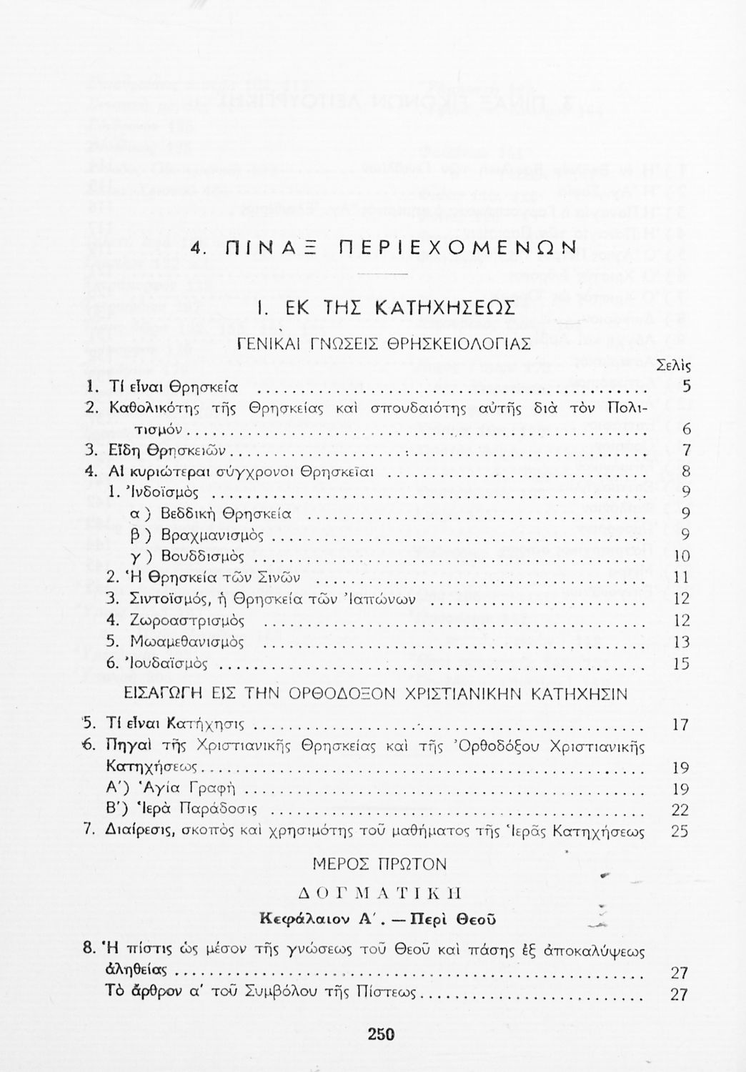 Σχολικό εγχειρίδιο Θρησκευτικών Ε' Γυμνασίου που αναλύει την έννοια της κατήχησης στις διάφορες θρησκείες με έμφαση στο ορθόδοξο χριστιανικό δόγμα, το οποίο εξετάσει από δογματική και ηθική σκοπιά. Περιλαμβάνει και στοιχεία λειτουργικής της Ορθόδοξης Εκκλησίας. Περιέχονται εκκλησιαστικοί ύμνοι και προσευχές. Φέρει το σύμβολο της δικτατορίας.