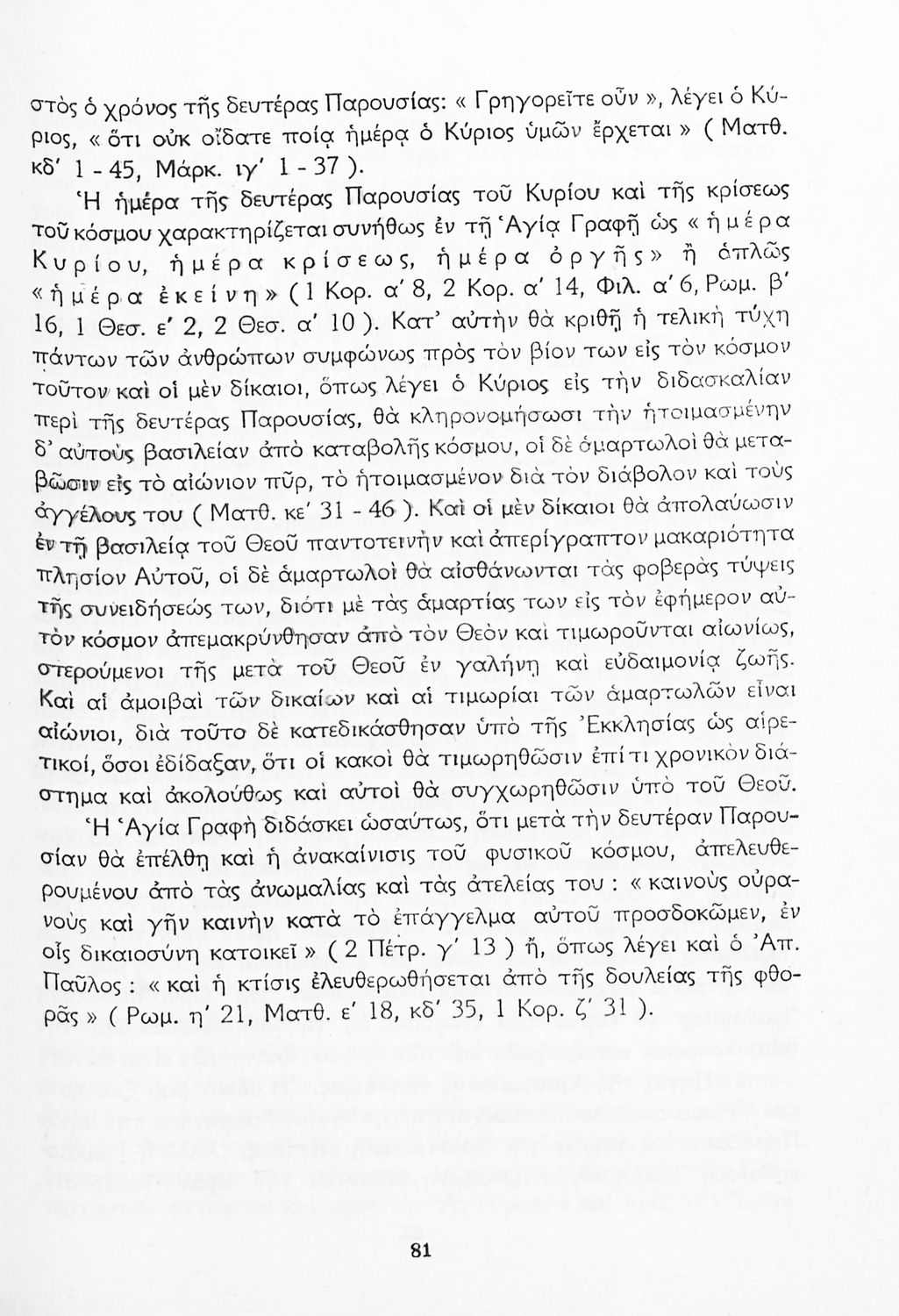 Σχολικό εγχειρίδιο Θρησκευτικών Ε' Γυμνασίου που αναλύει την έννοια της κατήχησης στις διάφορες θρησκείες με έμφαση στο ορθόδοξο χριστιανικό δόγμα, το οποίο εξετάσει από δογματική και ηθική σκοπιά. Περιλαμβάνει και στοιχεία λειτουργικής της Ορθόδοξης Εκκλησίας. Περιέχονται εκκλησιαστικοί ύμνοι και προσευχές. Φέρει το σύμβολο της δικτατορίας.