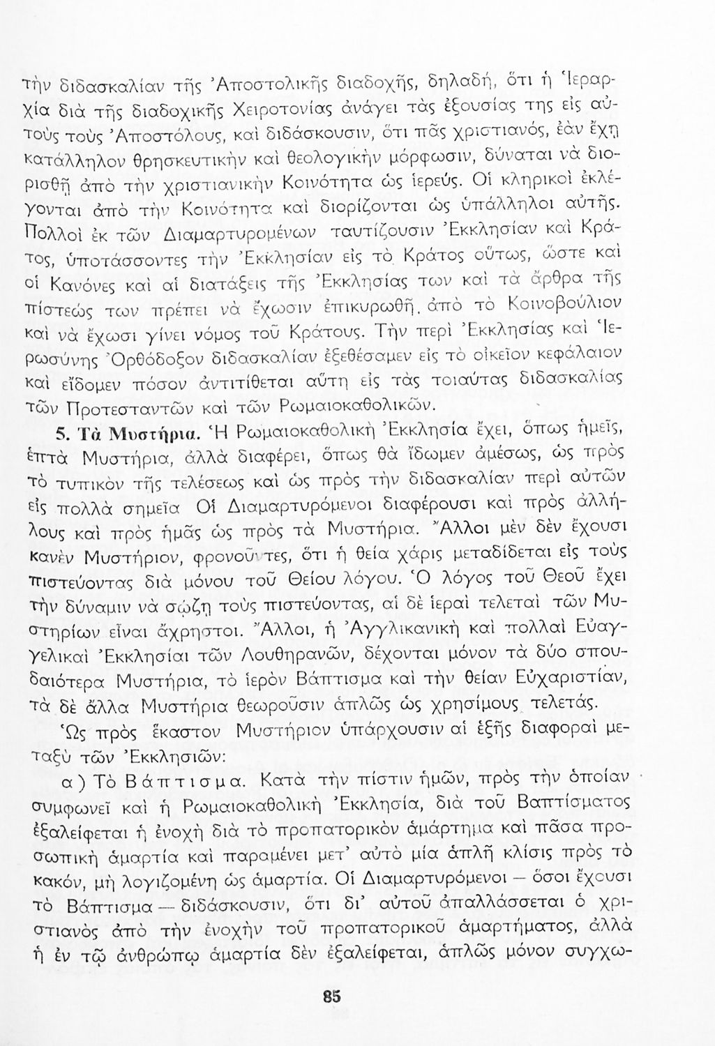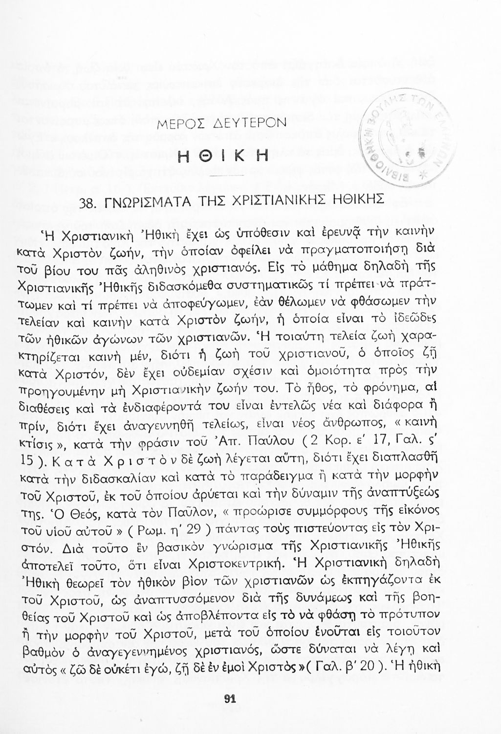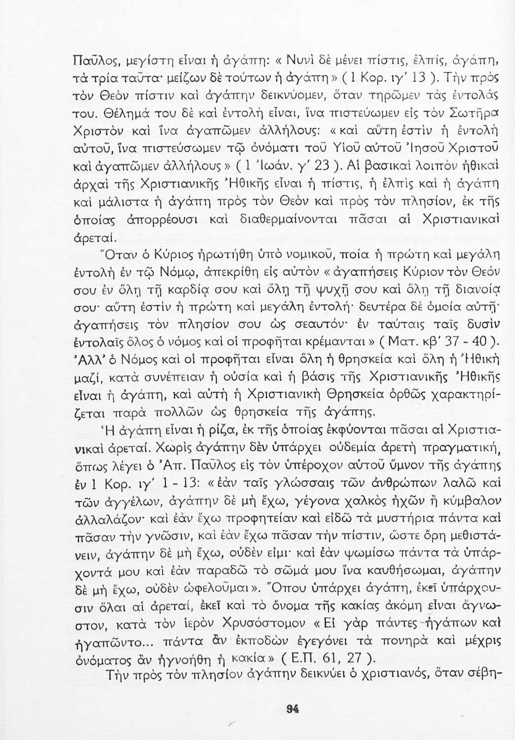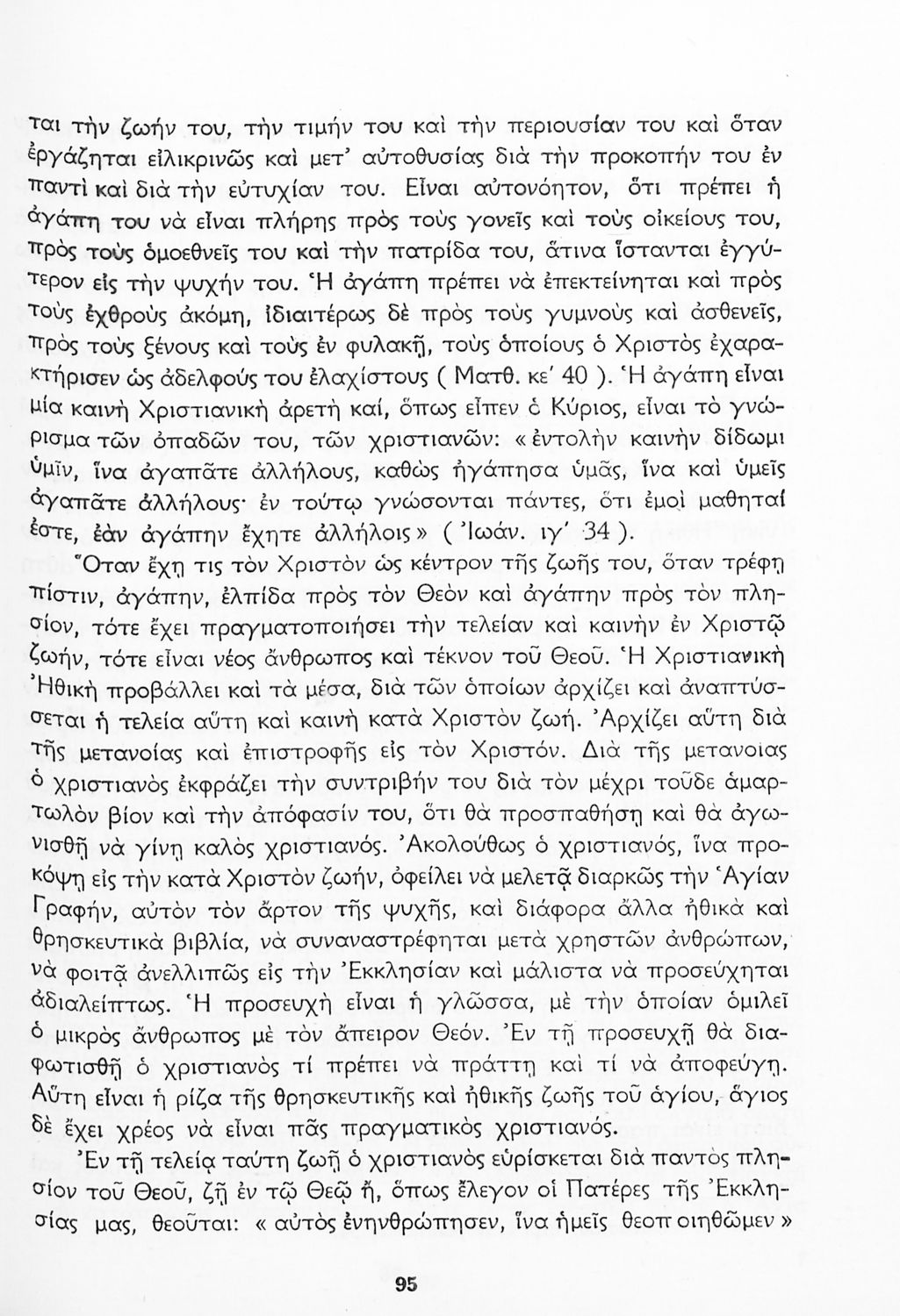 Βαθμίδα εκπαίδευσης: Δευτεροβάθμια Τάξη: Ε' Γυμνασίου Μάθημα: Θρησκευτικά Γλώσσα: Καθαρεύουσα Παρουσίαση περιεχομένου: Σχολικό εγχειρίδιο Θρησκευτικών Ε' Γυμνασίου που αναλύει την έννοια της κατήχησης στις διάφορες θρησκείες με έμφαση στο ορθόδοξο χριστιανικό δόγμα, το οποίο εξετάσει από δογματική και ηθική σκοπιά. Περιλαμβάνει και στοιχεία λειτουργικής της Ορθόδοξης Εκκλησίας. Περιέχονται εκκλησιαστικοί ύμνοι και προσευχές. Φέρει το σύμβολο της δικτατορίας. |