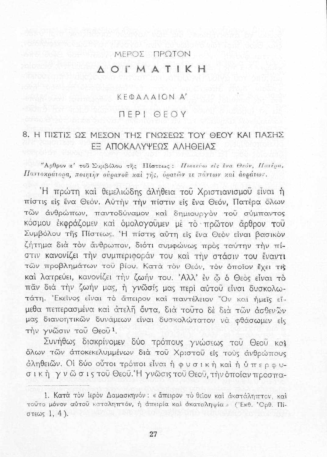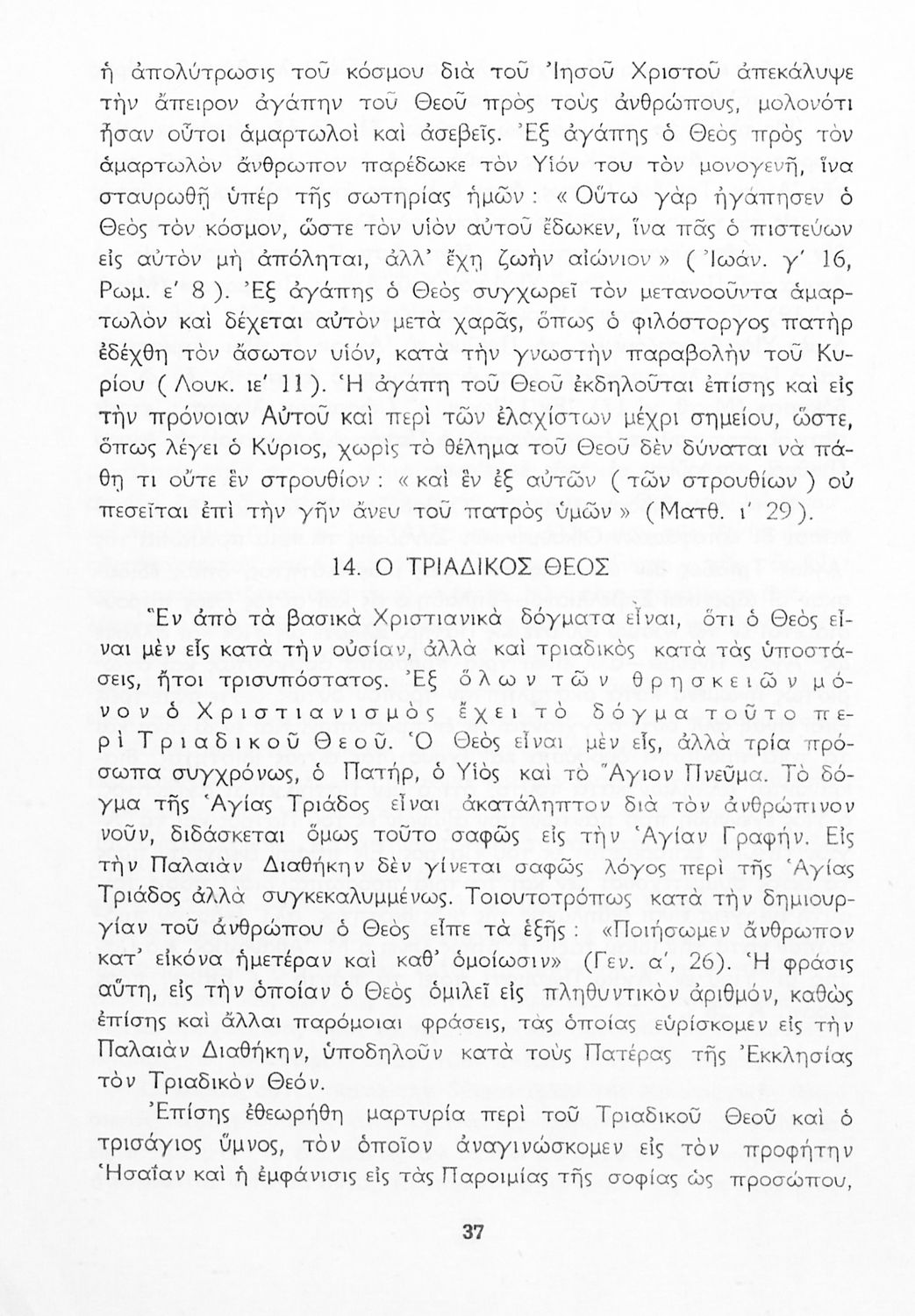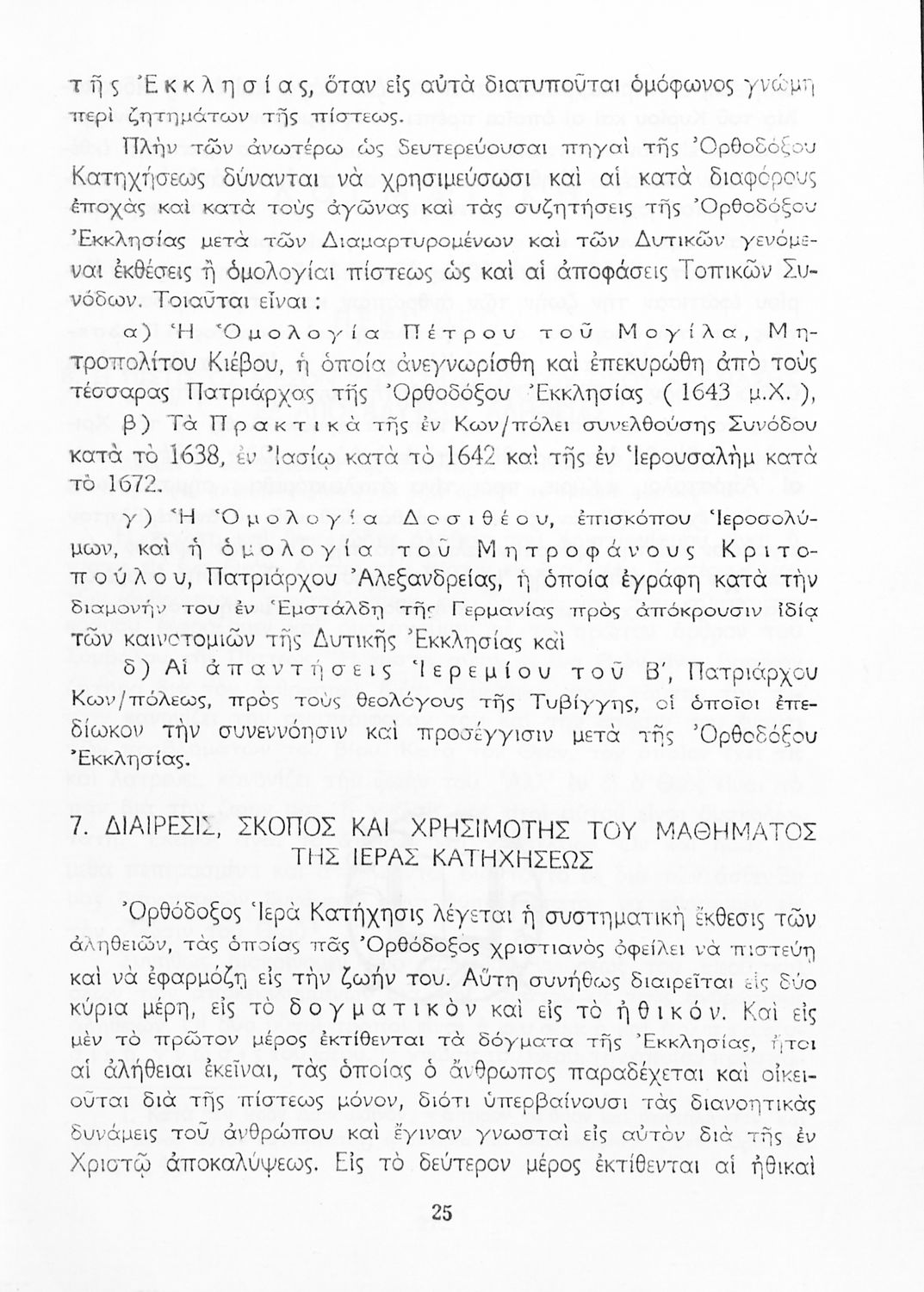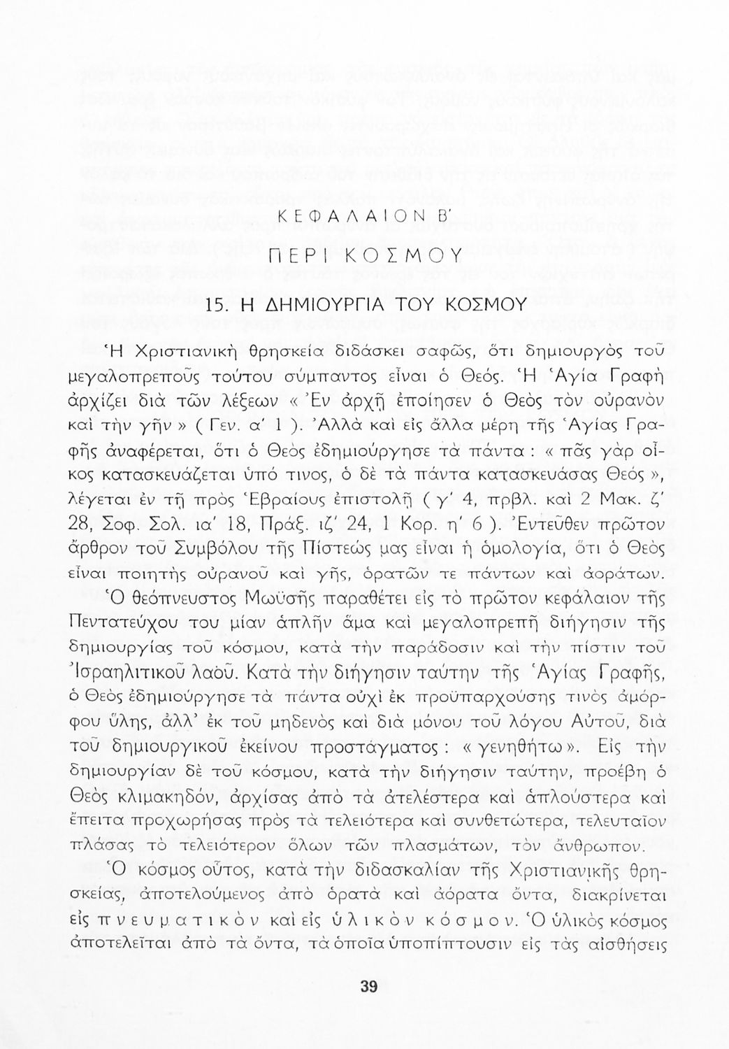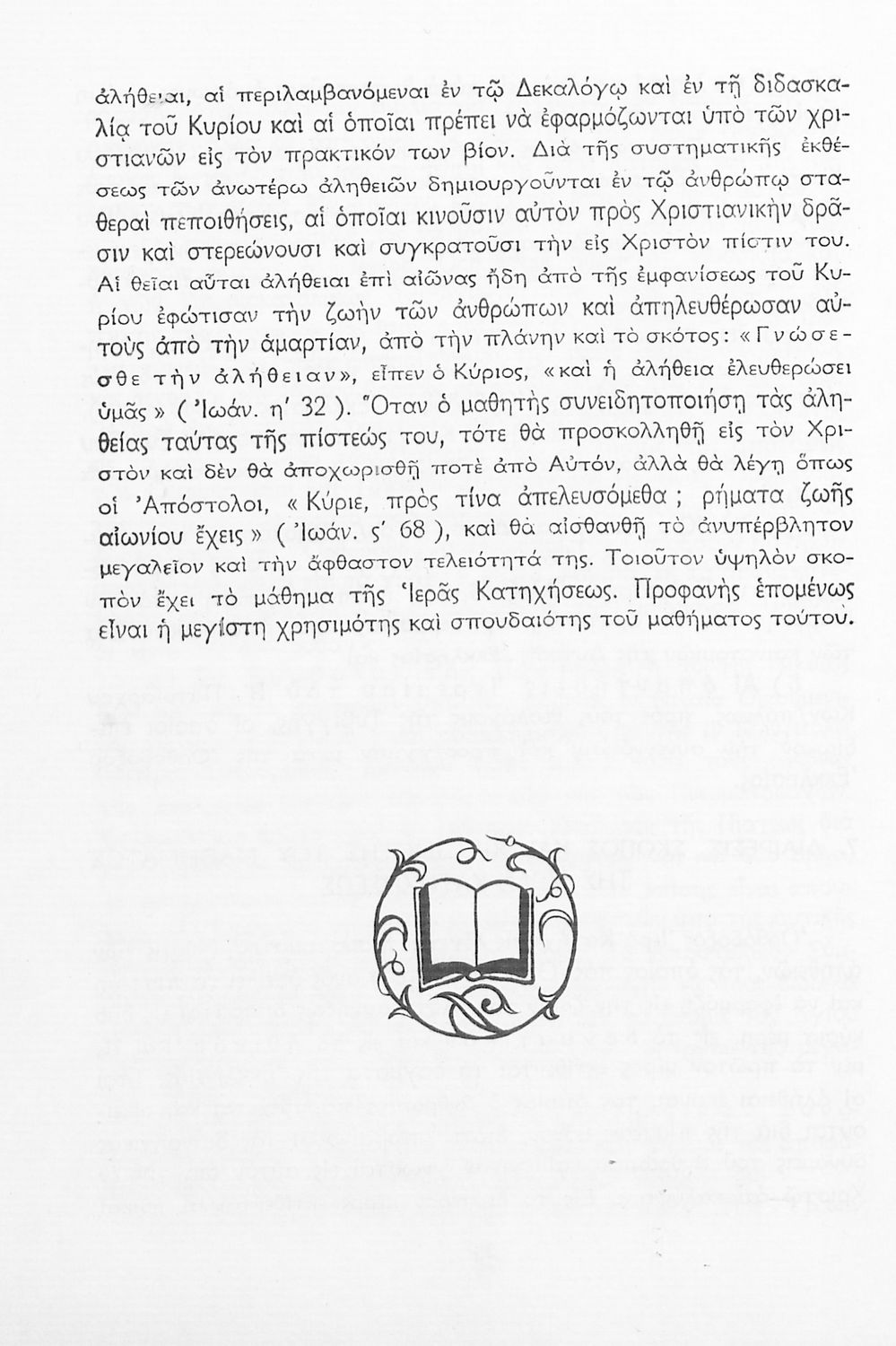 Σχολικό εγχειρίδιο Θρησκευτικών Ε' και ΣΤ΄ Γυμνασίου που αναλύει την έννοια της κατήχησης στις διάφορες θρησκείες με έμφαση στο ορθόδοξο χριστιανικό δόγμα, το οποίο εξετάζει από δογματική και ηθική σκοπιά. Περιλαμβάνει και στοιχεία λειτουργικής της Ορθόδοξης Εκκλησίας. Περιέχονται εκκλησιαστικοί ύμνοι και προσευχές. Φέρει το σύμβολο της δικτατορίας.