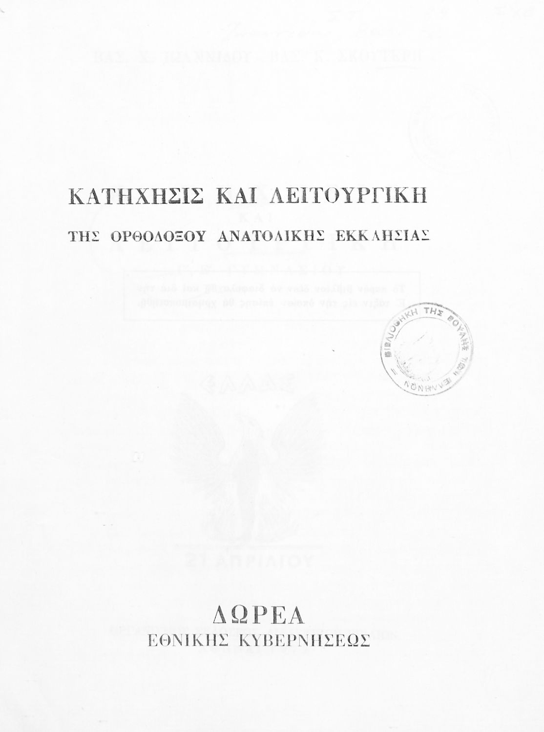 Τίτλος: Κατήχησις και Λειτουργική της Ορθόδοξου Ανατολικής Εκκλησίας, Γ΄, Ε΄ Γυμνασίου