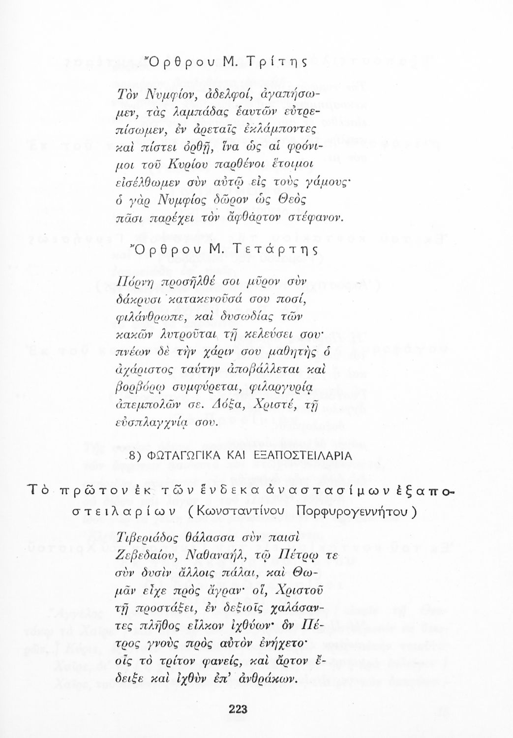 Σχολικό εγχειρίδιο Θρησκευτικών για τους μαθητές της Γ΄ και Ε' Γυμνασίου που αναλύει την έννοια της κατήχησης στις διάφορες θρησκείες με έμφαση στο ορθόδοξο χριστιανικό δόγμα, το οποίο εξετάσει από δογματική και ηθική σκοπιά. Περιλαμβάνει και στοιχεία λειτουργικής της Ορθόδοξης Εκκλησίας. Περιέχονται εκκλησιαστικοί ύμνοι και προσευχές. Φέρει το σύμβολο της δικτατορίας.