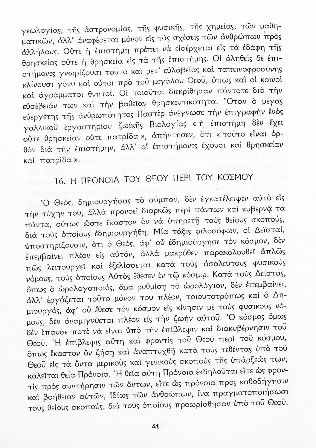 Παρουσίαση περιεχομένου: Σχολικό εγχειρίδιο Θρησκευτικών για τους μαθητές της Γ΄ και Ε' Γυμνασίου που αναλύει την έννοια της κατήχησης στις διάφορες θρησκείες με έμφαση στο ορθόδοξο χριστιανικό δόγμα, το οποίο εξετάσει από δογματική και ηθική σκοπιά. Περιλαμβάνει και στοιχεία λειτουργικής της Ορθόδοξης Εκκλησίας. Περιέχονται εκκλησιαστικοί ύμνοι και προσευχές. Φέρει το σύμβολο της δικτατορίας.