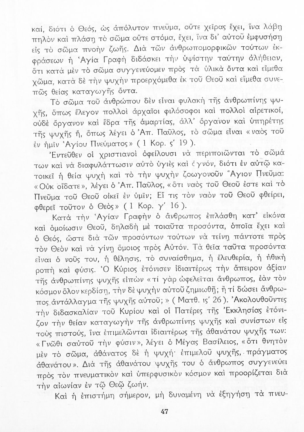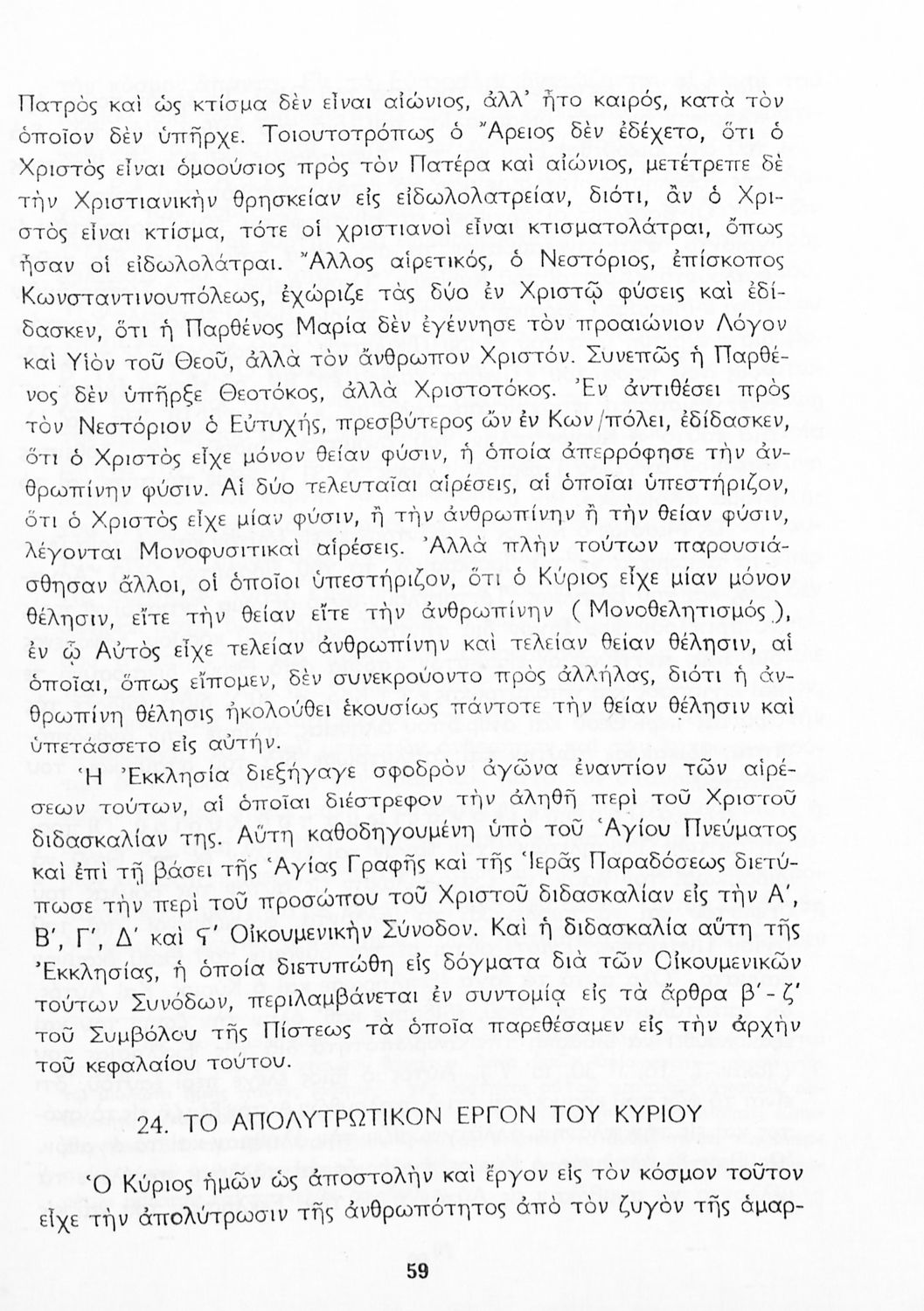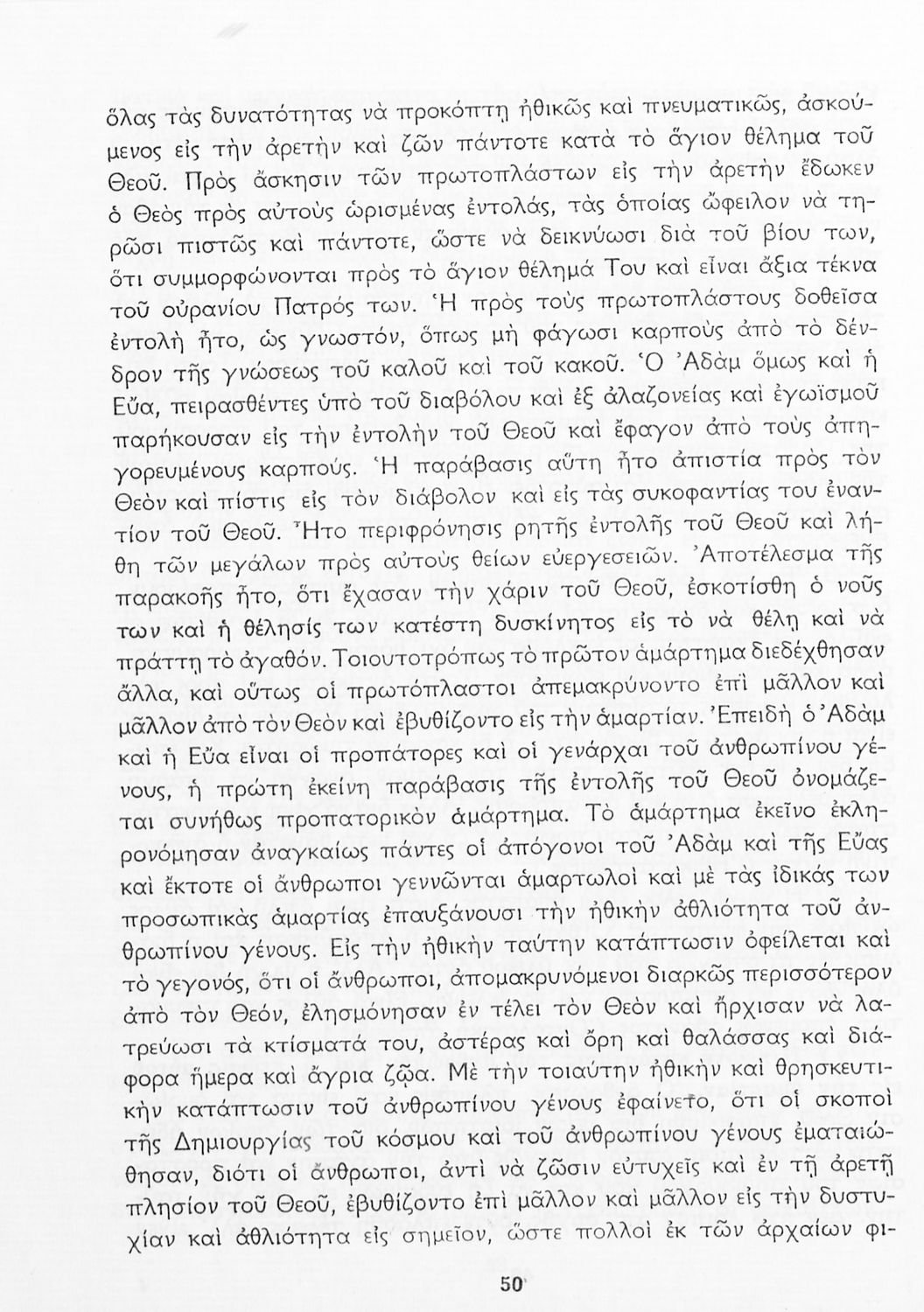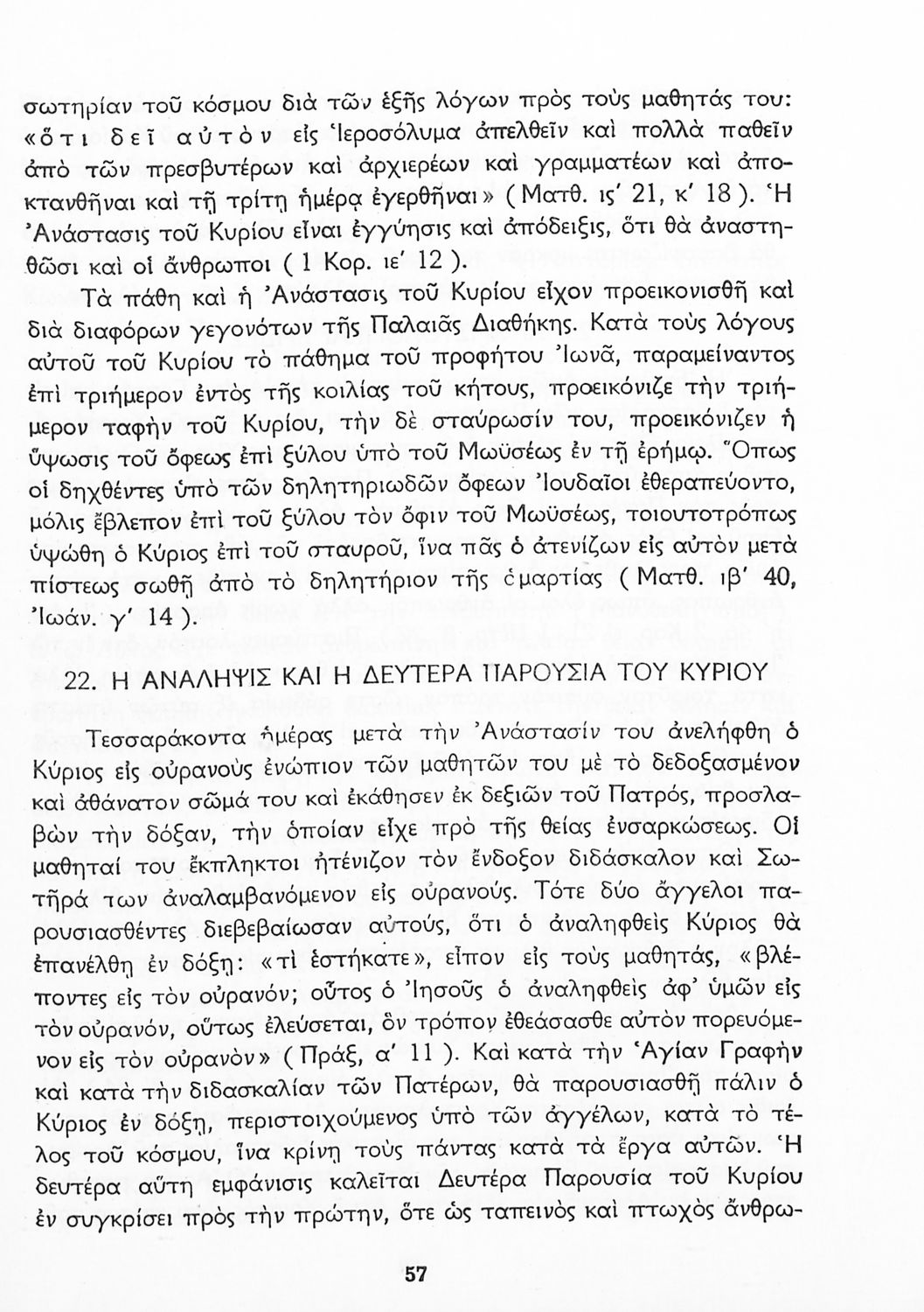 Σχολικό εγχειρίδιο Θρησκευτικών για τους μαθητές της Γ΄ και Ε' Γυμνασίου που αναλύει την έννοια της κατήχησης στις διάφορες θρησκείες με έμφαση στο ορθόδοξο χριστιανικό δόγμα, το οποίο εξετάσει από δογματική και ηθική σκοπιά. Περιλαμβάνει και στοιχεία λειτουργικής της Ορθόδοξης Εκκλησίας. Περιέχονται εκκλησιαστικοί ύμνοι και προσευχές. Φέρει το σύμβολο της δικτατορίας.