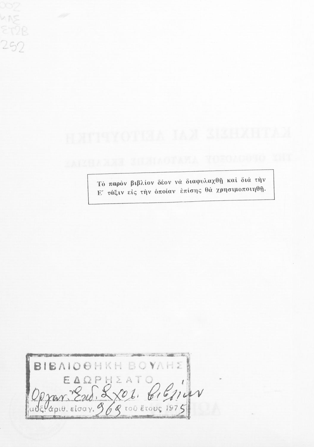 Εντοπισμός πρωτοτύπου: Βιβλιοθήκη της Βουλής των Ελλήνων