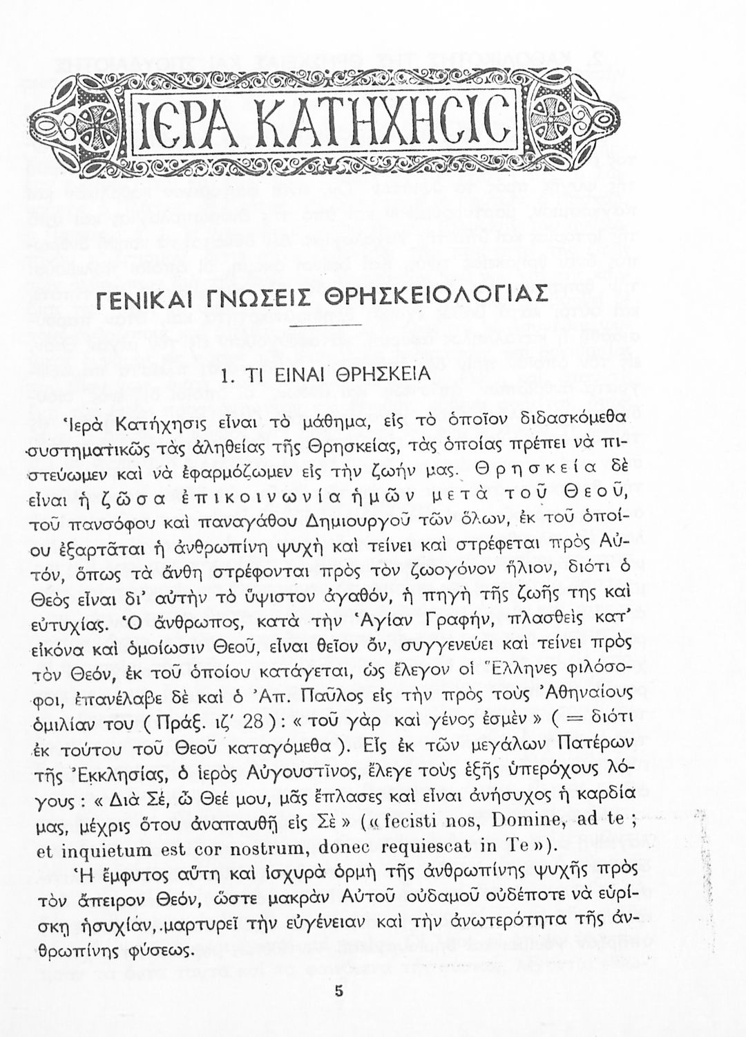 Παρουσίαση περιεχομένου: Σχολικό εγχειρίδιο Θρησκευτικών για τους μαθητές της Γ΄ και Ε' Γυμνασίου που αναλύει την έννοια της κατήχησης στις διάφορες θρησκείες με έμφαση στο ορθόδοξο χριστιανικό δόγμα, το οποίο εξετάσει από δογματική και ηθική σκοπιά. Περιλαμβάνει και στοιχεία λειτουργικής της Ορθόδοξης Εκκλησίας. Περιέχονται εκκλησιαστικοί ύμνοι και προσευχές. Φέρει το σύμβολο της δικτατορίας.