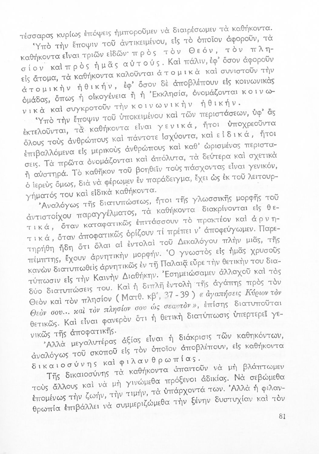 Σχολικό εγχειρίδιο Θρησκευτικών ΣΤ΄ Γυμνασίου που περιέχει τις βασικές αρχές της χριστιανικής ηθικής και τα καθήκοντα του χριστιανού προς τον εαυτό του και τον πλησίον.