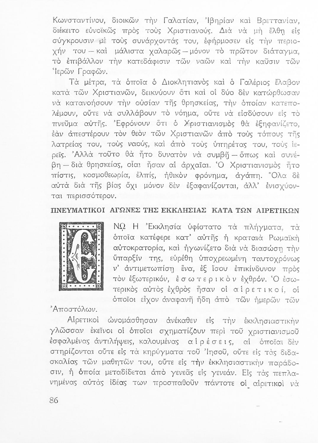 Σχολικό εγχειρίδιο Θρησκευτικών για την Δ' Γυμνασίου παλαιού τύπου που περιέχει την ιστορία της ορθόδοξης Εκκλησίας από την ίδρυσή της μέχρι την δημιουργία της Εκκλησίας της Ελλάδας.