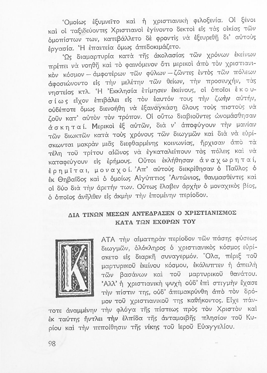 Σχολικό εγχειρίδιο Θρησκευτικών Δ΄ Γυμνασίου που αποτελεί μια γενική επισκόπηση της πορείας της Ορθόδοξης Εκκλησίας από την ίδρυσή της μέχρι την ίδρυση της Εκκλησίας της Ελλάδας. Σχολιάζει και τις σχέσεις της Ορθόδοξης Εκκλησίας με την "Παπική Εκκλησία".