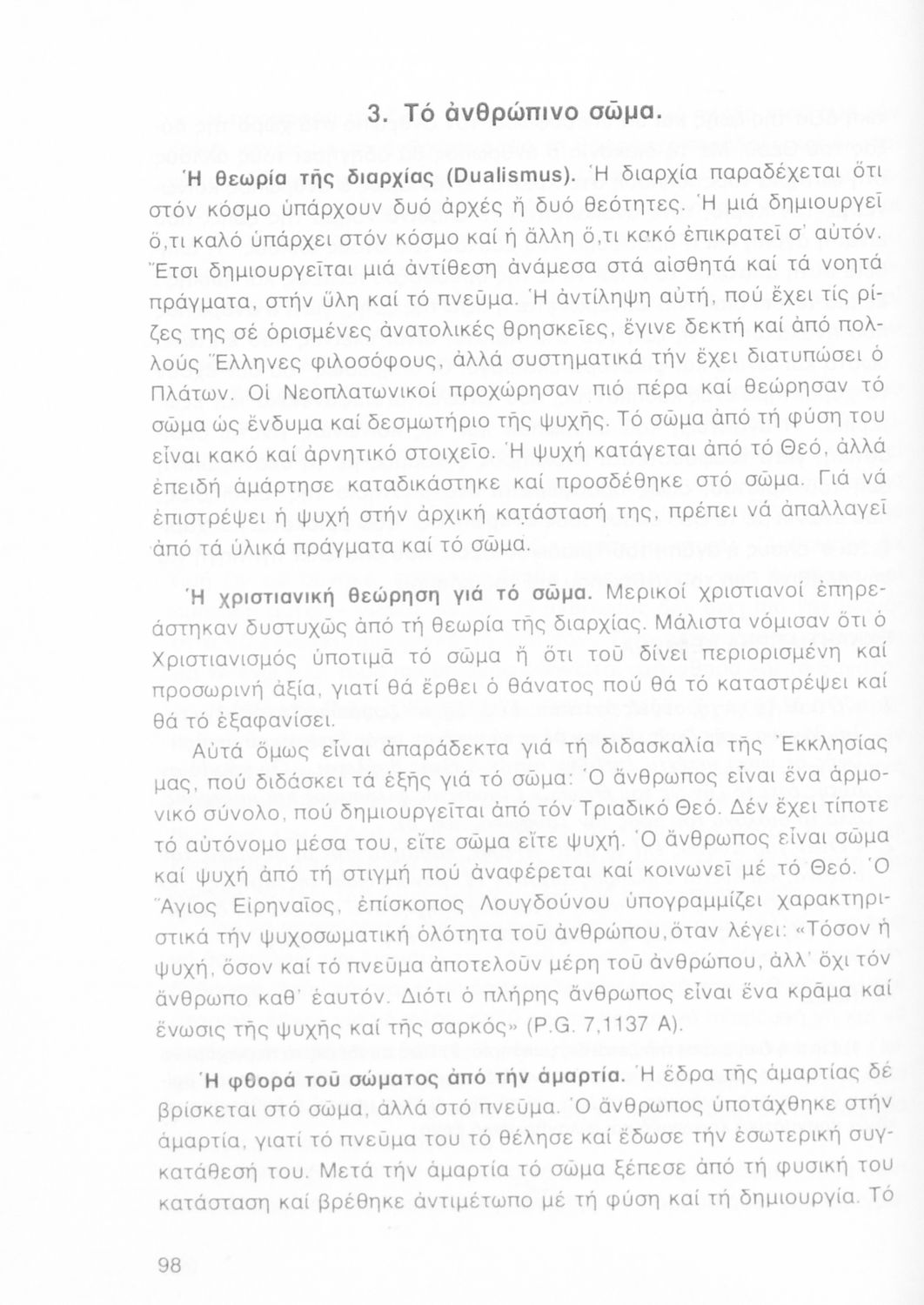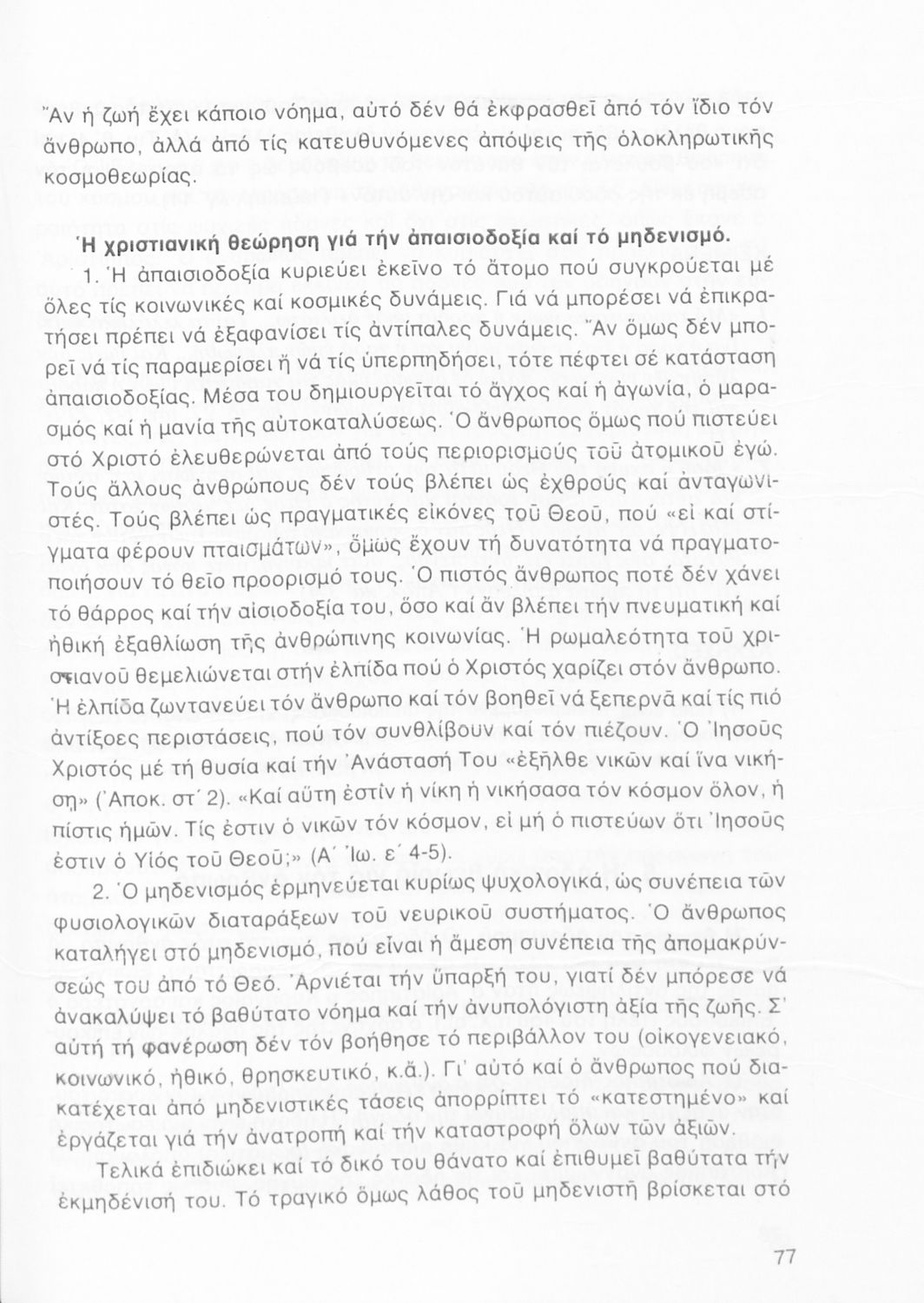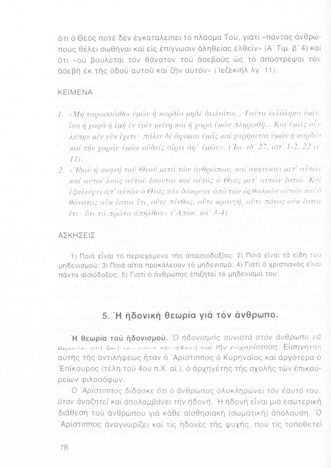 Σχολικό εγχειρίδιο Θρησκευτικών Γ΄ Λυκείου που πραγματεύεται ζητήματα Χριστιανικής ηθικής από φιλοσοφική σκοπιά.