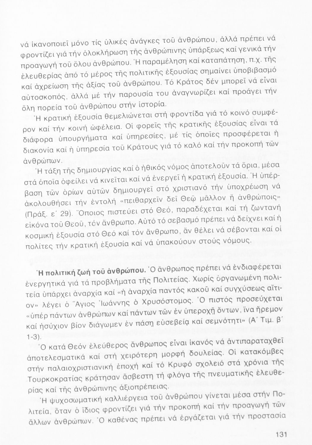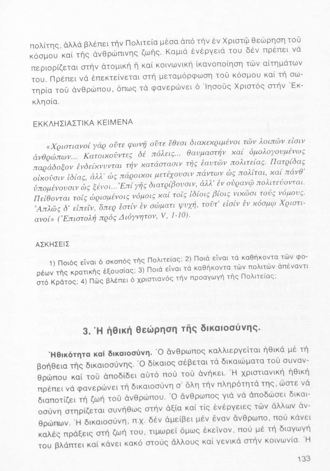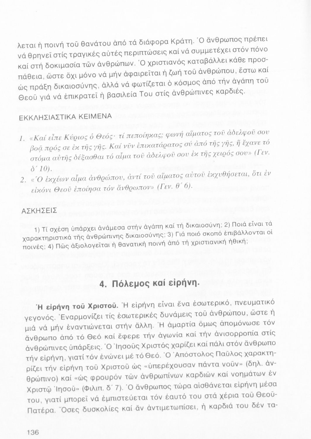 Σχολικό εγχειρίδιο Θρησκευτικών Γ΄ Λυκείου που πραγματεύεται την έννοια της αρετής και της ηθικής, της αμαρτίας και της λύτρωσης, της δικαιοσύνης και της αγάπης όπως αυτή ορίζεται από το Χριστιανισμό.