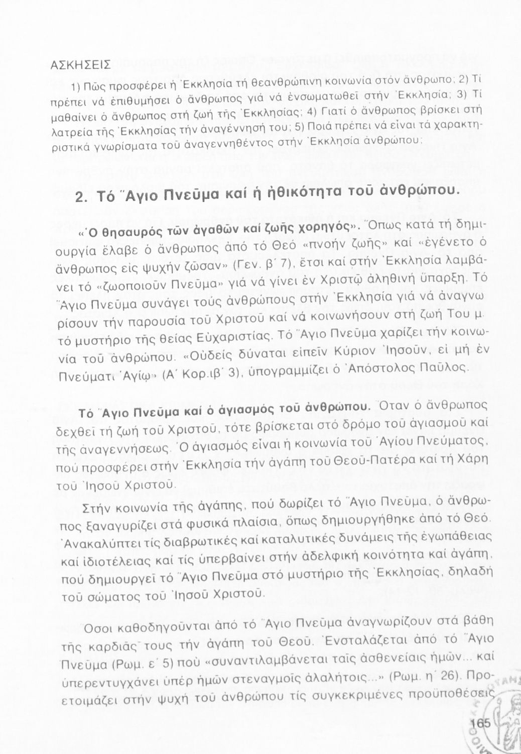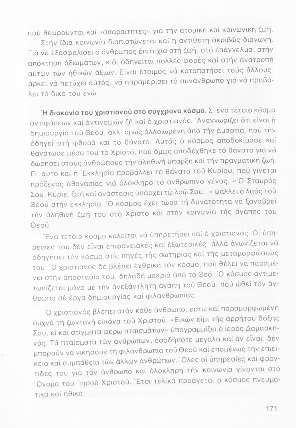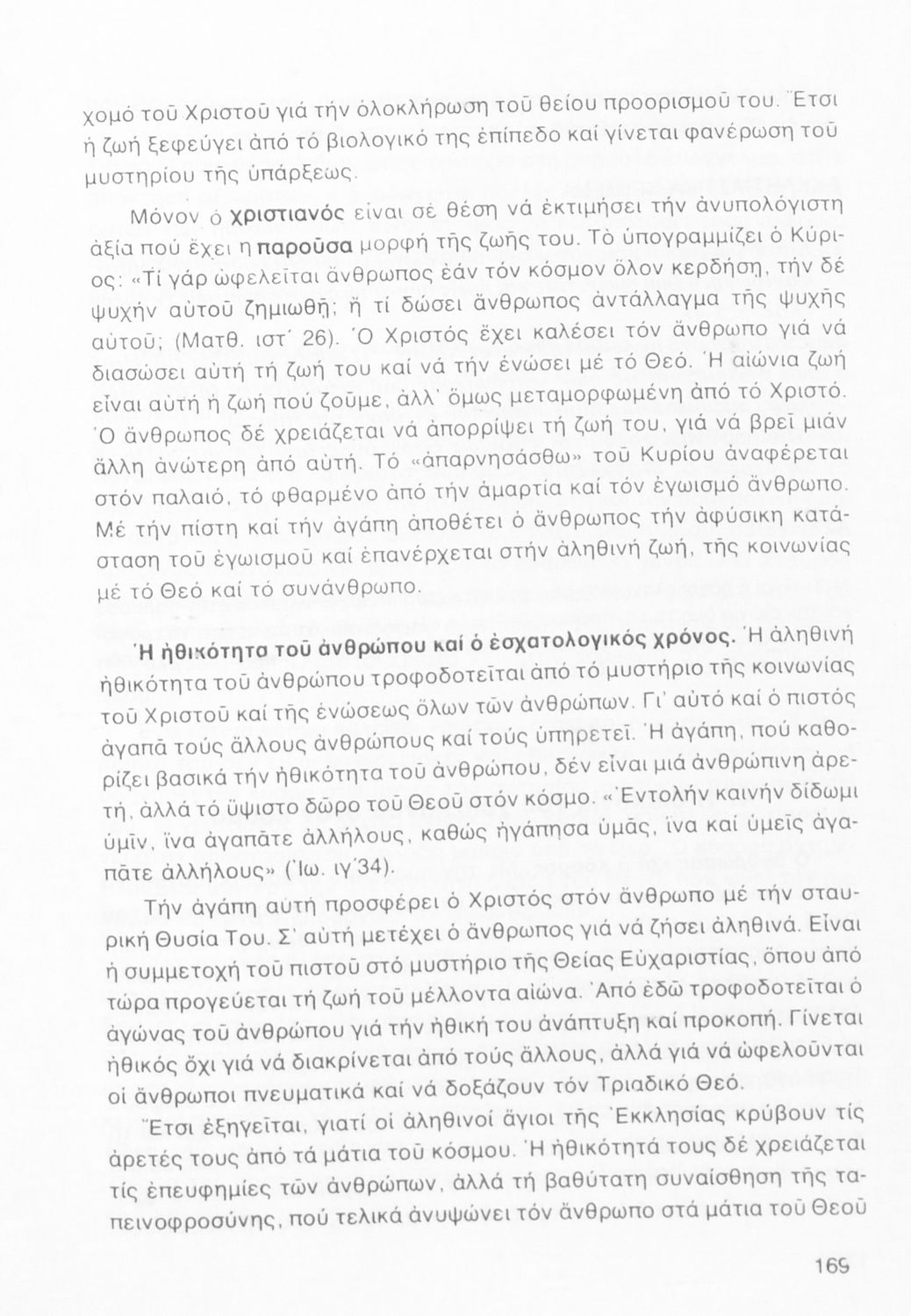 Σχολικό εγχειρίδιο Θρησκευτικών Γ΄ Λυκείου που πραγματεύεται την έννοια της αρετής και της ηθικής, της αμαρτίας και της λύτρωσης, της δικαιοσύνης και της αγάπης όπως αυτή ορίζεται από το Χριστιανισμό.