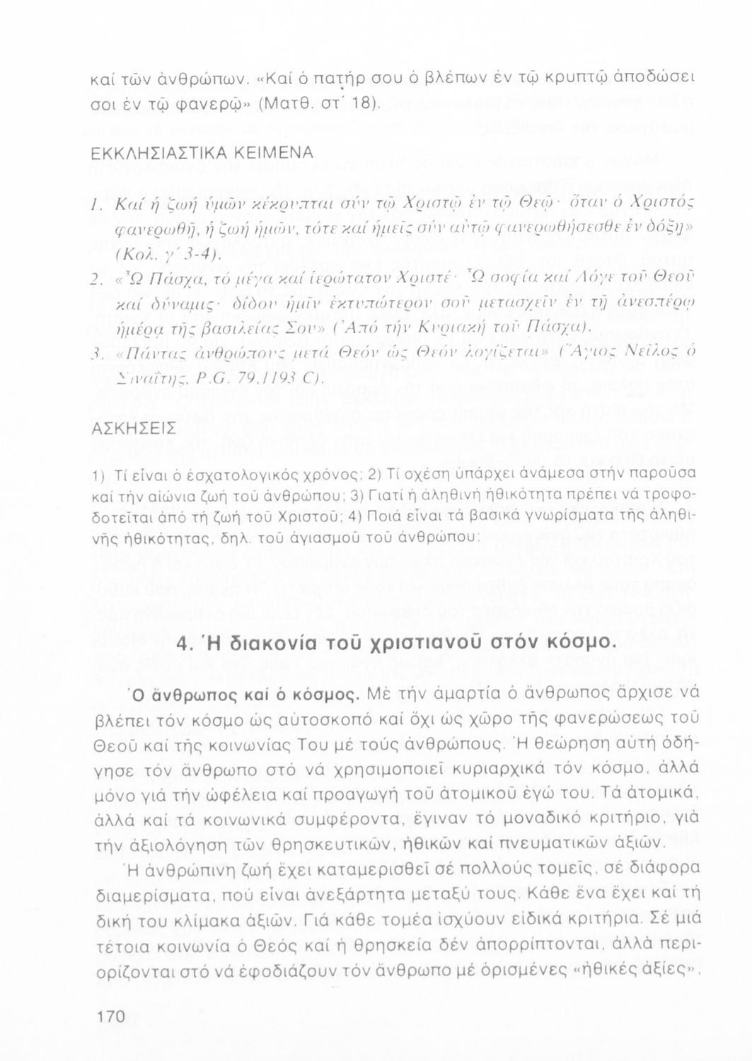 Σχολικό εγχειρίδιο Θρησκευτικών Α΄, Β΄ και Γ΄ Λυκείου που, μέσα από τα κείμενα των Πατέρων της Εκκλησίας, πραγματεύεται ζητήματα αρετής, ηθικής αμαρτίας, λύτρωσης, δικαιοσύνης και αγάπης. Επίσης αναφέρεται ...