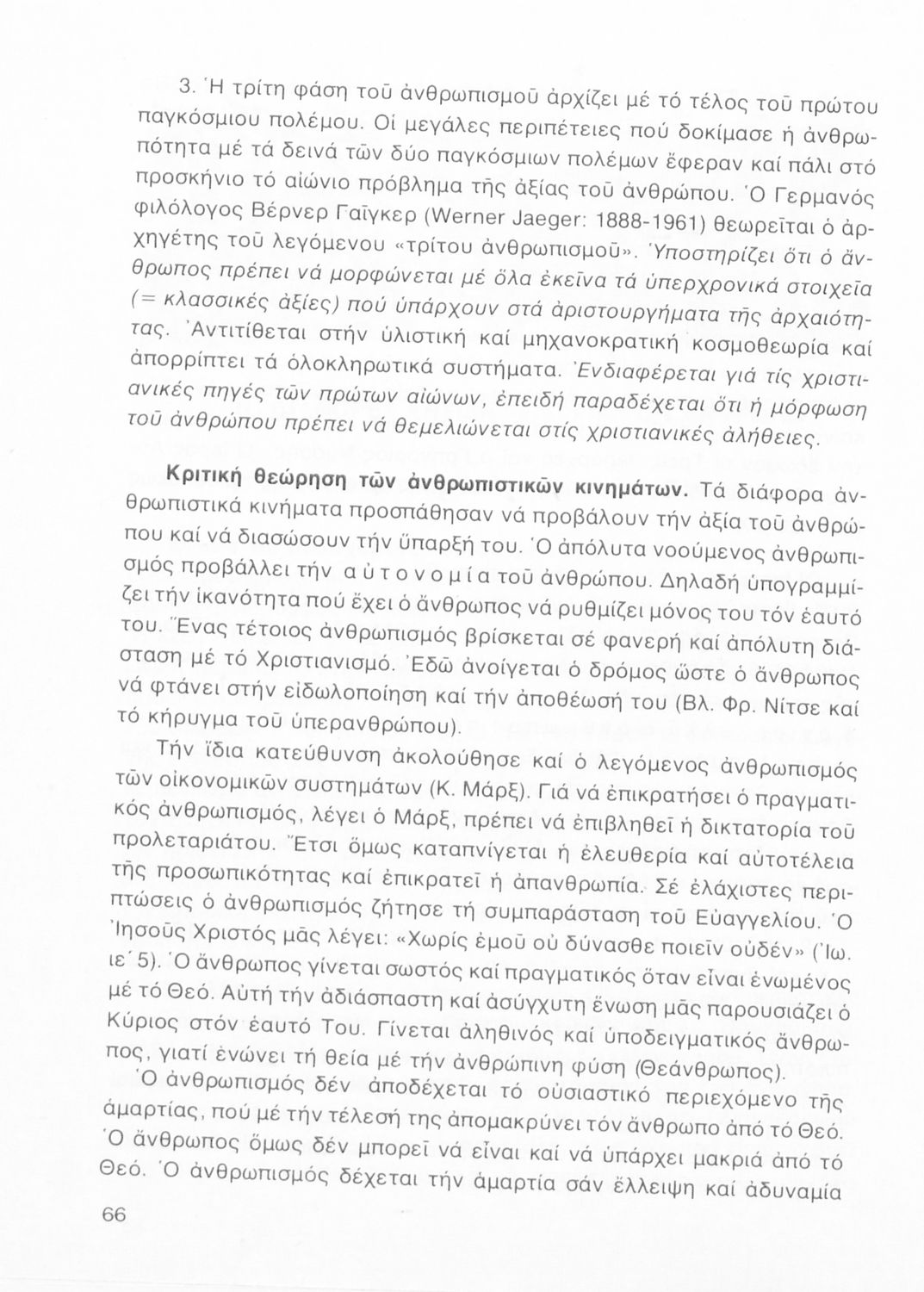 Βαθμίδα εκπαίδευσης: Δευτεροβάθμια Τάξη: Γ' Λυκείου Μάθημα: Θρησκευτικά Γλώσσα: Δημοτική Παρουσίαση περιεχομένου: Σχολικό εγχειρίδιο Θρησκευτικών Γ΄ Λυκείου που πραγματεύεται ζητήματα Χριστιανικής ηθικής από φιλοσοφική σκοπιά. |