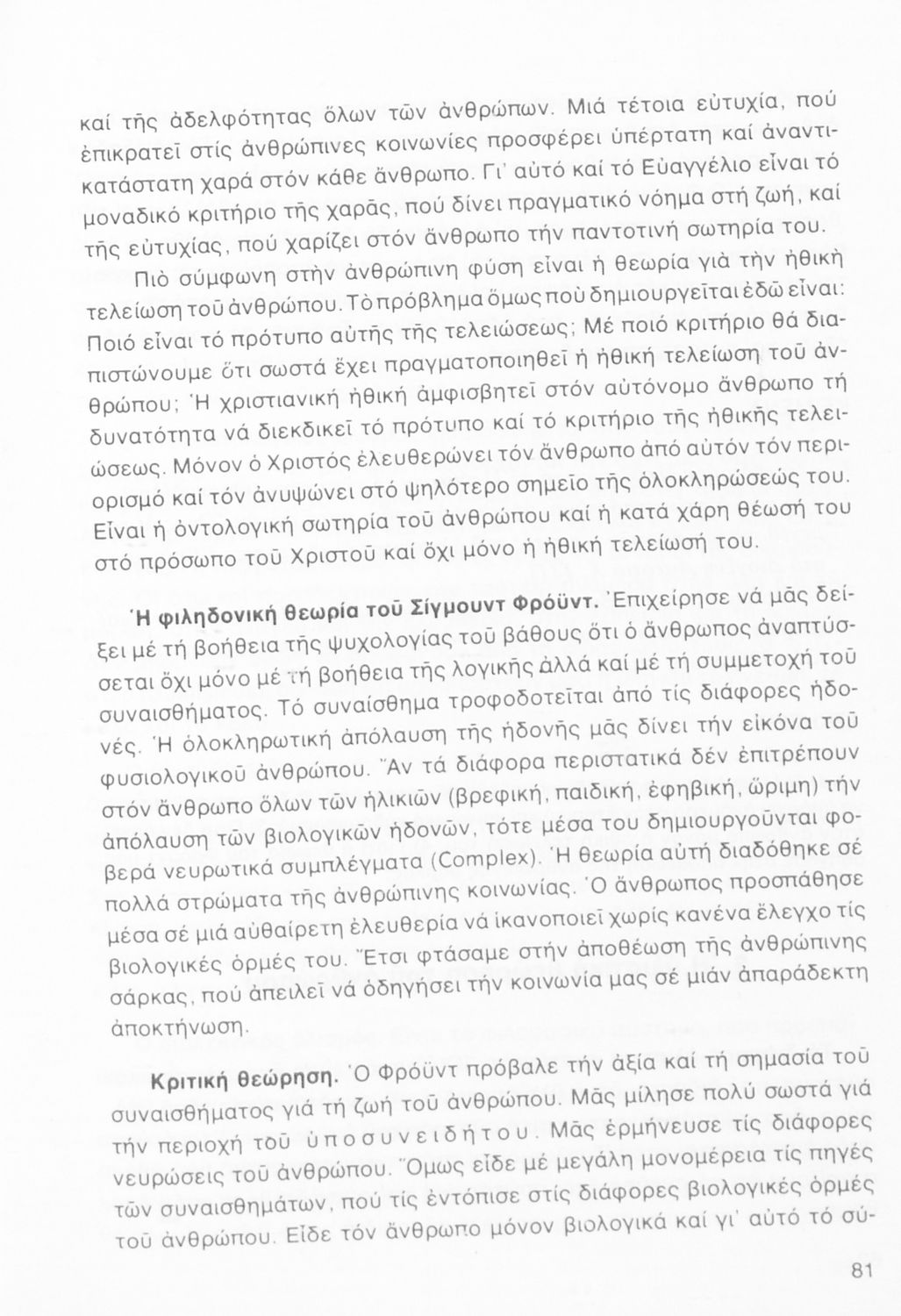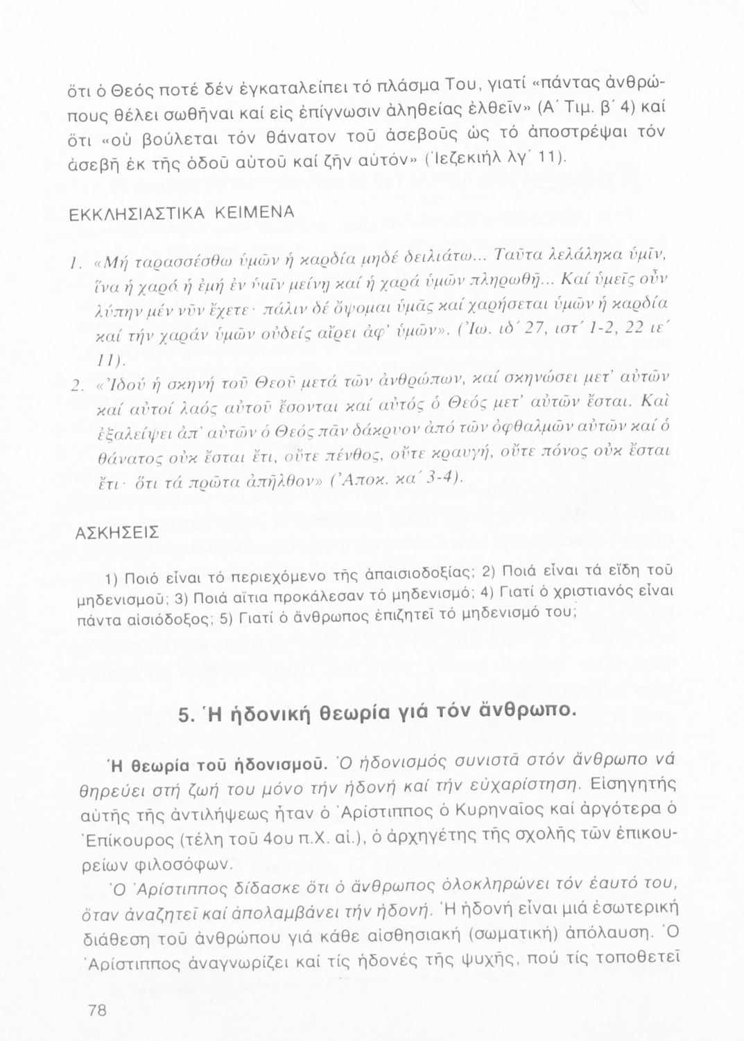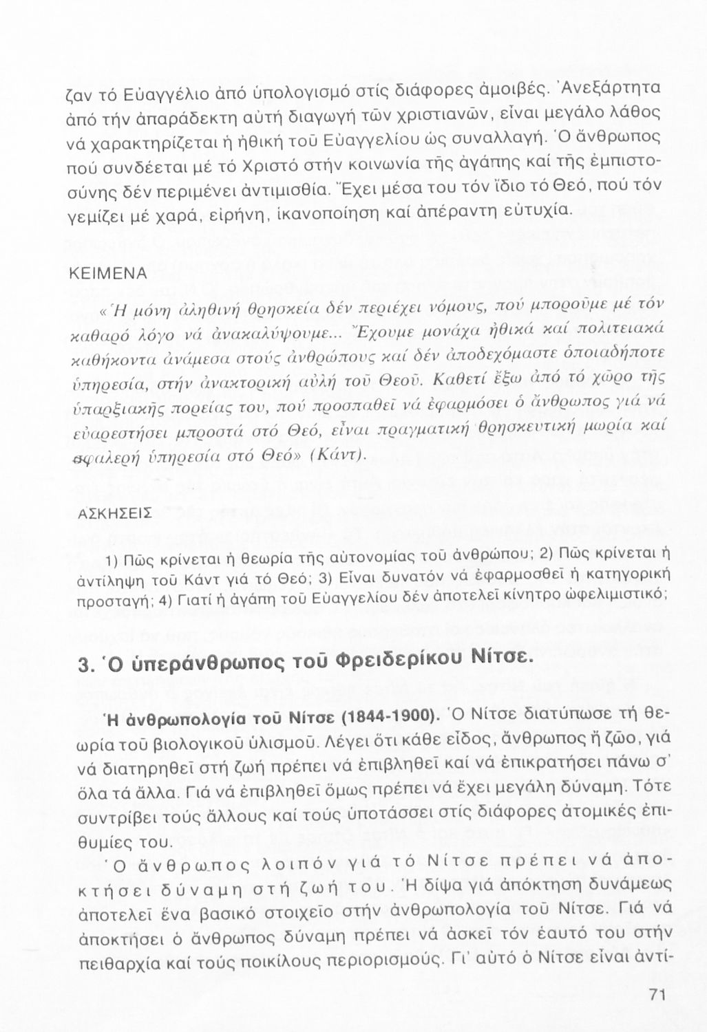 Σχολικό εγχειρίδιο Θρησκευτικών Γ΄ Λυκείου που πραγματεύεται ζητήματα Χριστιανικής ηθικής από φιλοσοφική σκοπιά.