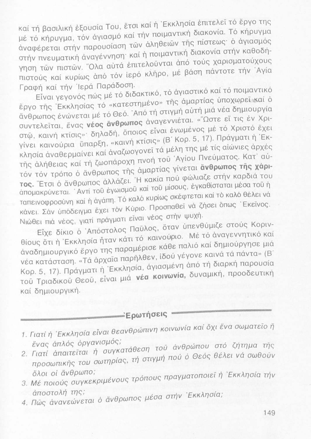 Βαθμίδα εκπαίδευσης: Δευτεροβάθμια Τάξη: Β' Λυκείου Μάθημα: Θρησκευτικά Γλώσσα: Δημοτική Παρουσίαση περιεχομένου: Σχολικό εγχειρίδιο Θρησκευτικών Β΄ Λυκείου που περιλαμβάνει μια συνοπτική παρουσίαση των κυριότερων θρησκειών, αναλύει τη σχέση του χριστιανισμού με τις άλλες θρησκείες, και εστιάζει στις πηγές και τα θρησκευτικά κείμενα της χριστιανικής πίστης. Περιέχει και ερωτήσεις κατανόησης. |