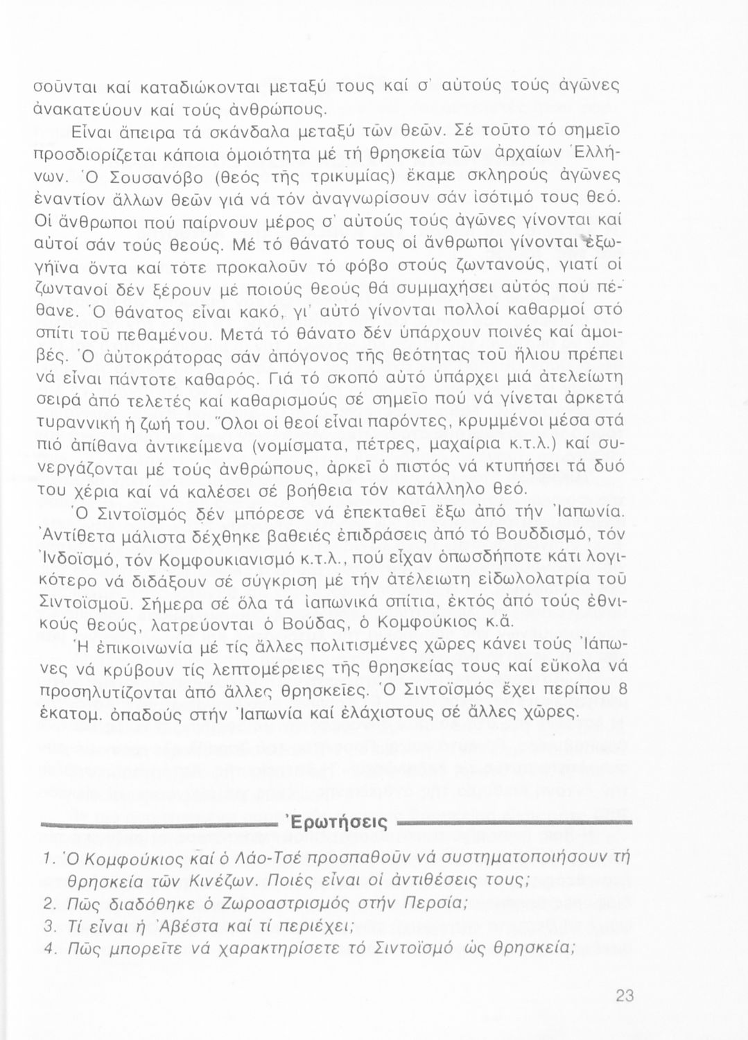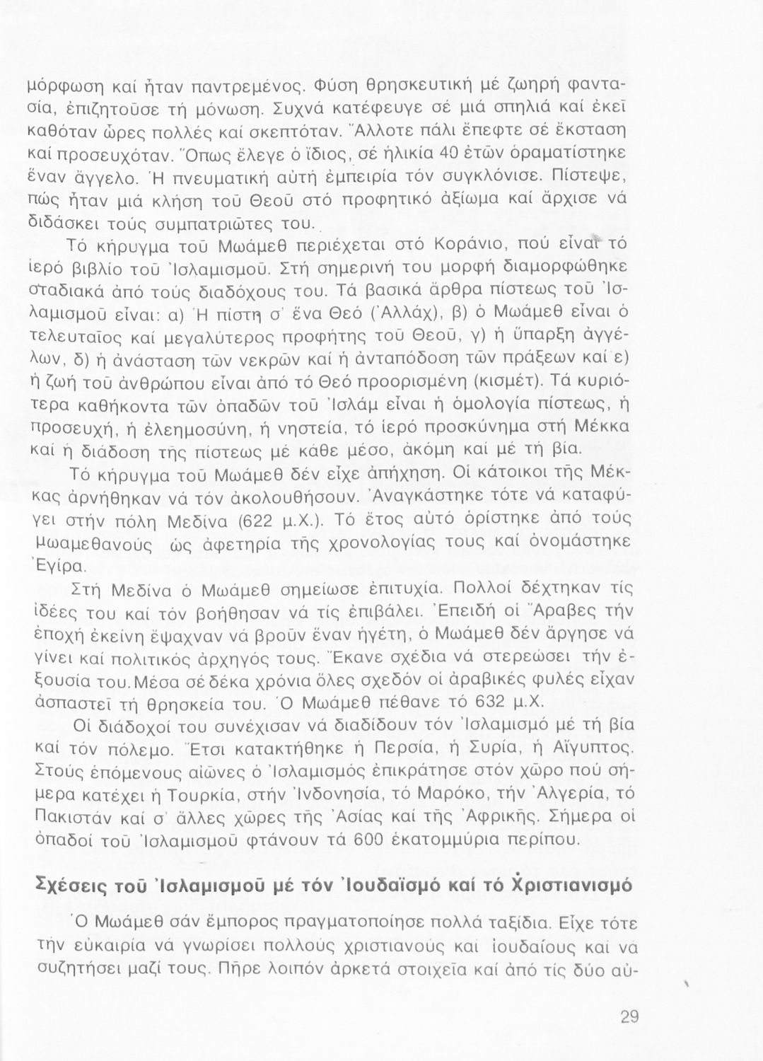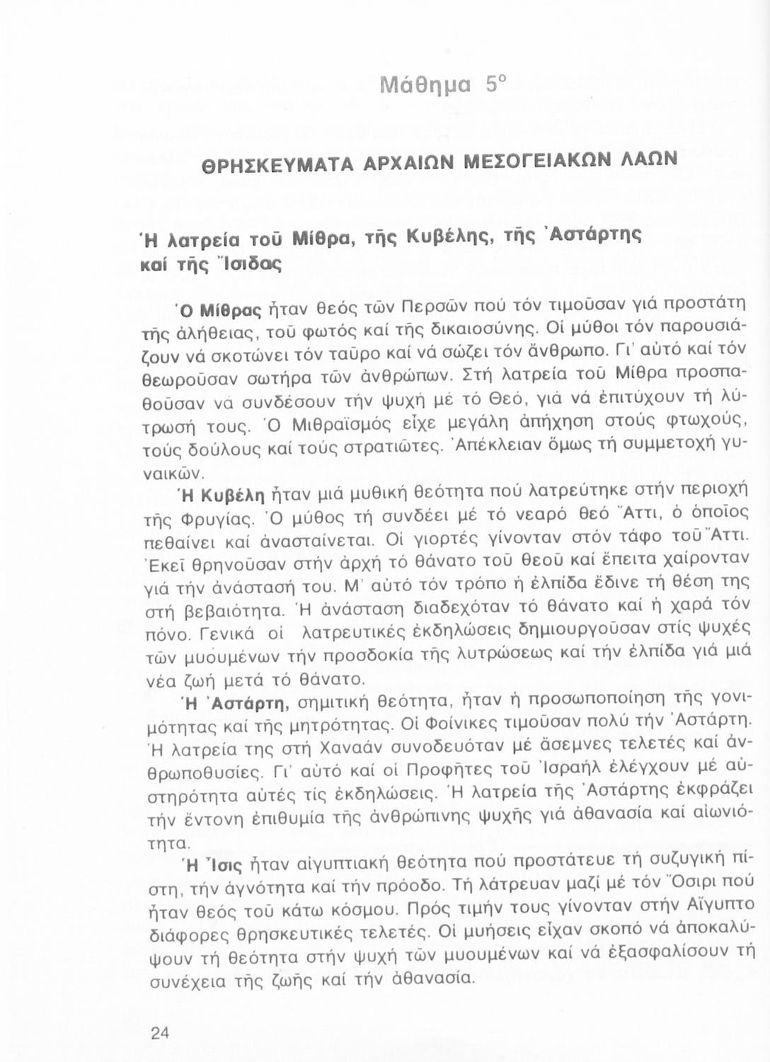 Βαθμίδα εκπαίδευσης: Δευτεροβάθμια Τάξη: Β' Λυκείου Μάθημα: Θρησκευτικά Γλώσσα: Δημοτική Παρουσίαση περιεχομένου: Σχολικό εγχειρίδιο Θρησκευτικών Β΄ Λυκείου που περιλαμβάνει μια συνοπτική παρουσίαση των κυριότερων θρησκειών, αναλύει τη σχέση του χριστιανισμού με τις άλλες θρησκείες, και εστιάζει στις πηγές και τα θρησκευτικά κείμενα της χριστιανικής πίστης. Περιέχει και ερωτήσεις κατανόησης. |