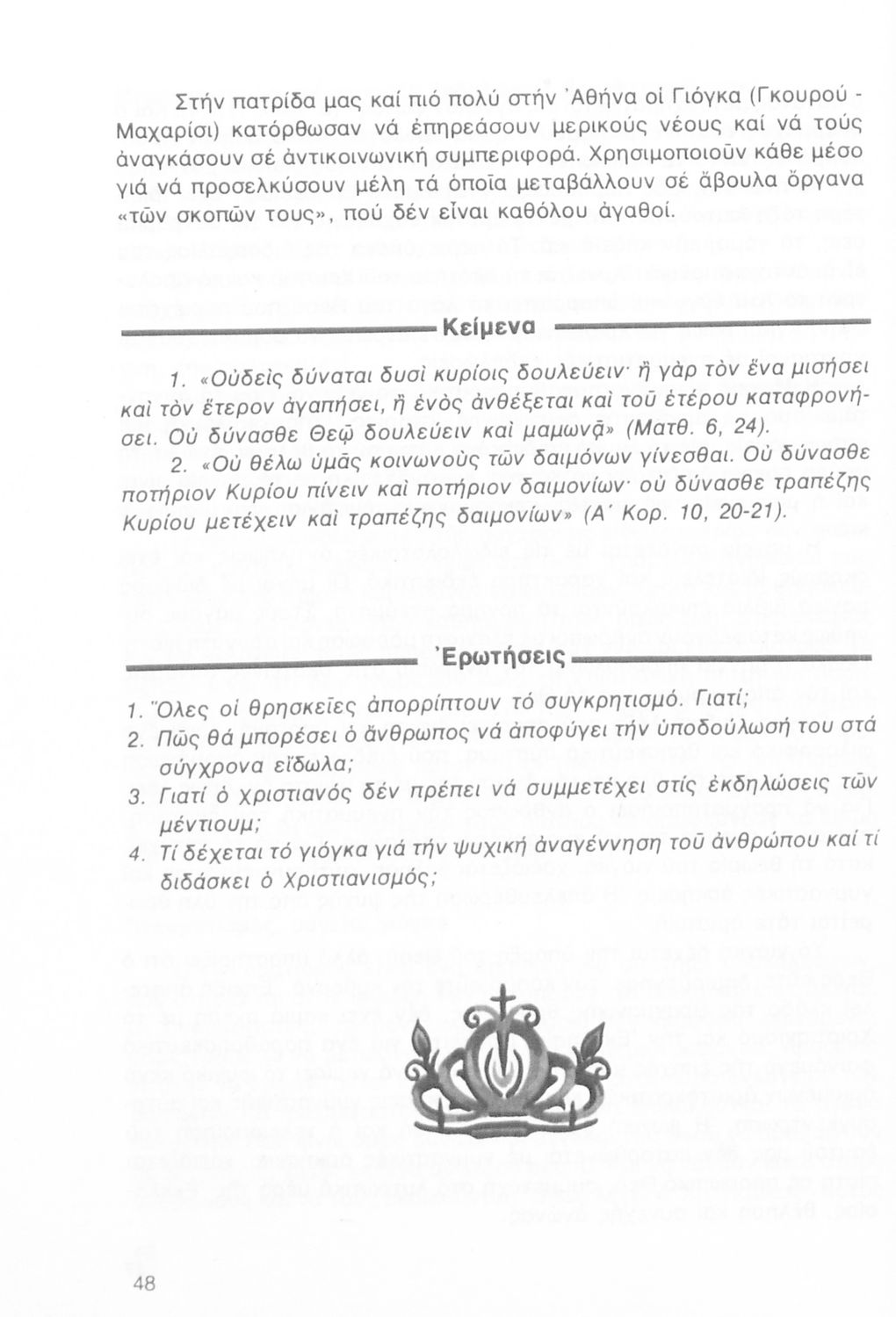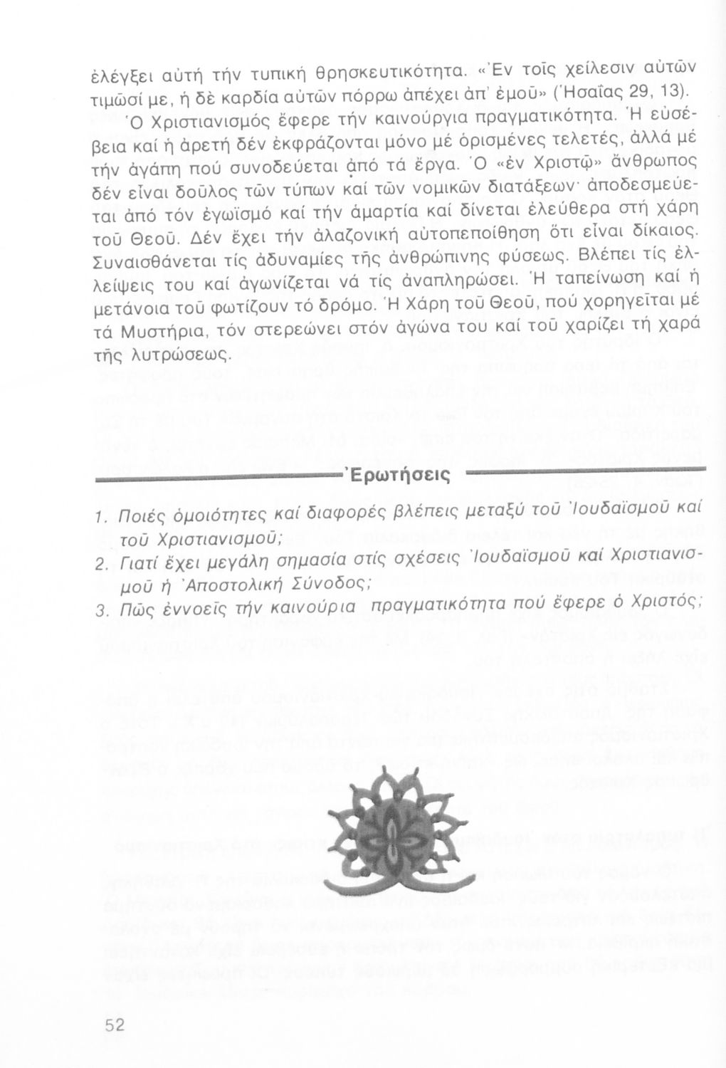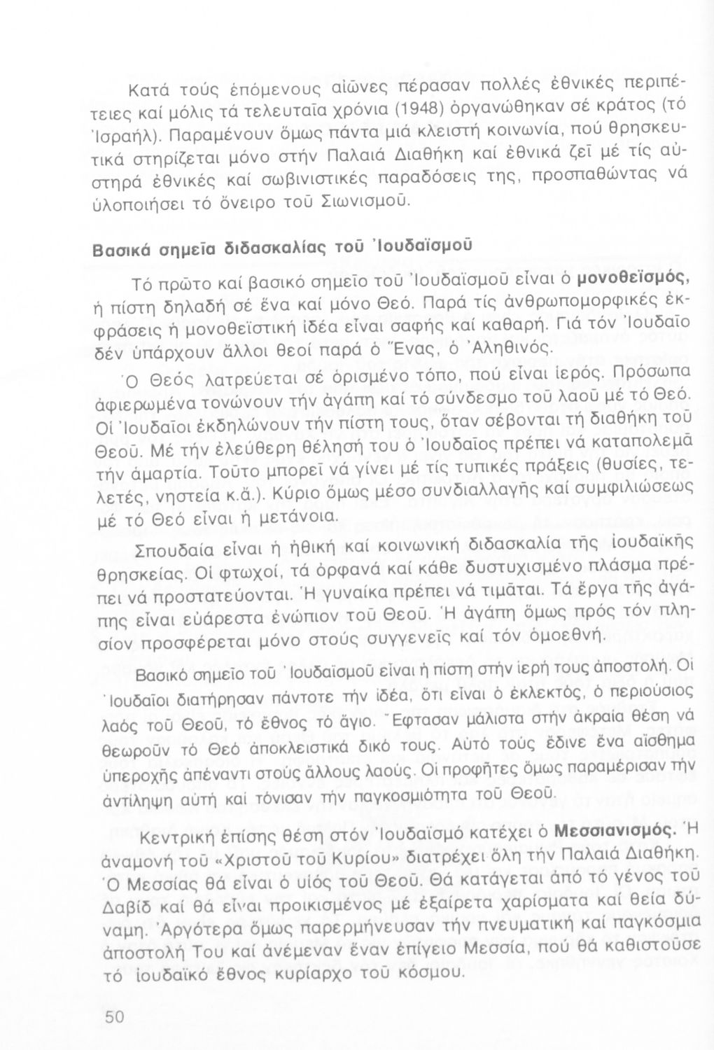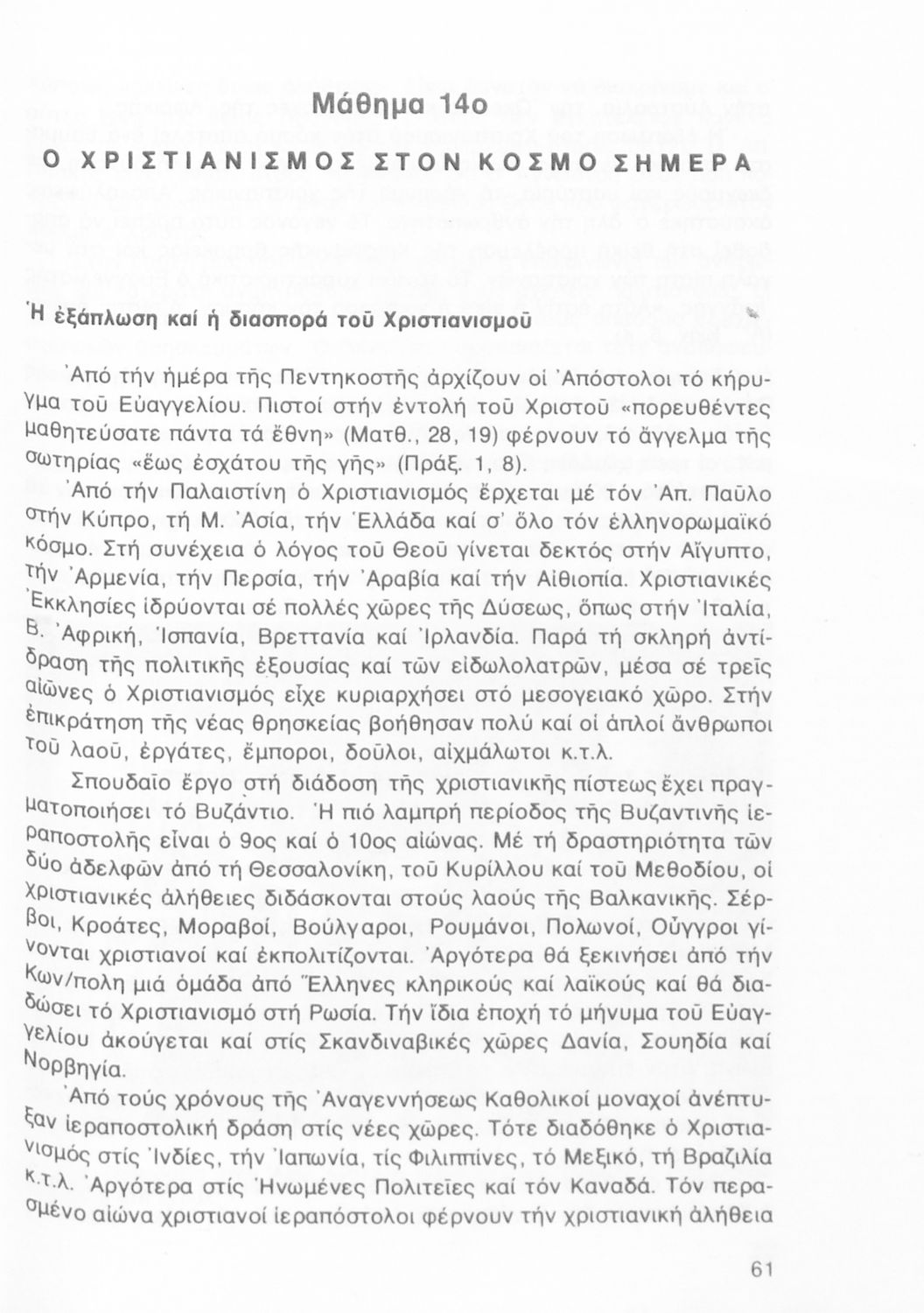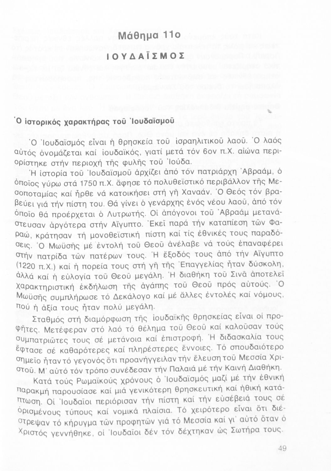 Βαθμίδα εκπαίδευσης: Δευτεροβάθμια Τάξη: Β' Λυκείου Μάθημα: Θρησκευτικά Γλώσσα: Δημοτική Παρουσίαση περιεχομένου: Σχολικό εγχειρίδιο Θρησκευτικών Β΄ Λυκείου που περιλαμβάνει μια συνοπτική παρουσίαση των κυριότερων θρησκειών, αναλύει τη σχέση του χριστιανισμού με τις άλλες θρησκείες, και εστιάζει στις πηγές και τα θρησκευτικά κείμενα της χριστιανικής πίστης. Περιέχει και ερωτήσεις κατανόησης. |