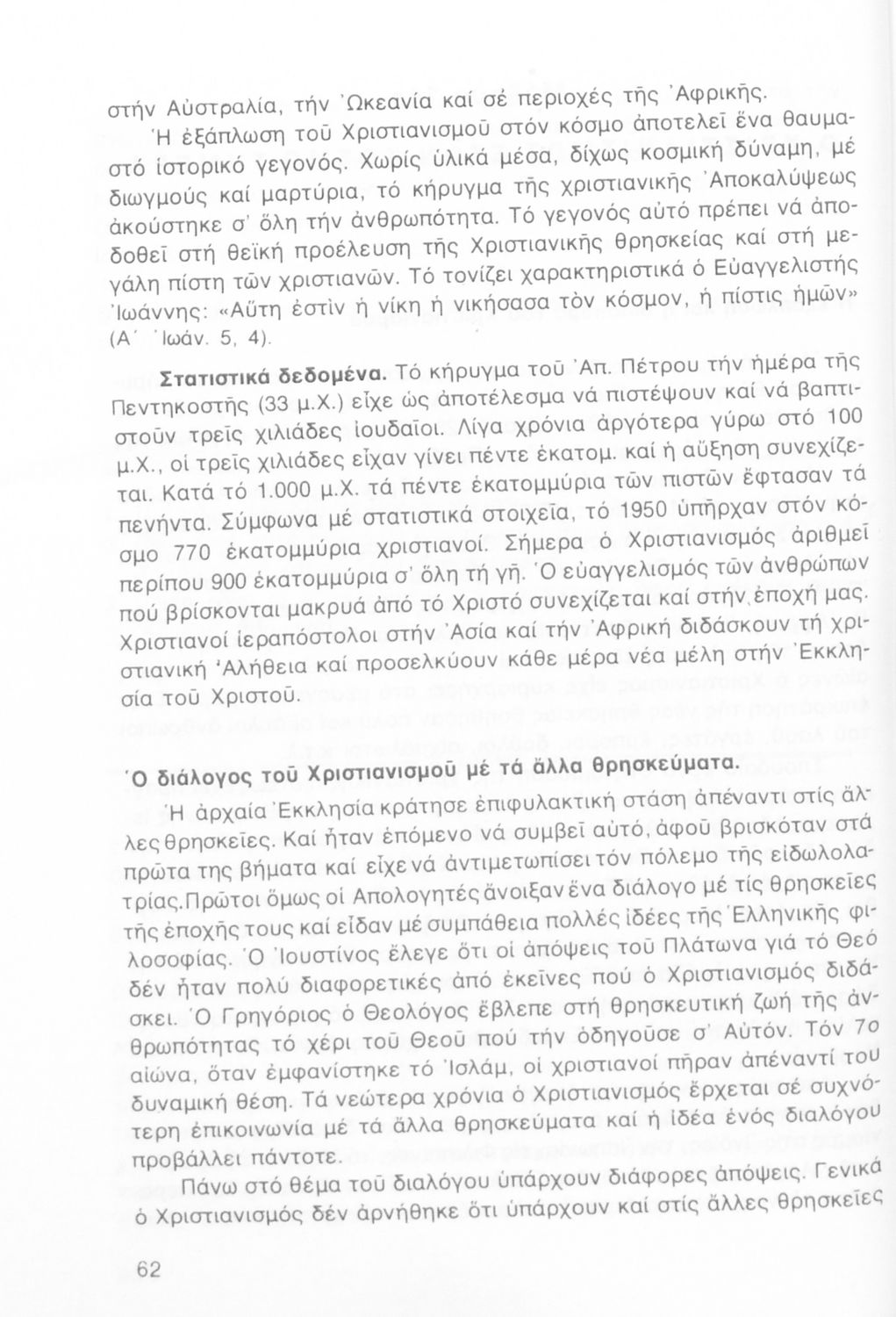 Σχολικό εγχειρίδιο Θρησκευτικών Β΄ Λυκείου που περιλαμβάνει μια συνοπτική παρουσίαση των κυριότερων θρησκειών, αναλύει τη σχέση του χριστιανισμού με τις άλλες θρησκείες, και εστιάζει στις πηγές και τα θρησκευτικά κείμενα της χριστιανικής πίστης. Περιέχει και ερωτήσεις κατανόησης.