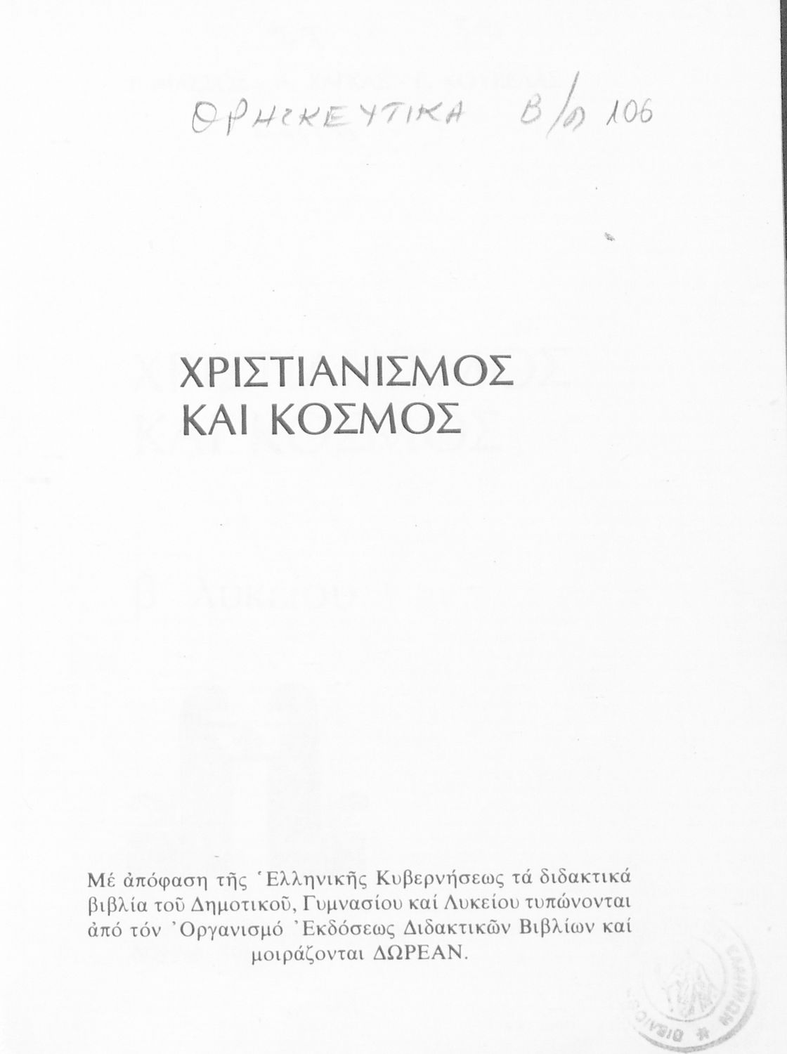 Τίτλος: Χριστιανισμός και Κόσμος. Β΄ Λυκείου